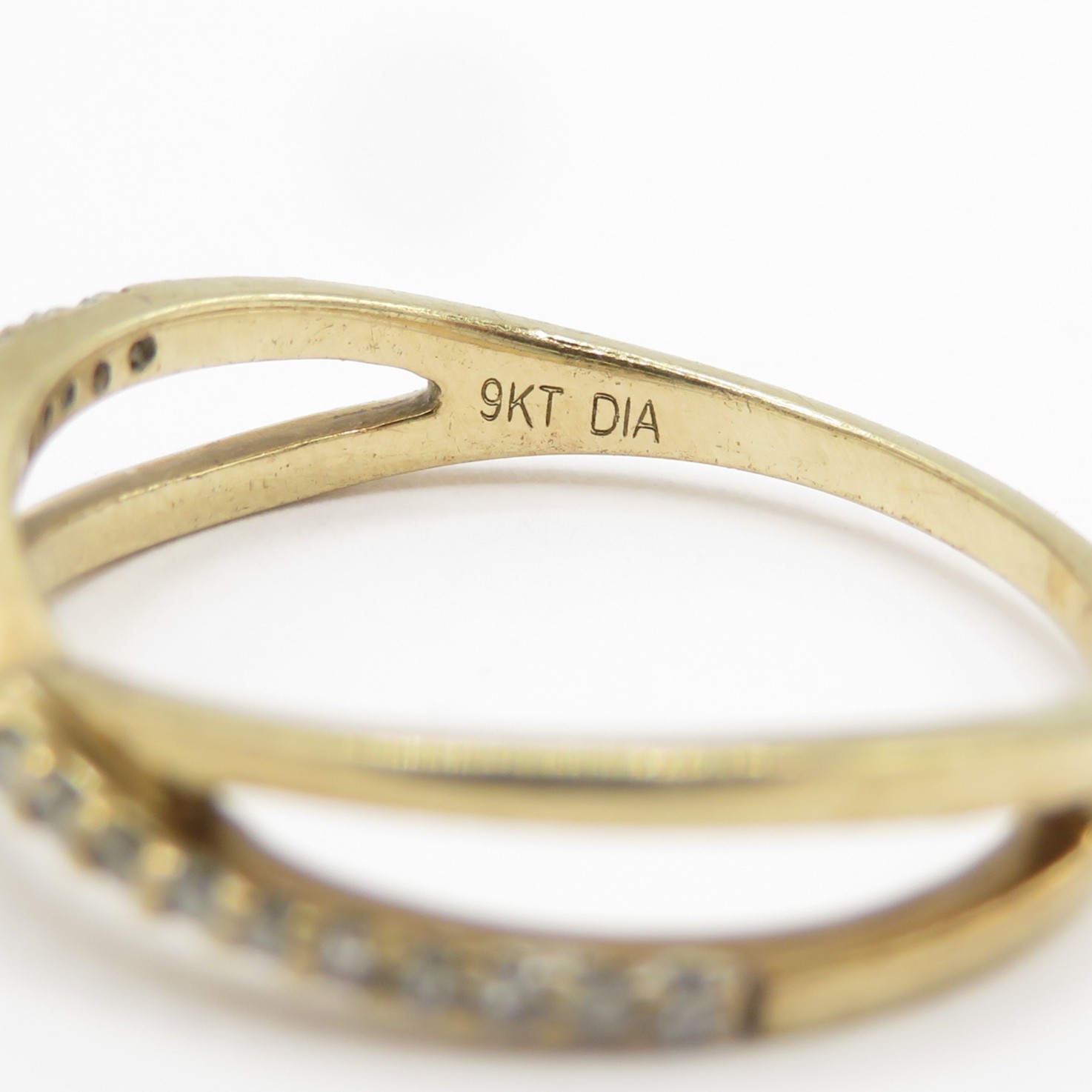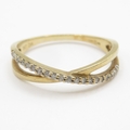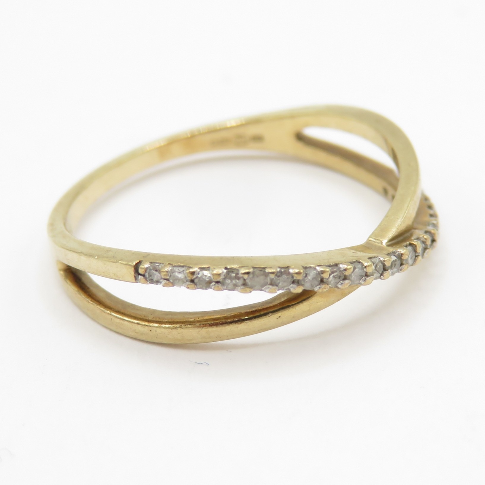 9ct gold diamond crossover ring (1.3g) Size J 1/2