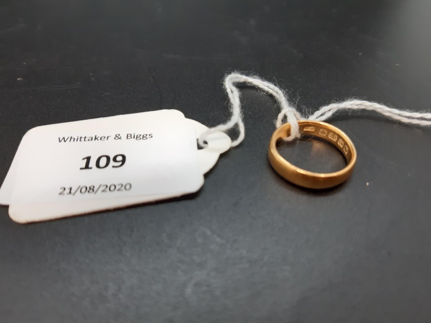 A hallmarked 22ct gold ladies wedding band ring - size J, total approx. weight 4 grams