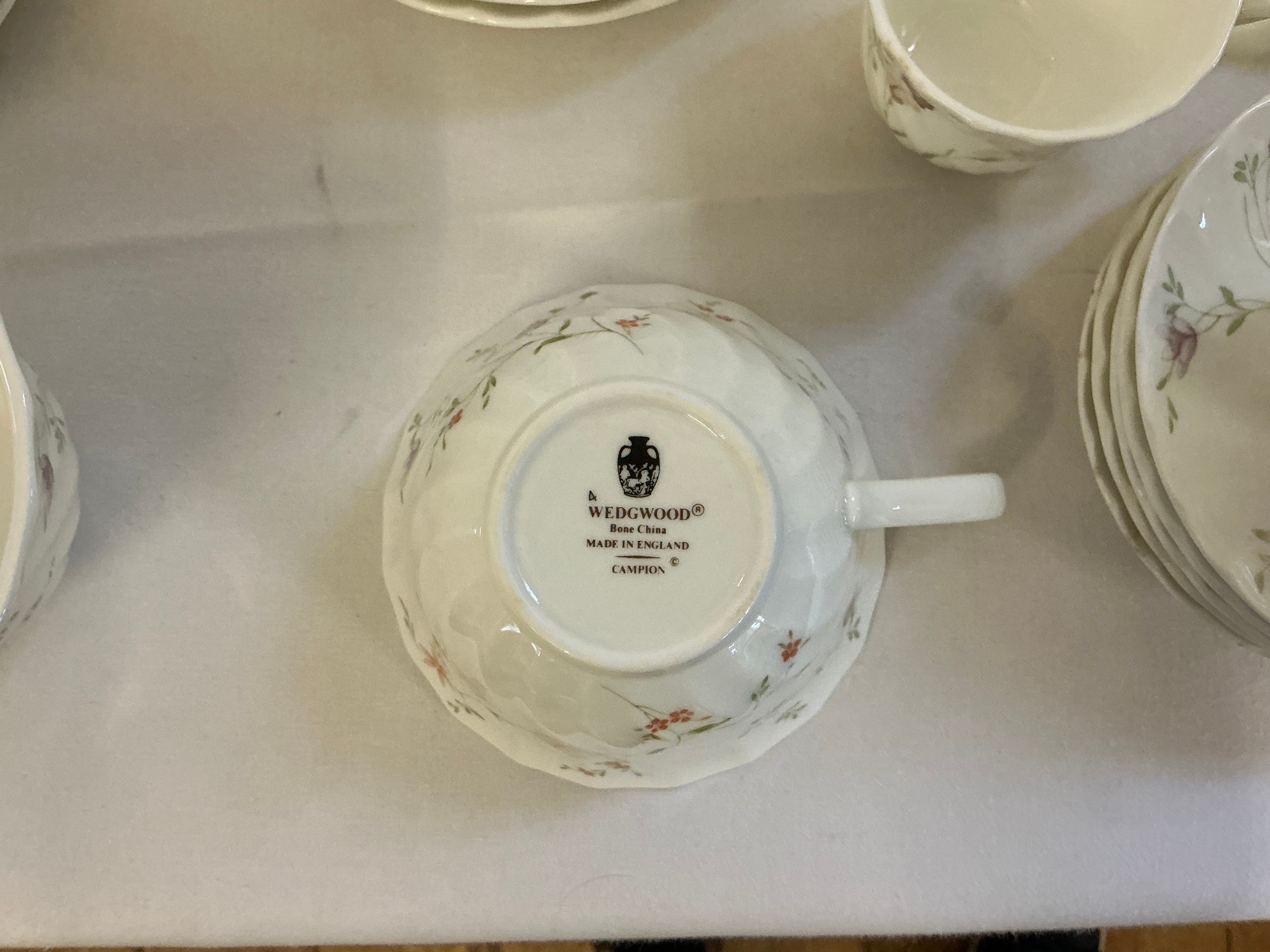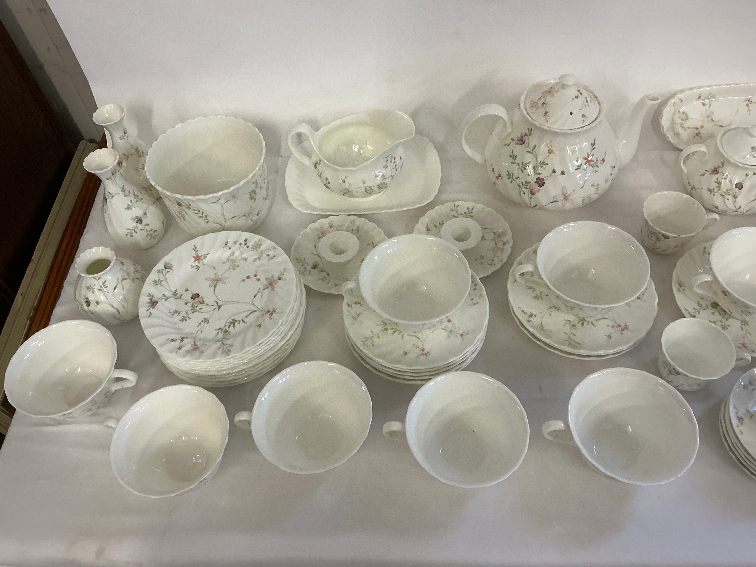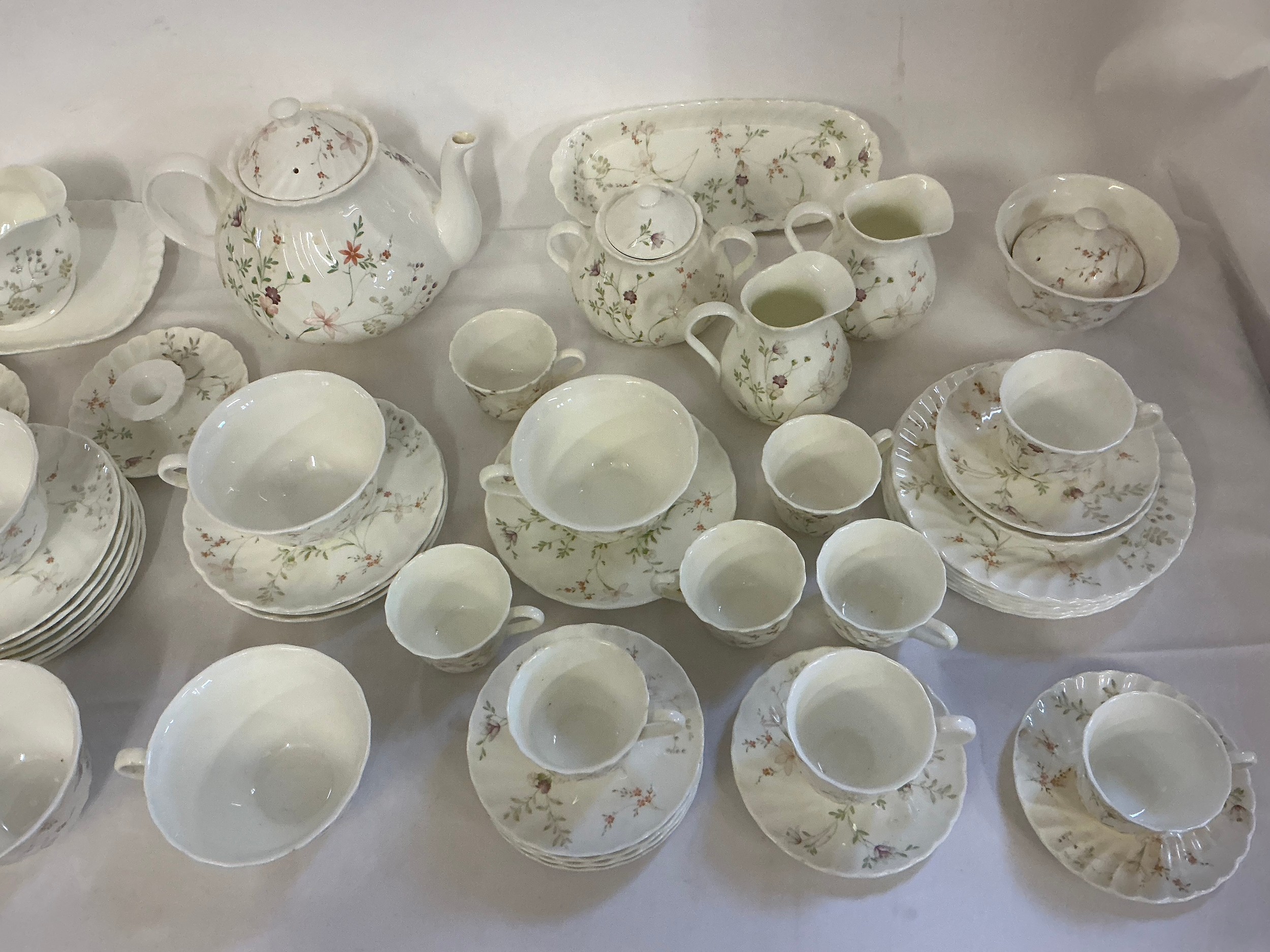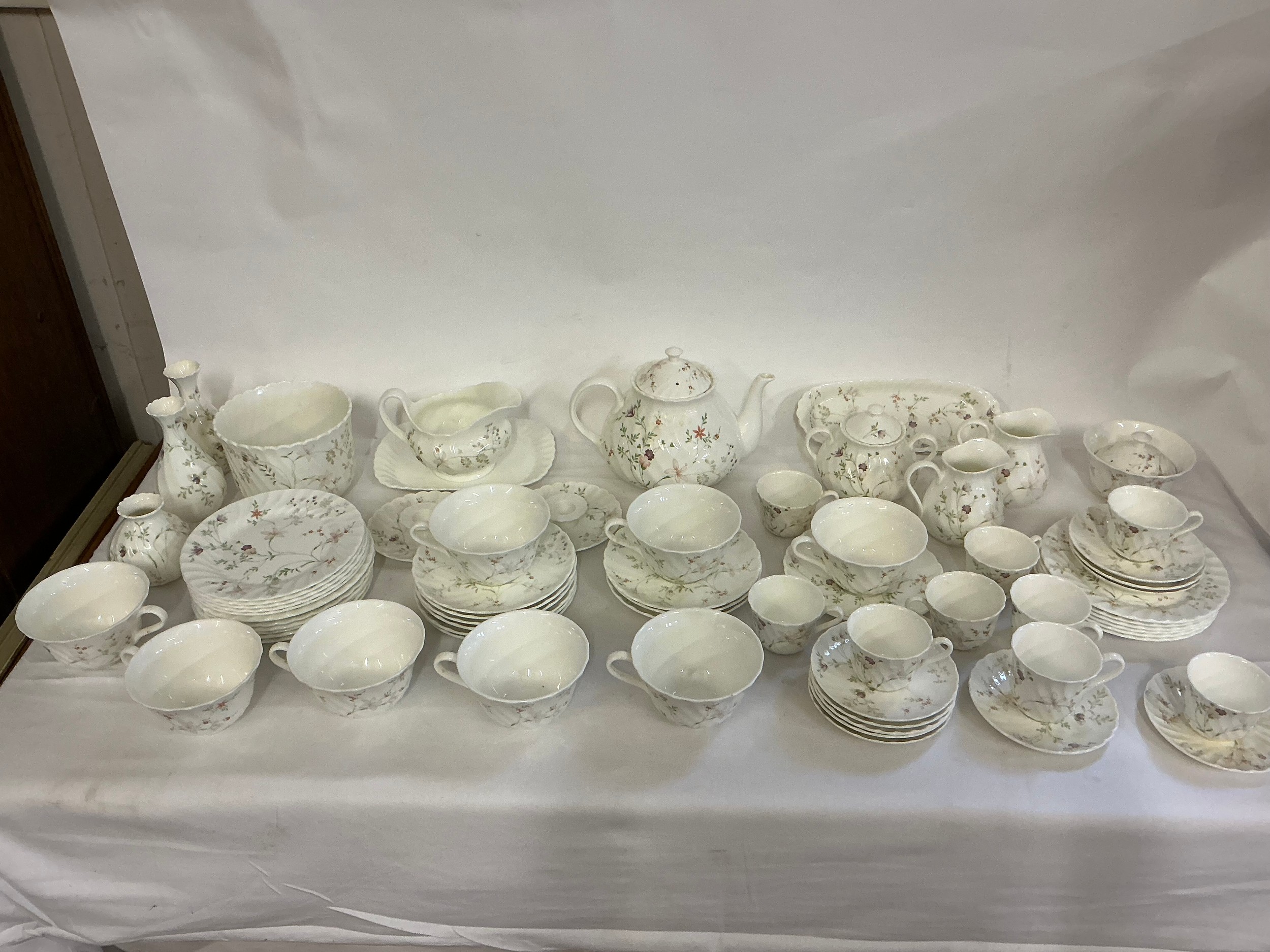 A Large Wedgwood Tea Set in the "Campion" pattern to include Tea Pot, Sugar Bowls, Milk Jugs, Side Plates, Tea Cups, Coffee Cups, Saucers, etc. etc.