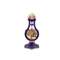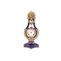 A V&A 'Marie-Antoinette Clock and key. Gilt and blue glazed porcelain, cream dial with Roman numerals striking to a bell. H39cm