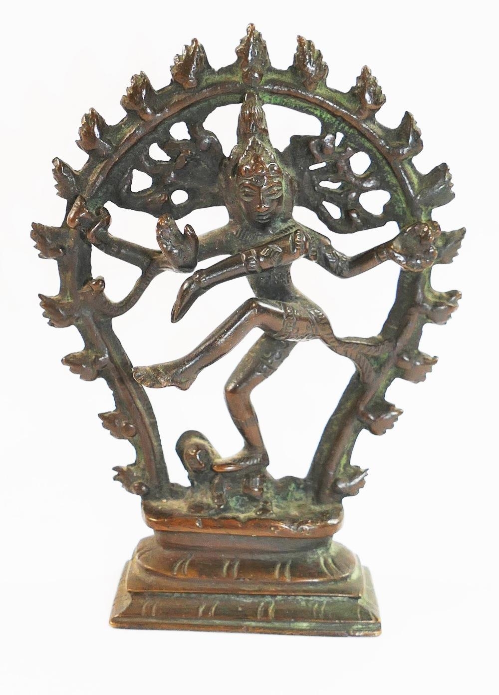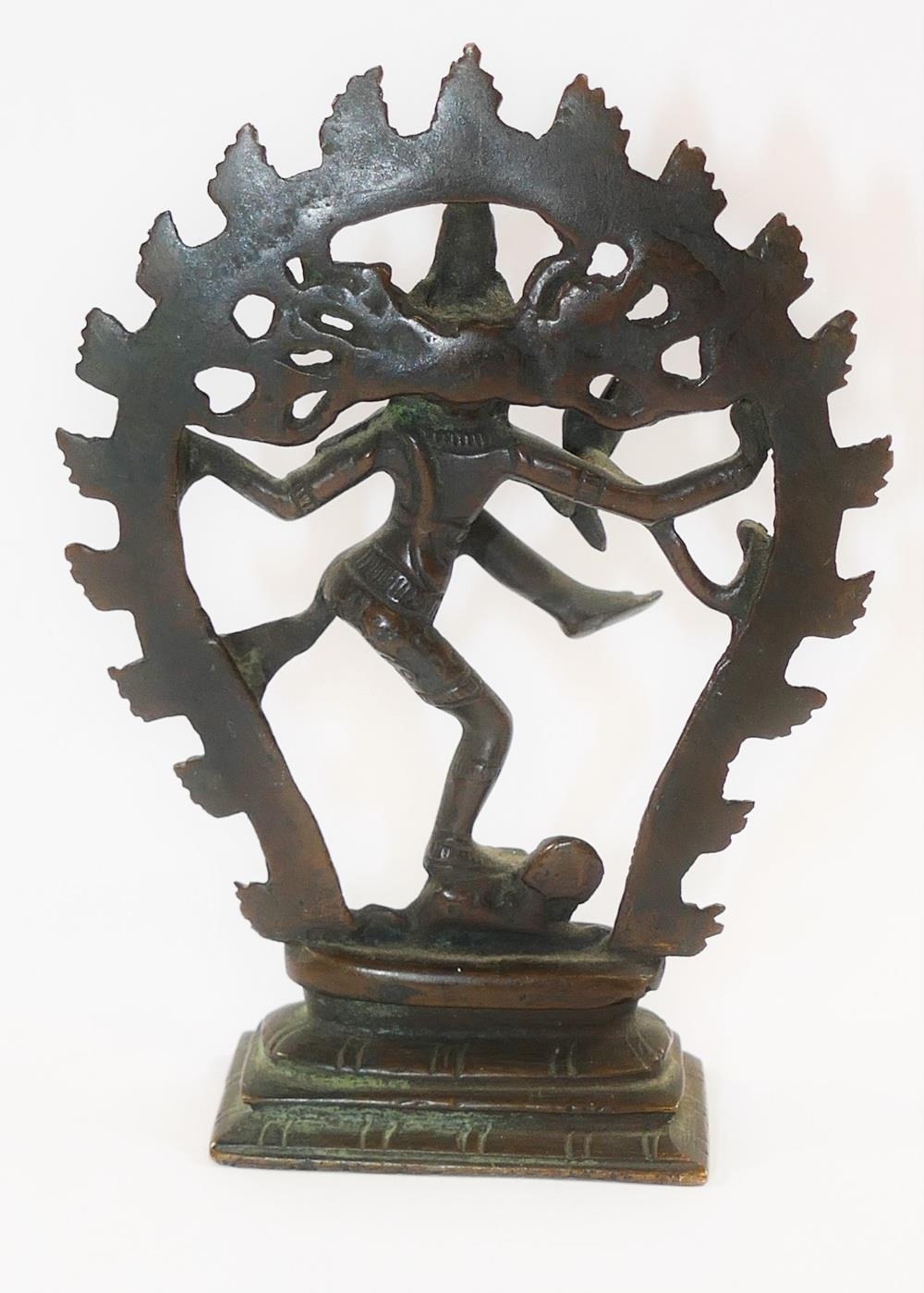 A small Indian bronze of the Hindu goddess Kali, raised on rectangular plinth, 10.2cm high