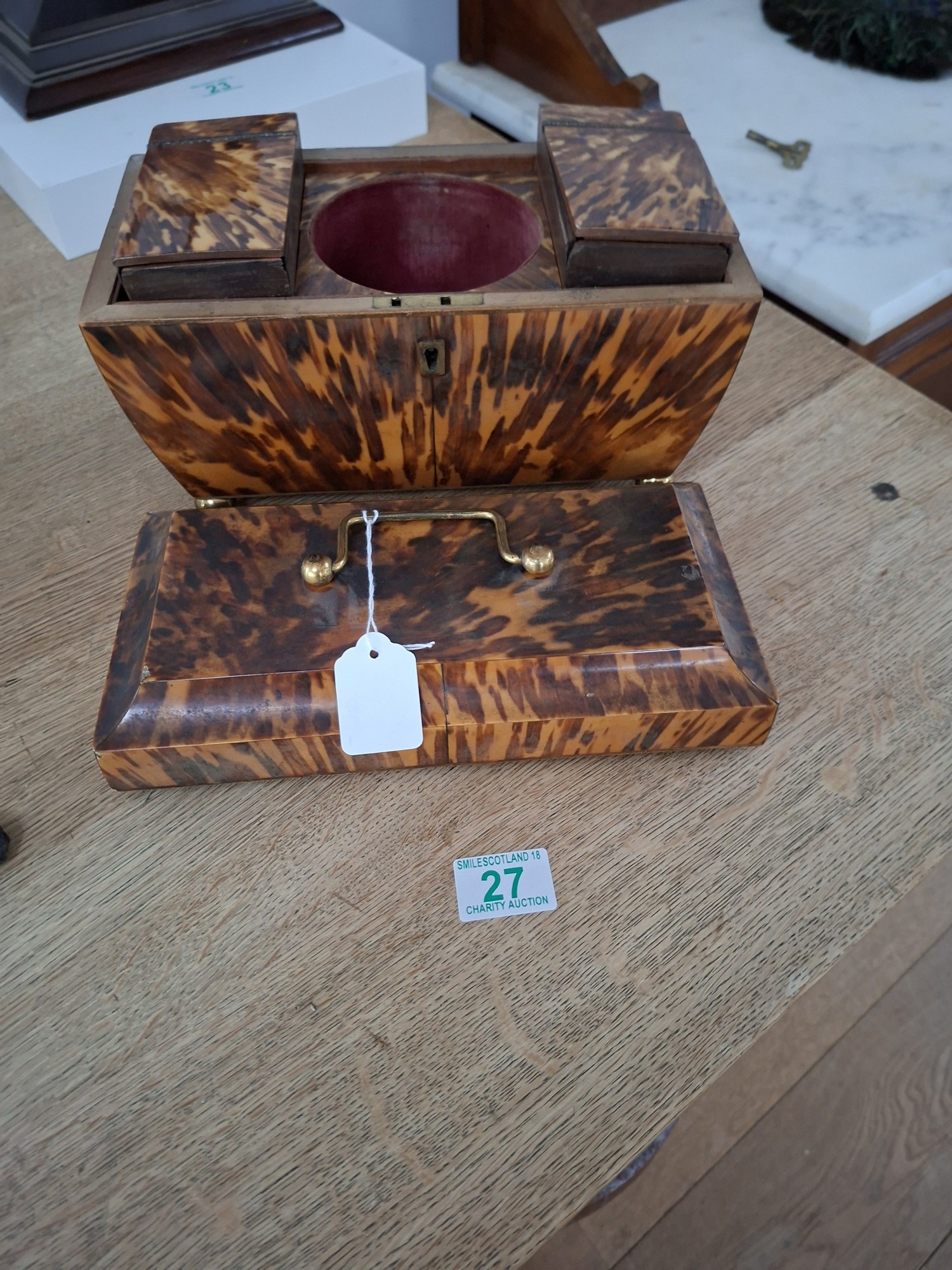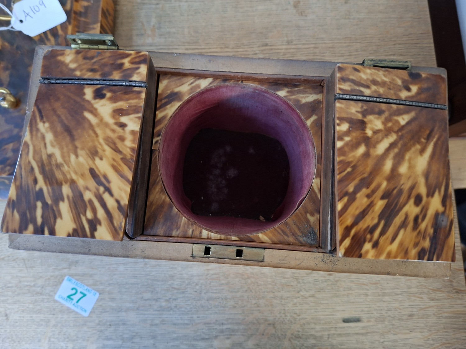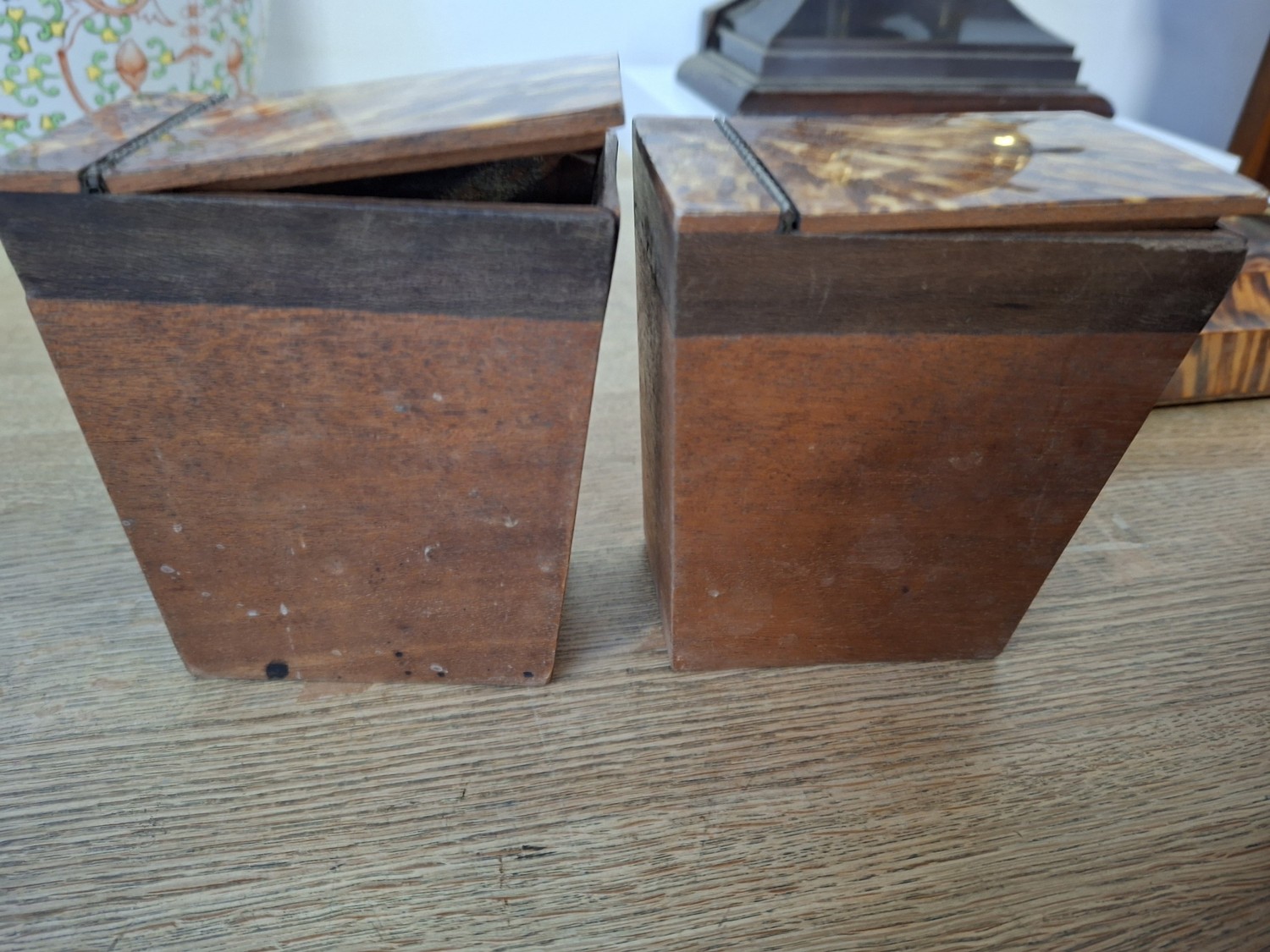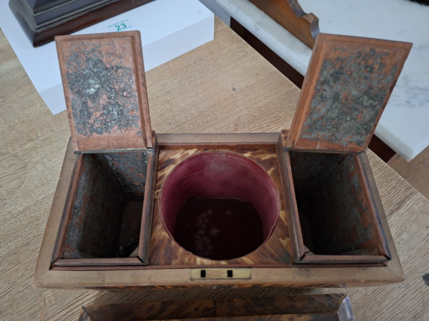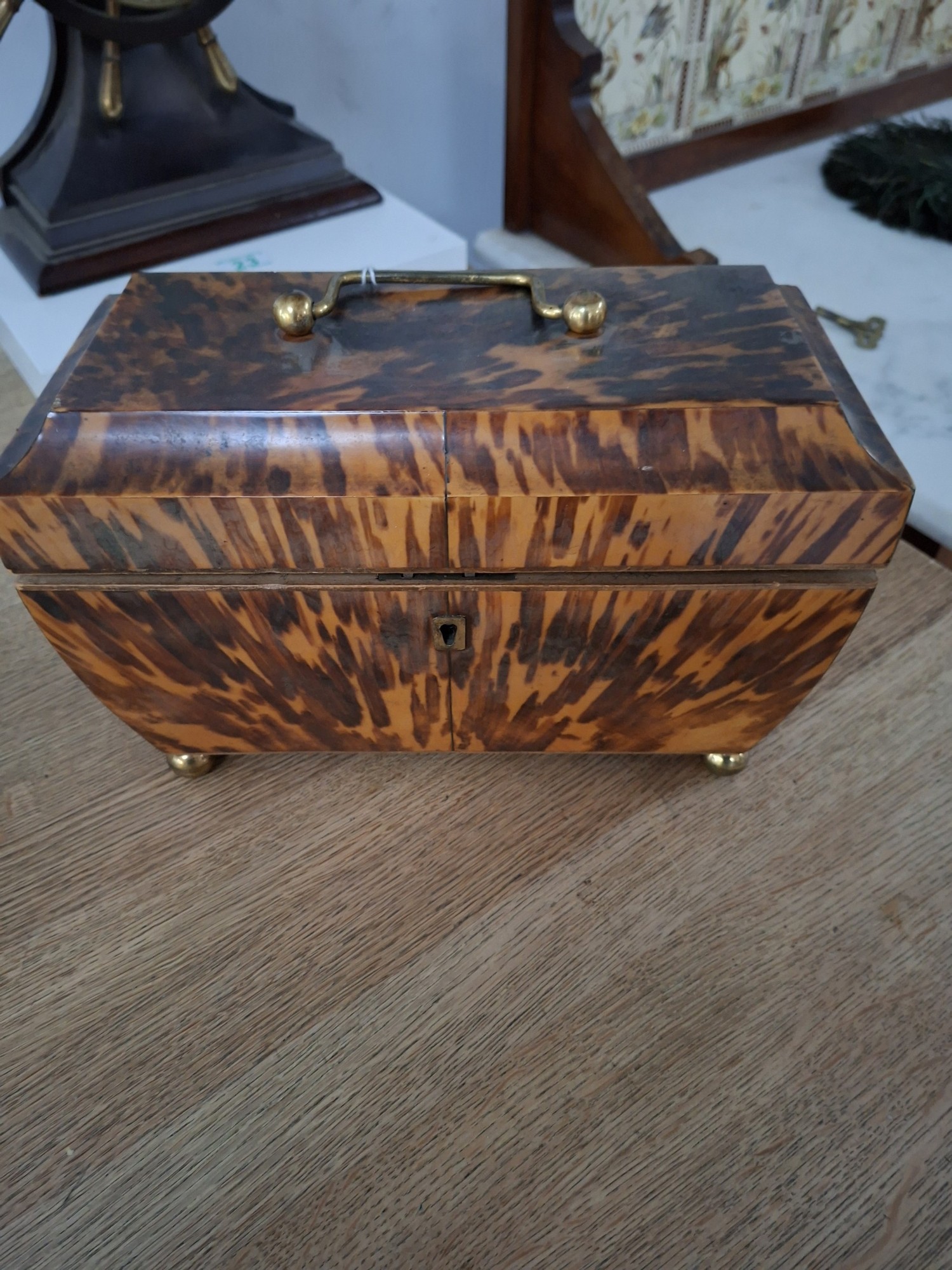 Vintage tortoise shell tea caddy (as found)