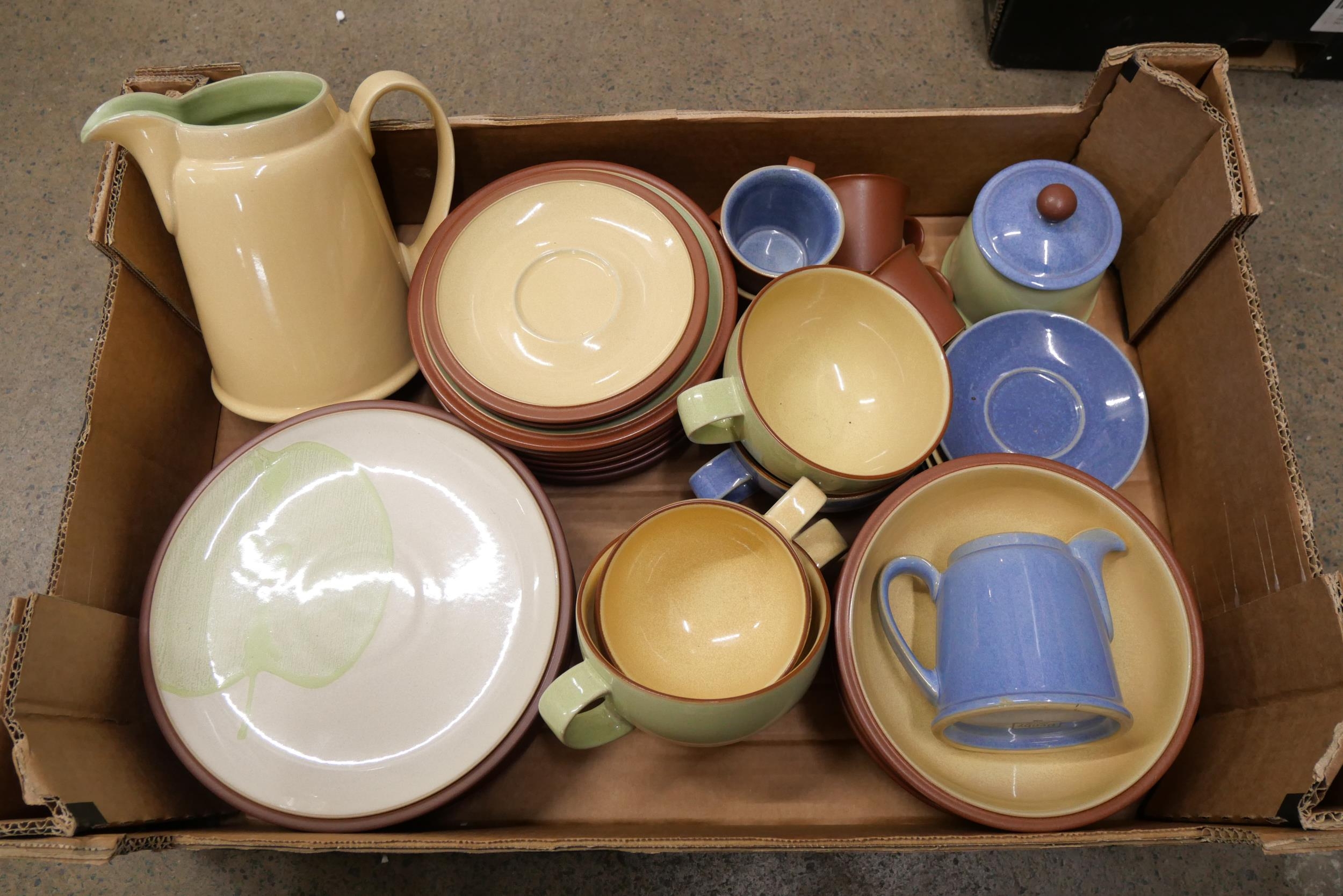 A mixed collection of Denby Pottery including plates, cups and saucers, large cups and saucers, bowls, etc., to include Juice Fruits pattern *Not available for packing and posting*