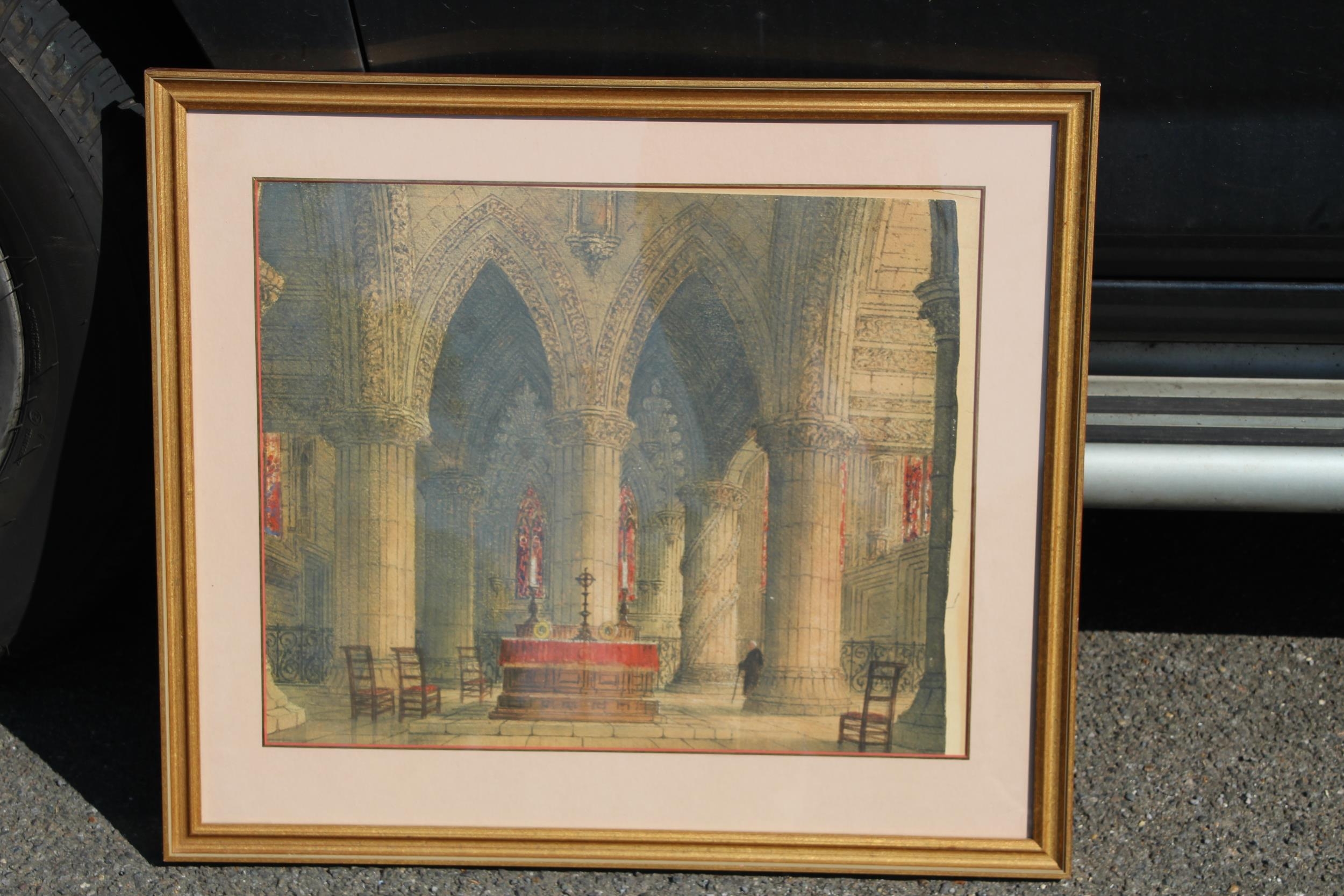 WATERCOLOUR OF THE ROSLIN CHAPEL 65 X 57CM
