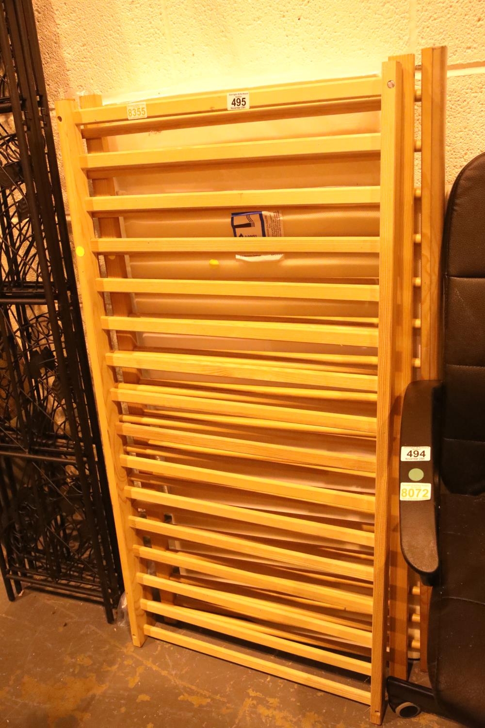 Unassembled child's cot and two mattresses (unchecked). Not available for in-house P&P
