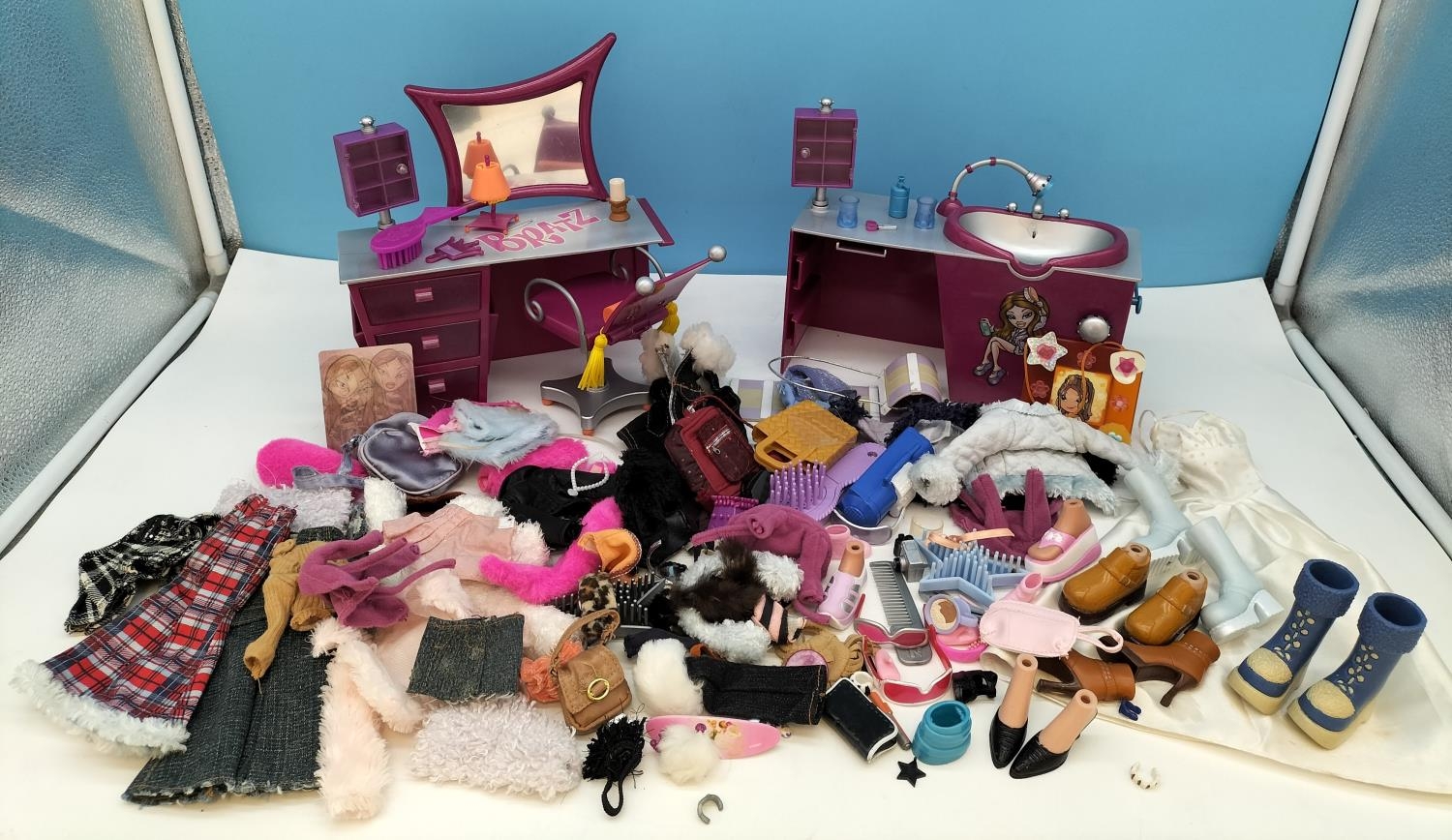 Collection of Bratz Clothing and Accessories plus Dressing Table and Hair Dresser Unit.
