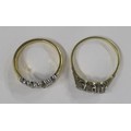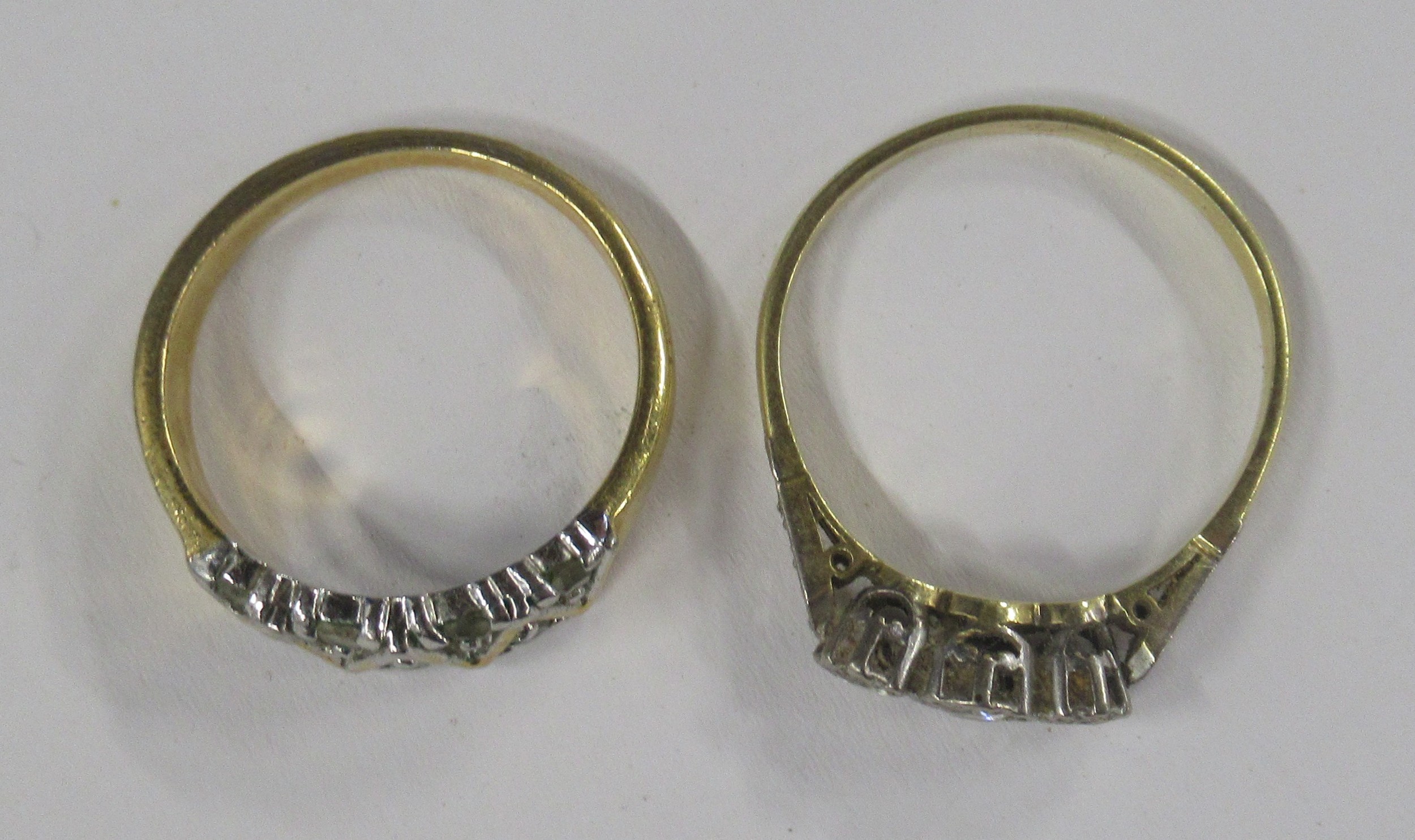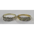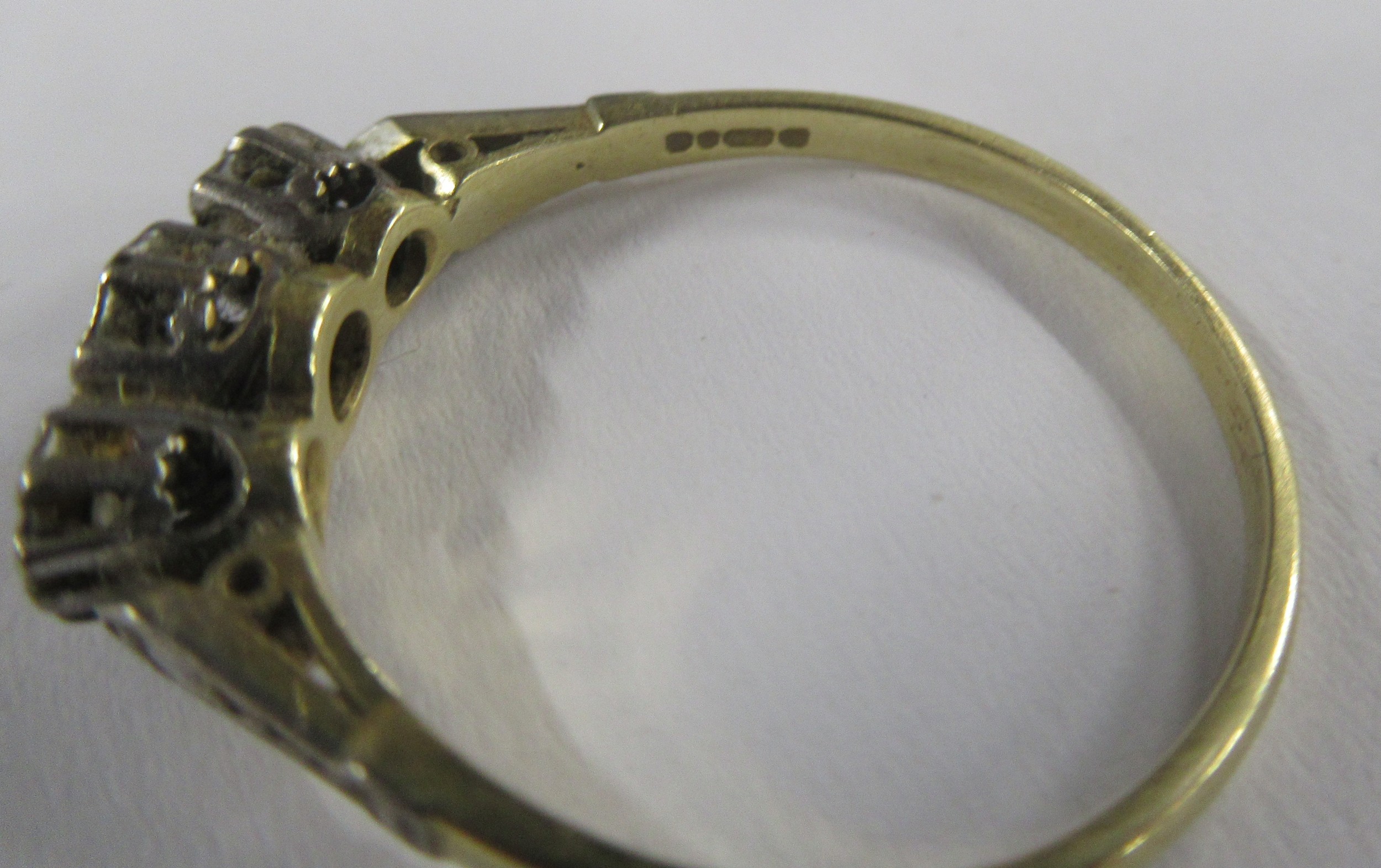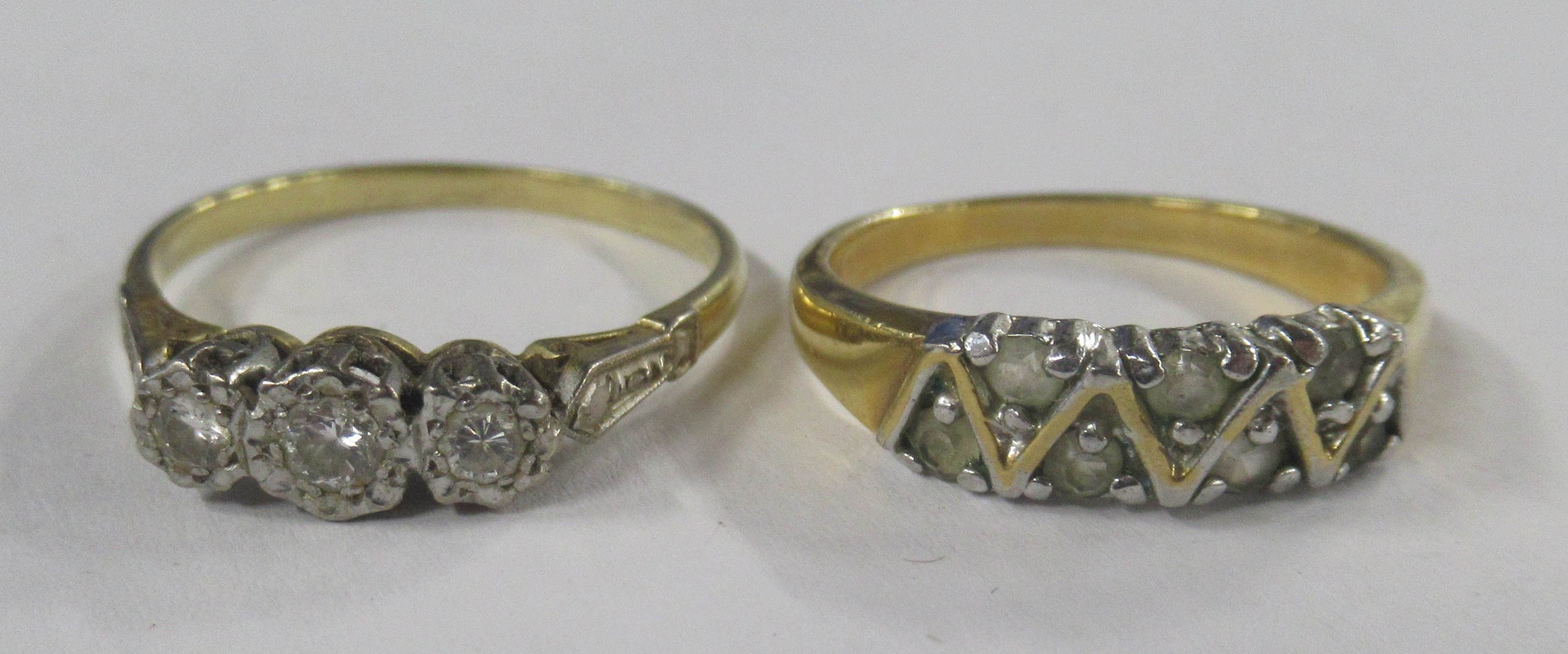 An 18ct graduated three stone diamond ring, illusion set three stone-brilliants, total diamond weight est. 0.30ct, weight 3.6g and a gilt metal dress ring, paste set