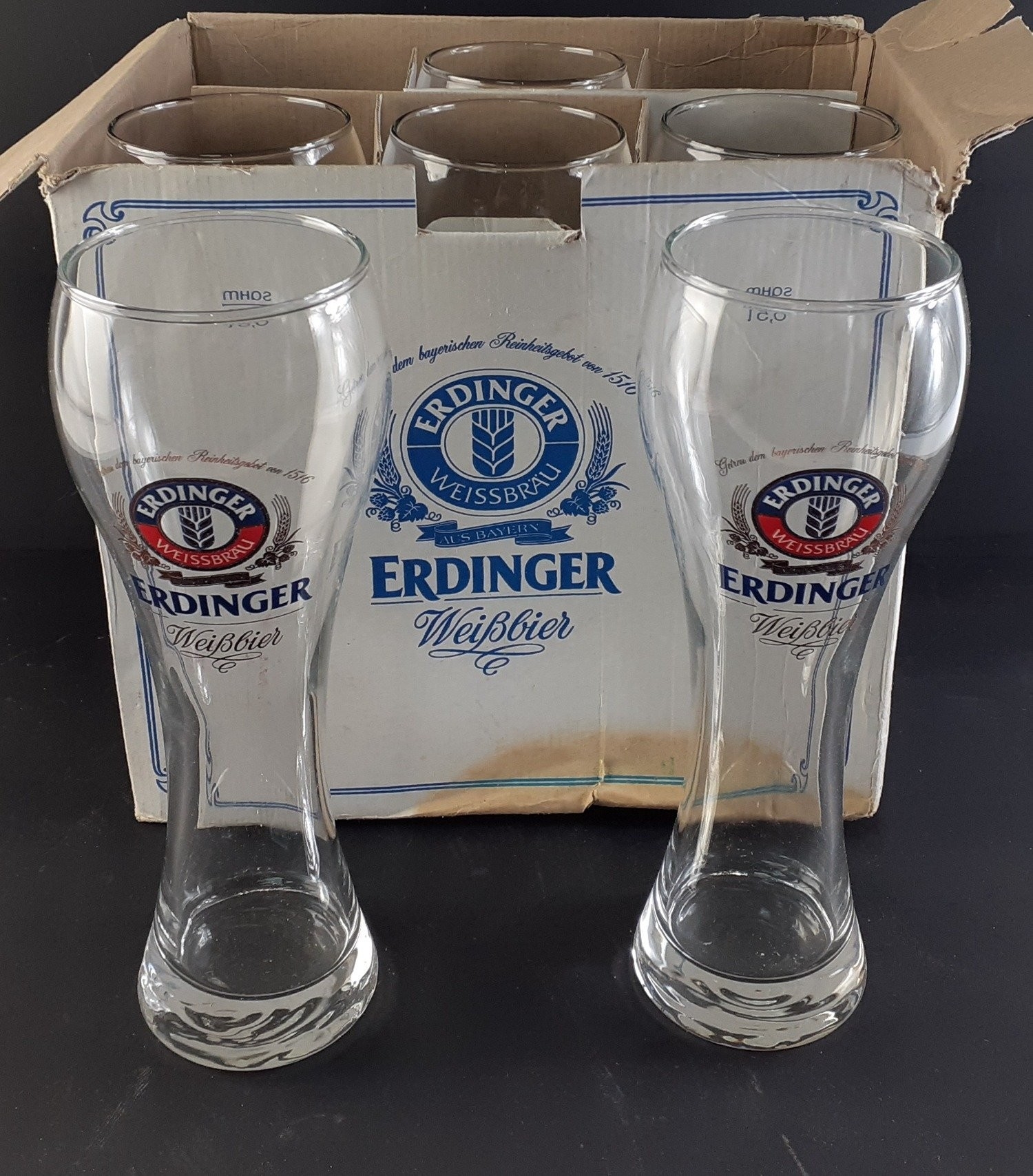 A box of 6 ERDINGER WEISSBRAU 0.5 litre lager glasses
