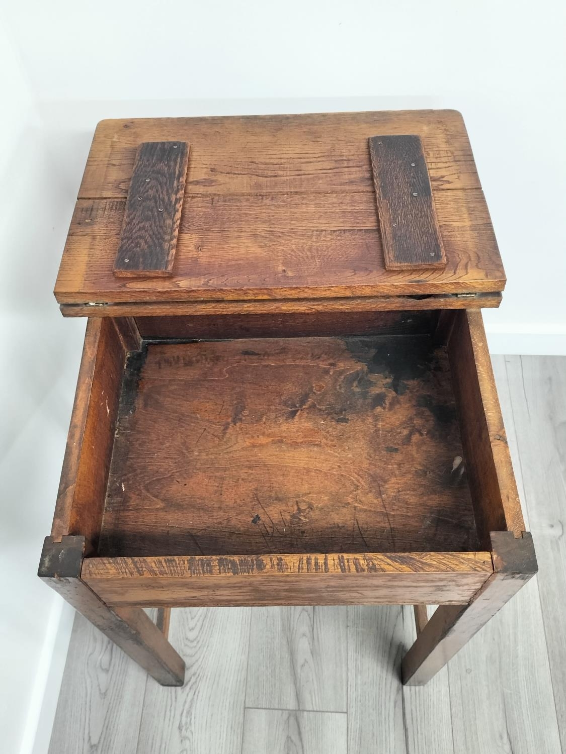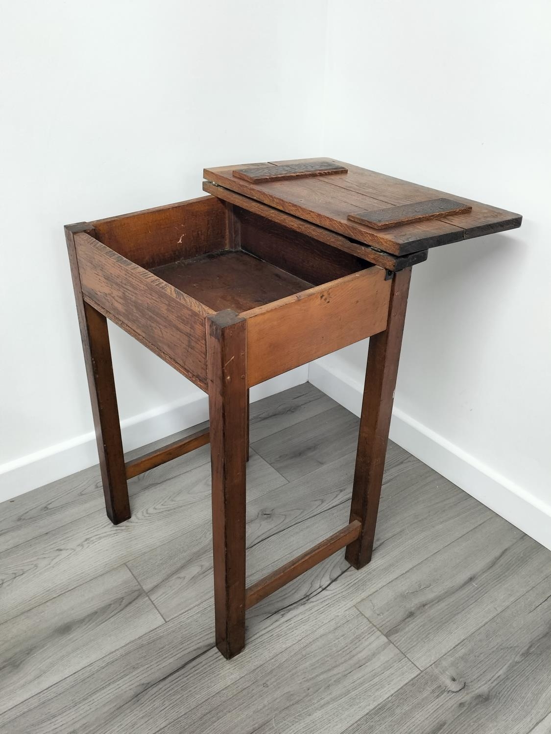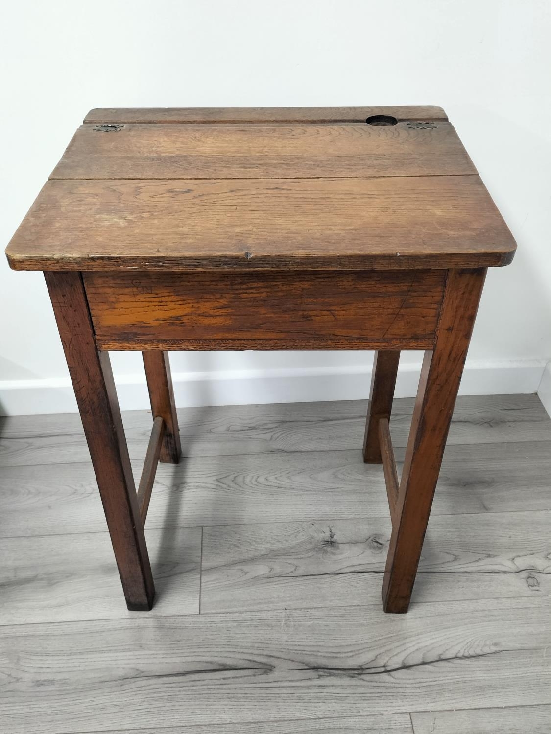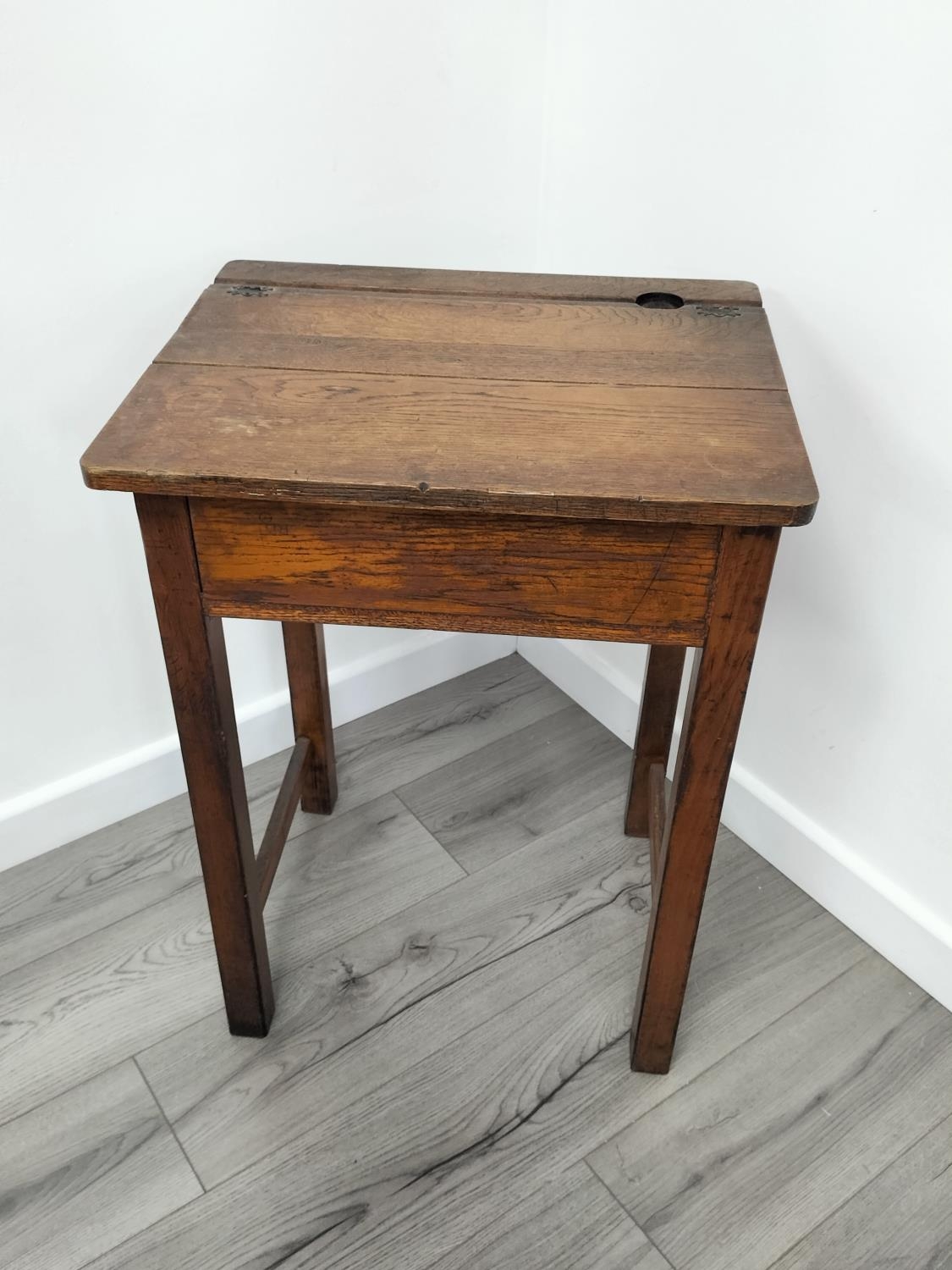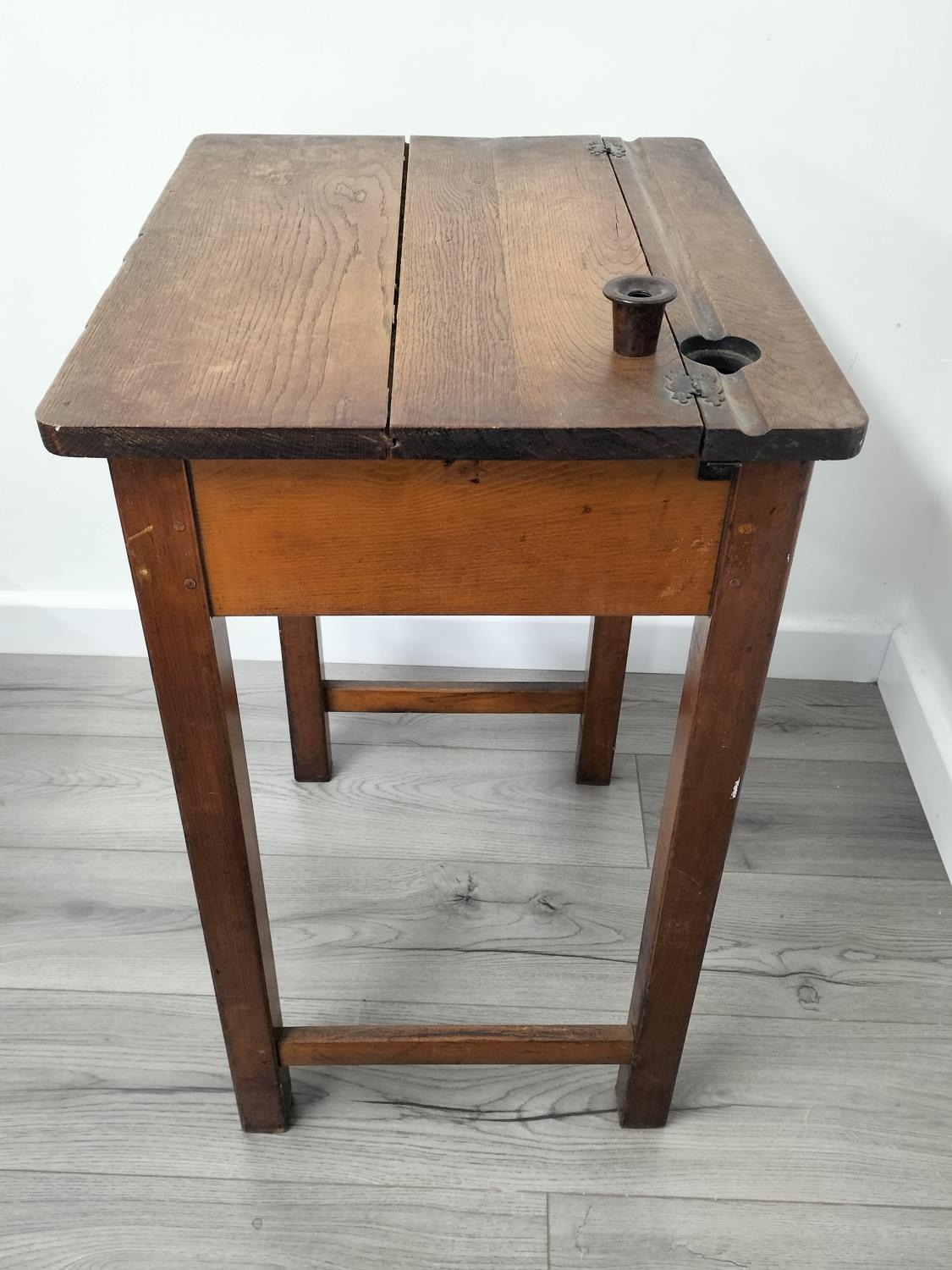 Vintage Oak School Desk with Bakelite Inkwell. 76cm High, 56cm x 46cm. Collection Only.