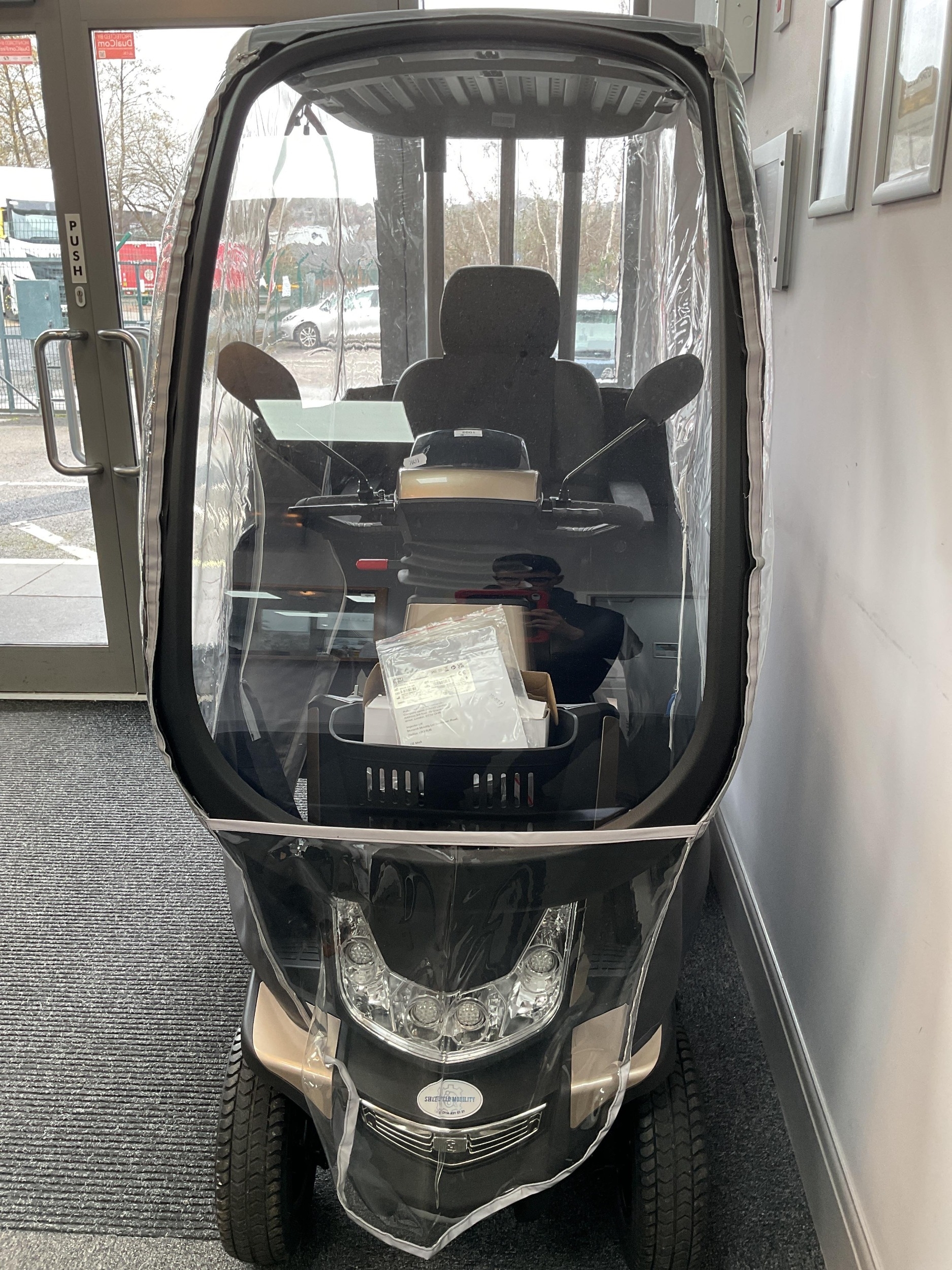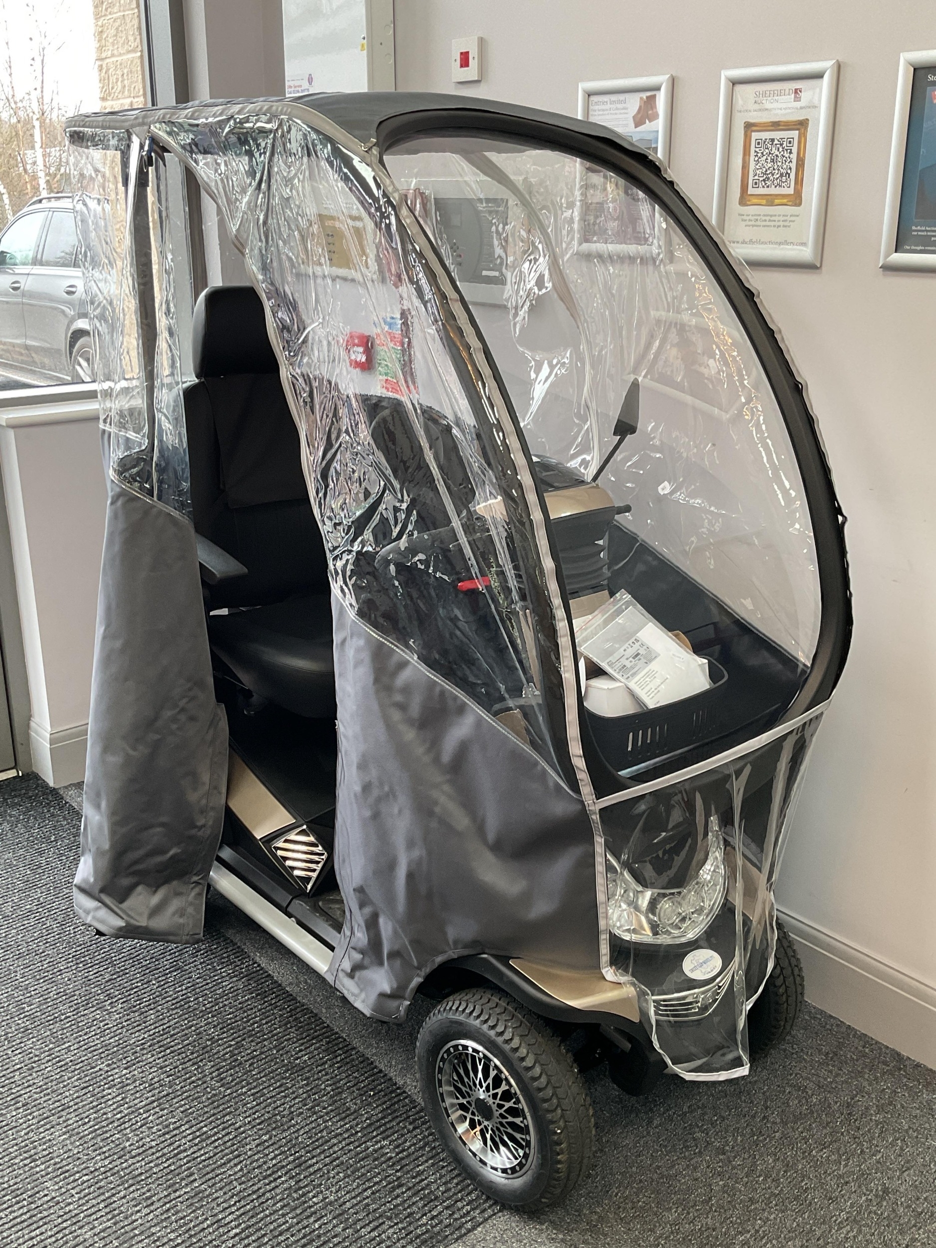 Monarch Storm Plus Mobility Scooter with fixed canopy, four wheels, with battery charger, keys and protective cover. Bought October 2025, RRP £4095