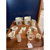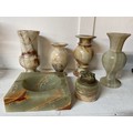 A selection of mid-century onyx vases and ornaments