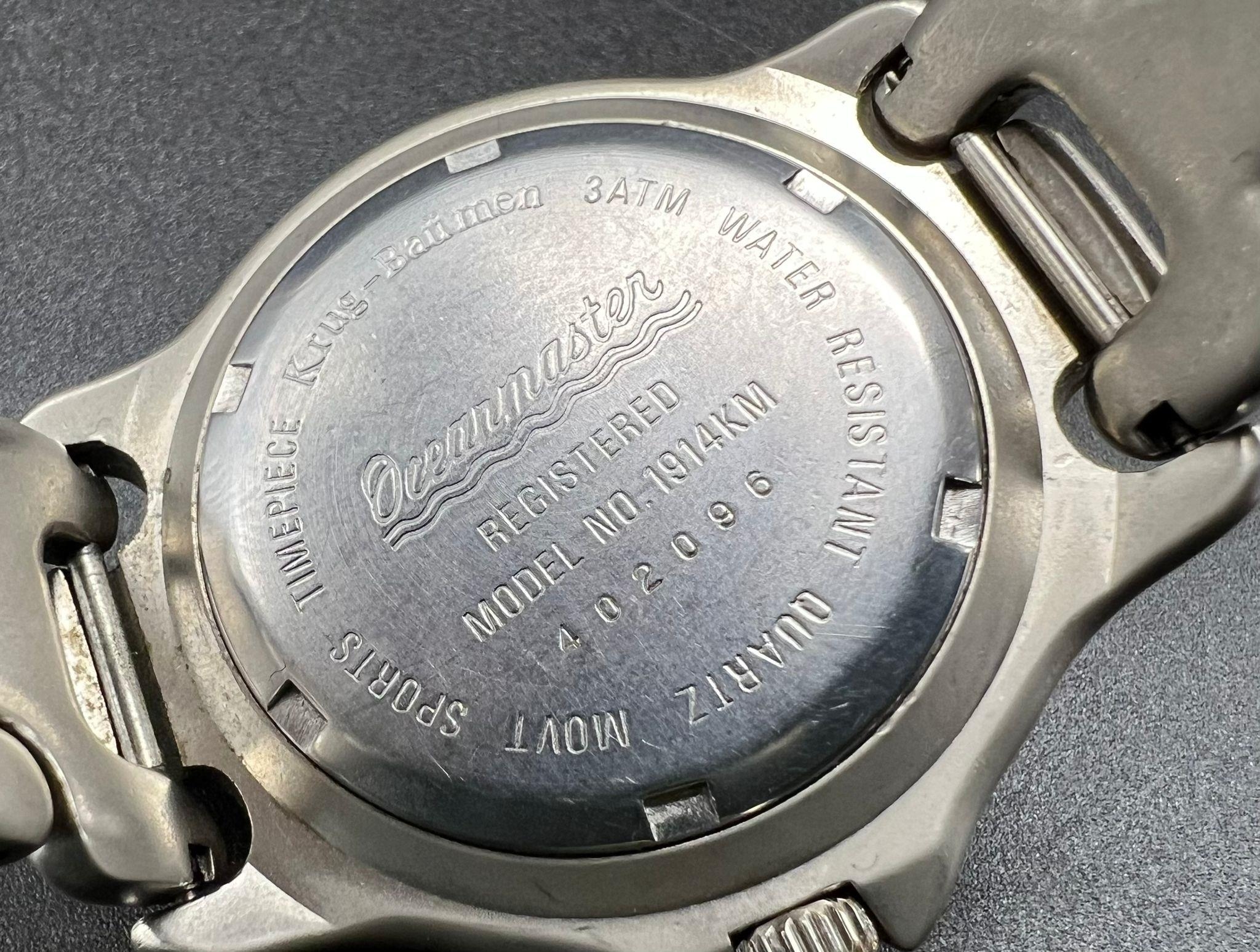 A Vintage Krug-Baumen Oceanmaster Gents Watch. Two tone metal strap. Case - 38mm. Green dial with date window. In working order.