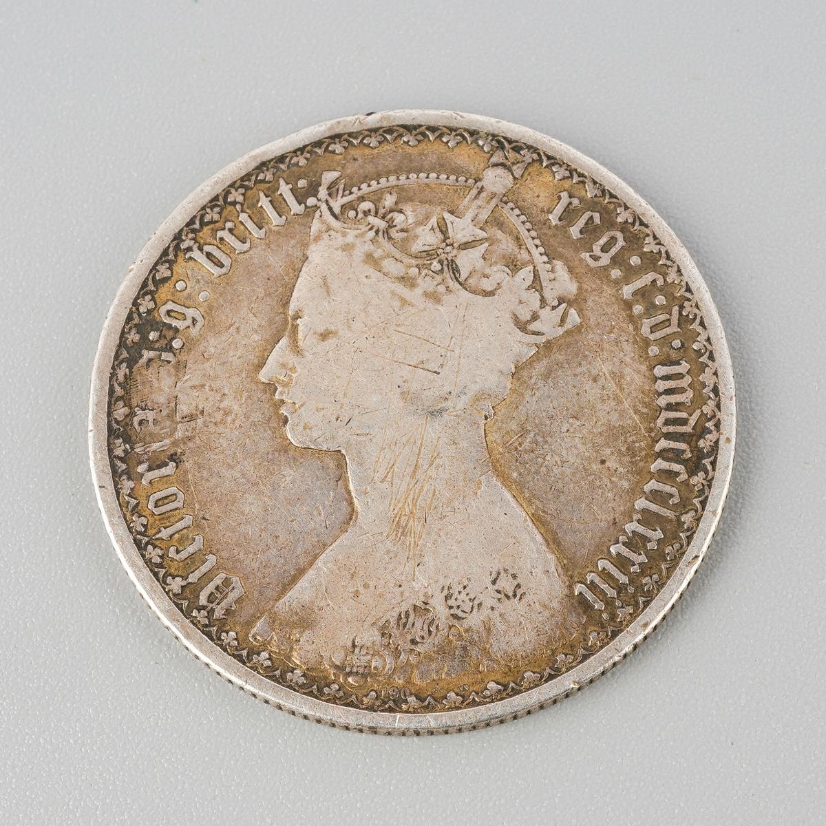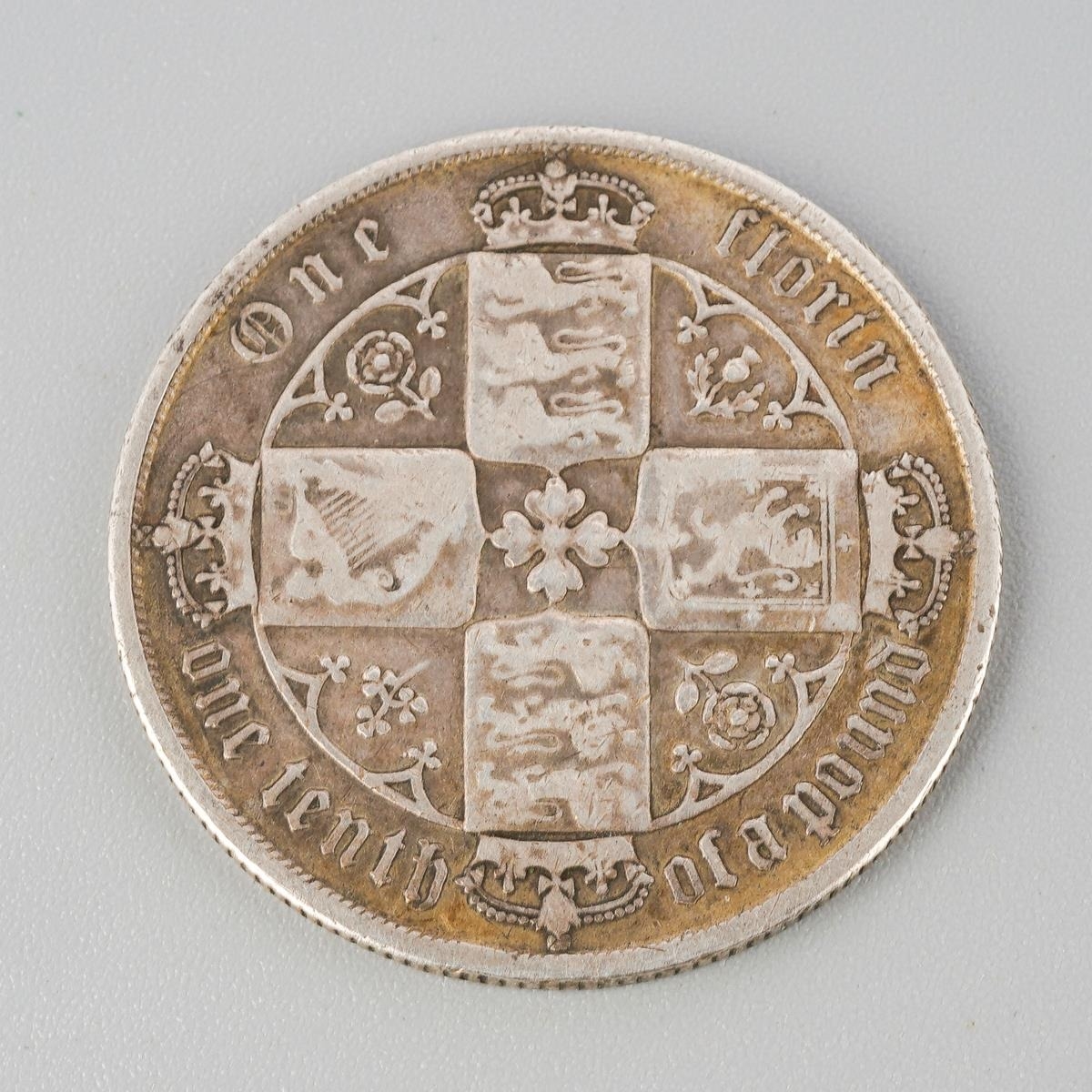 A Victorian 1873 Silver One Florin, Crowned Gothic Bust Facing Left