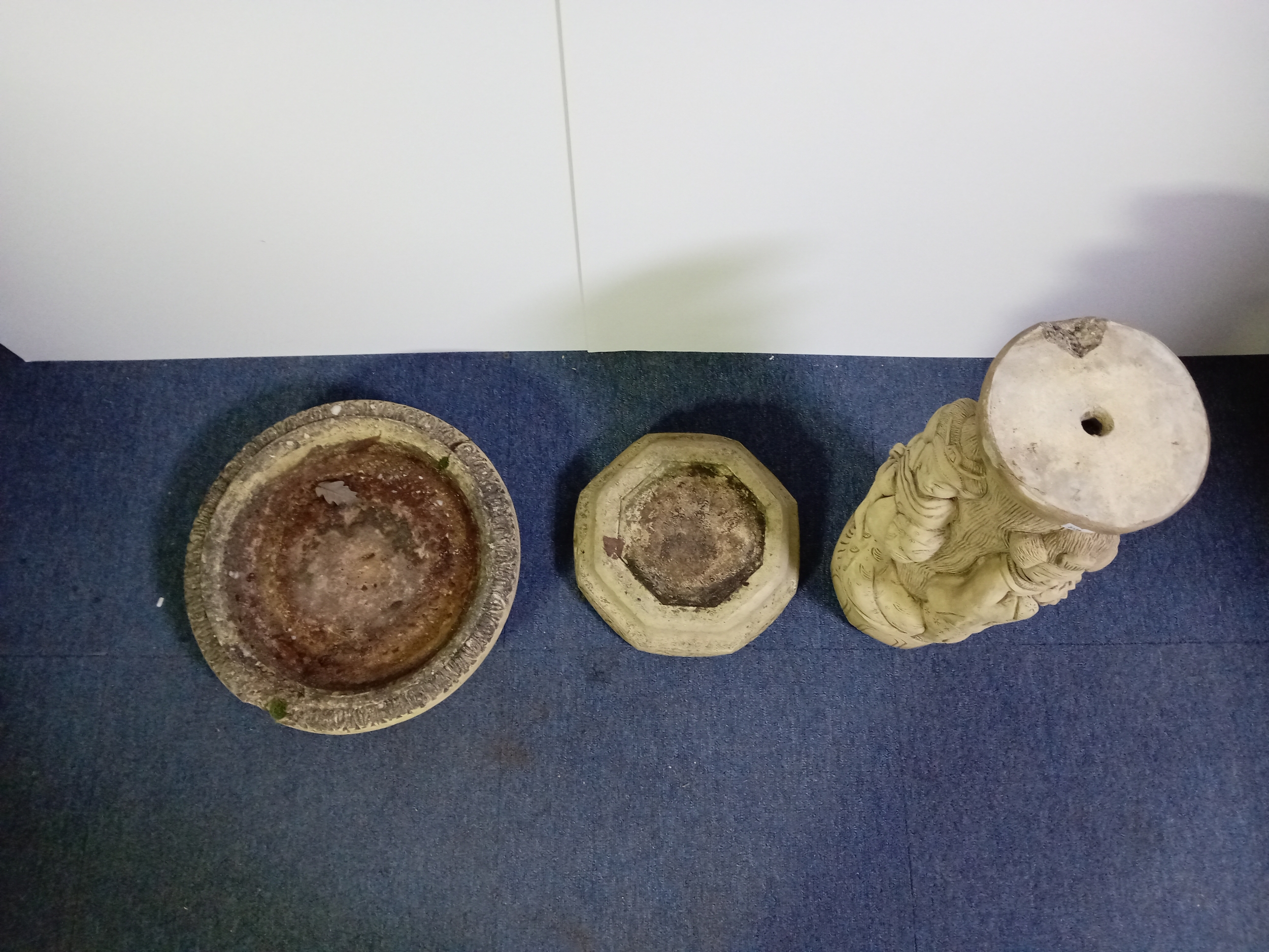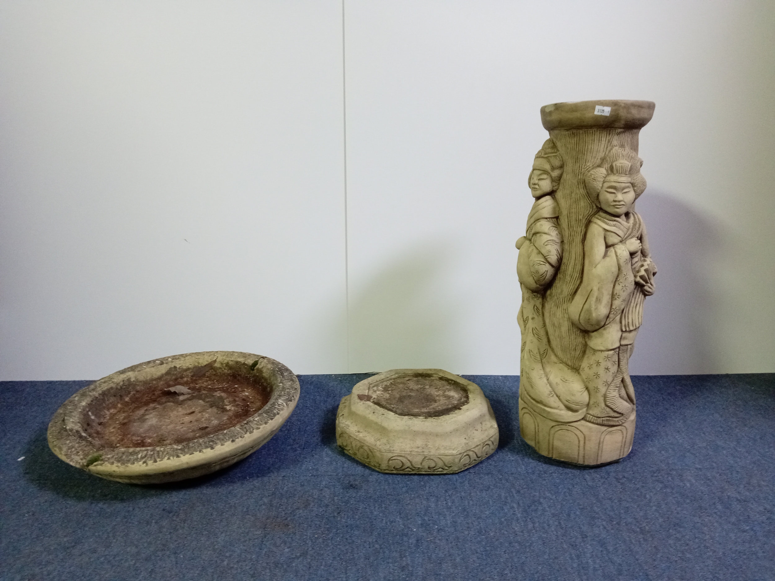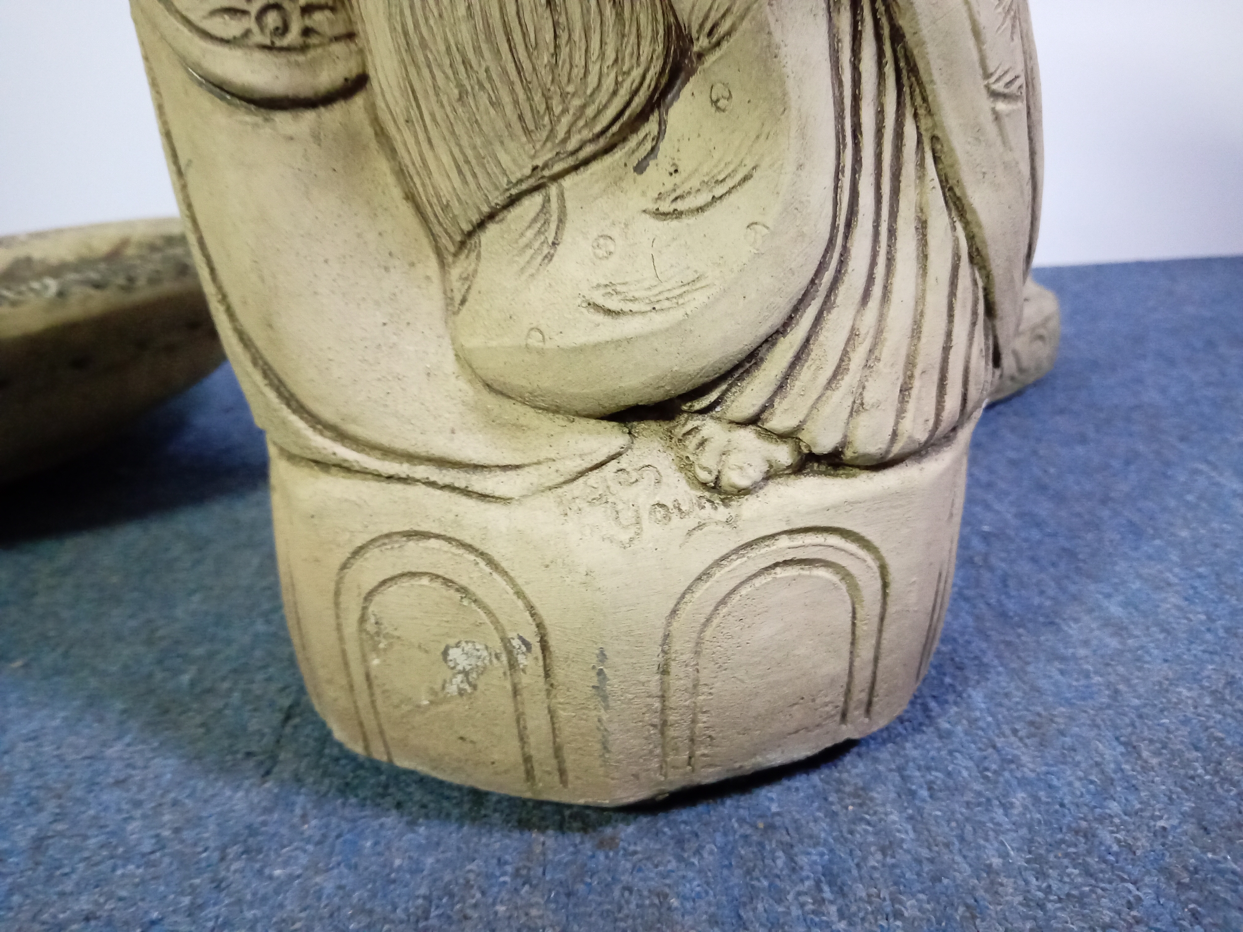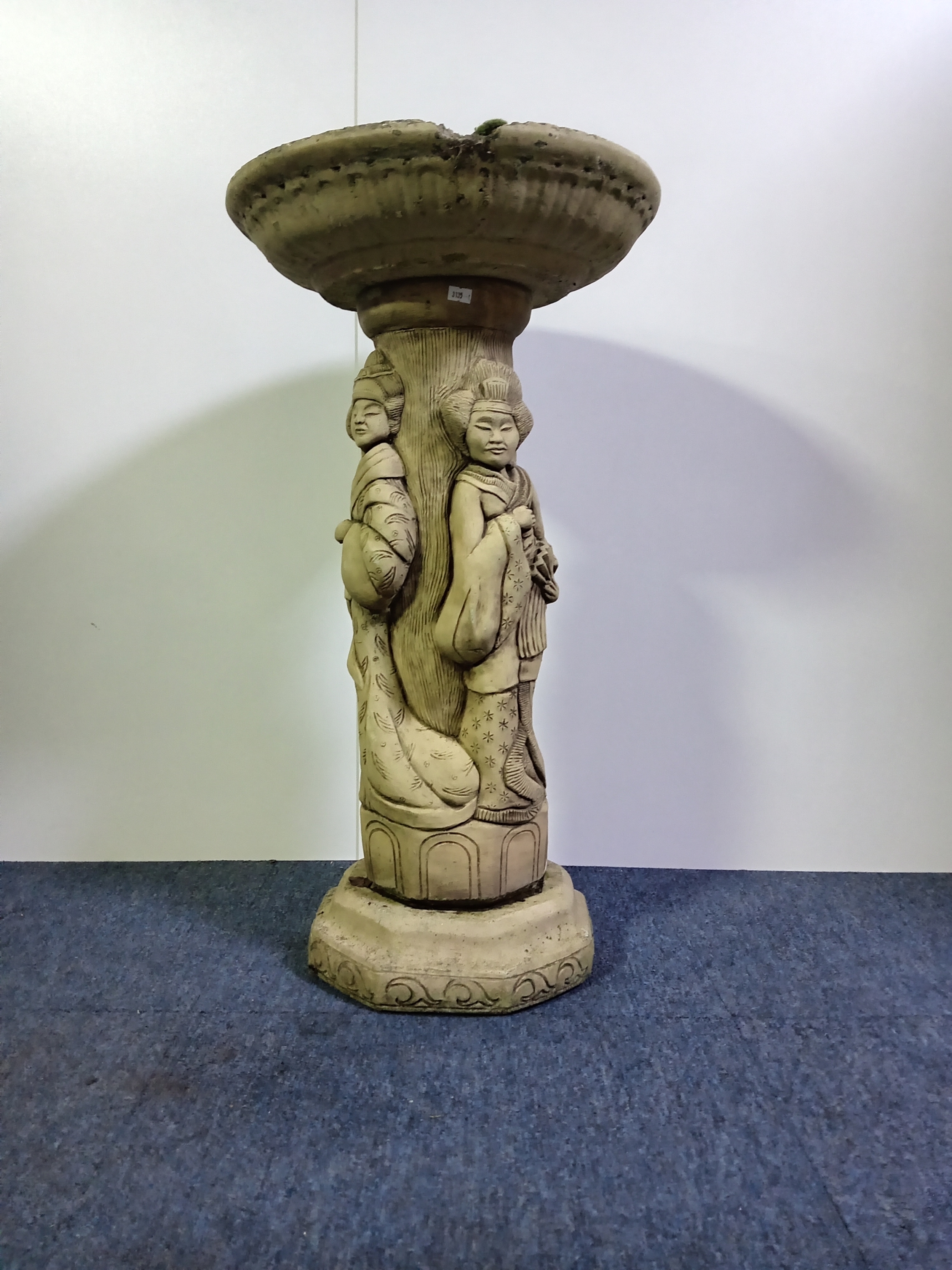 A solid concrete pedestal bird bath signed Helen young, height 30.5"