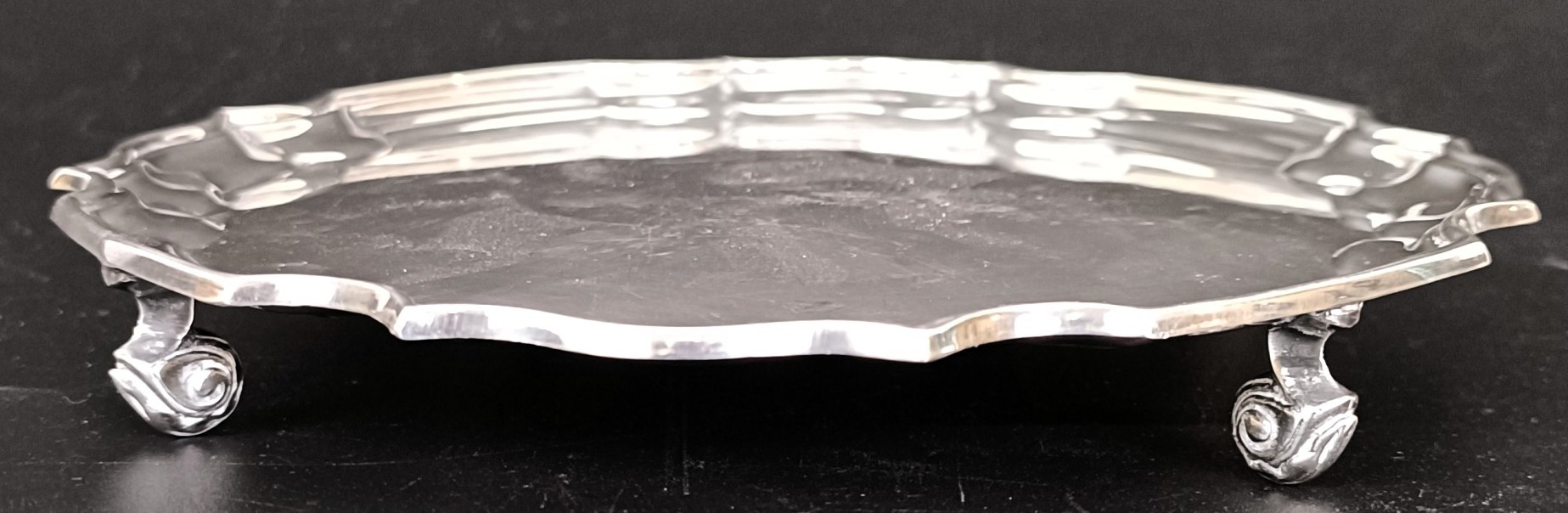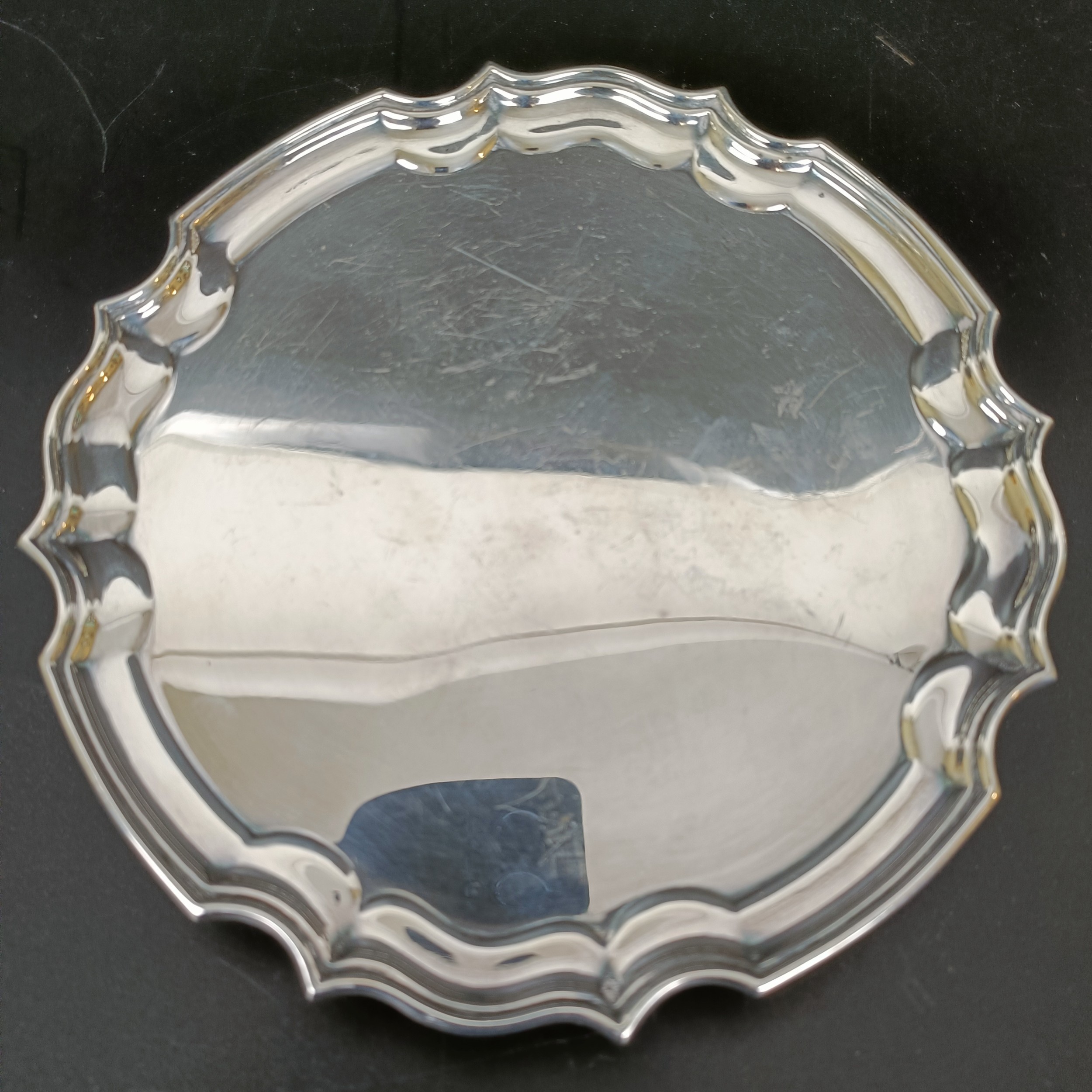 An 18th century style silver waiter, Sheffield 1986, 5.5 ozt, 15.5 cm diameter