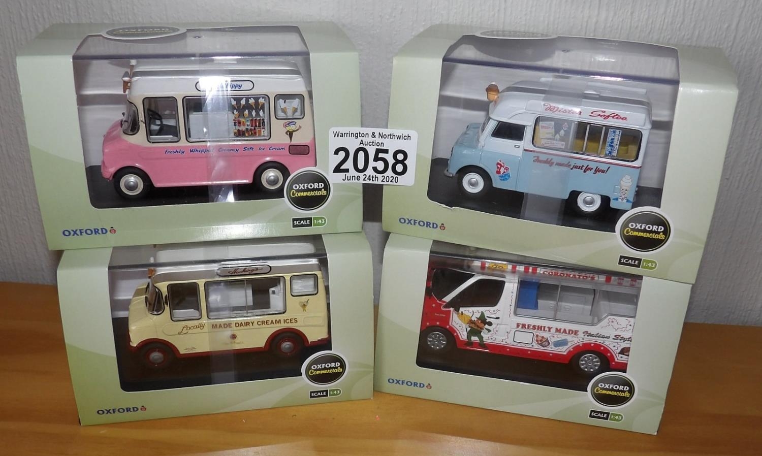 Oxford 1.43 Scale x 4 Mixed Ice Cream Vans. P&P Group 2 (£18+VAT for the first lot and £2+VAT for subsequent lots)