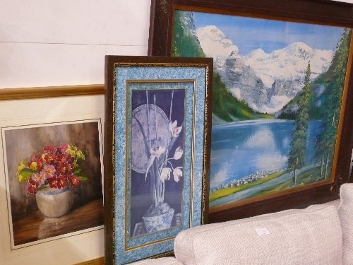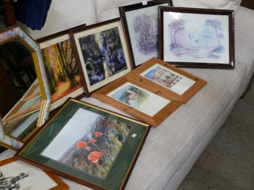 COLLECTION OF FRAMES, PRINTS, EMBROIDERED ETC