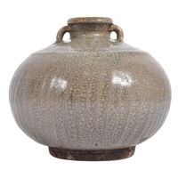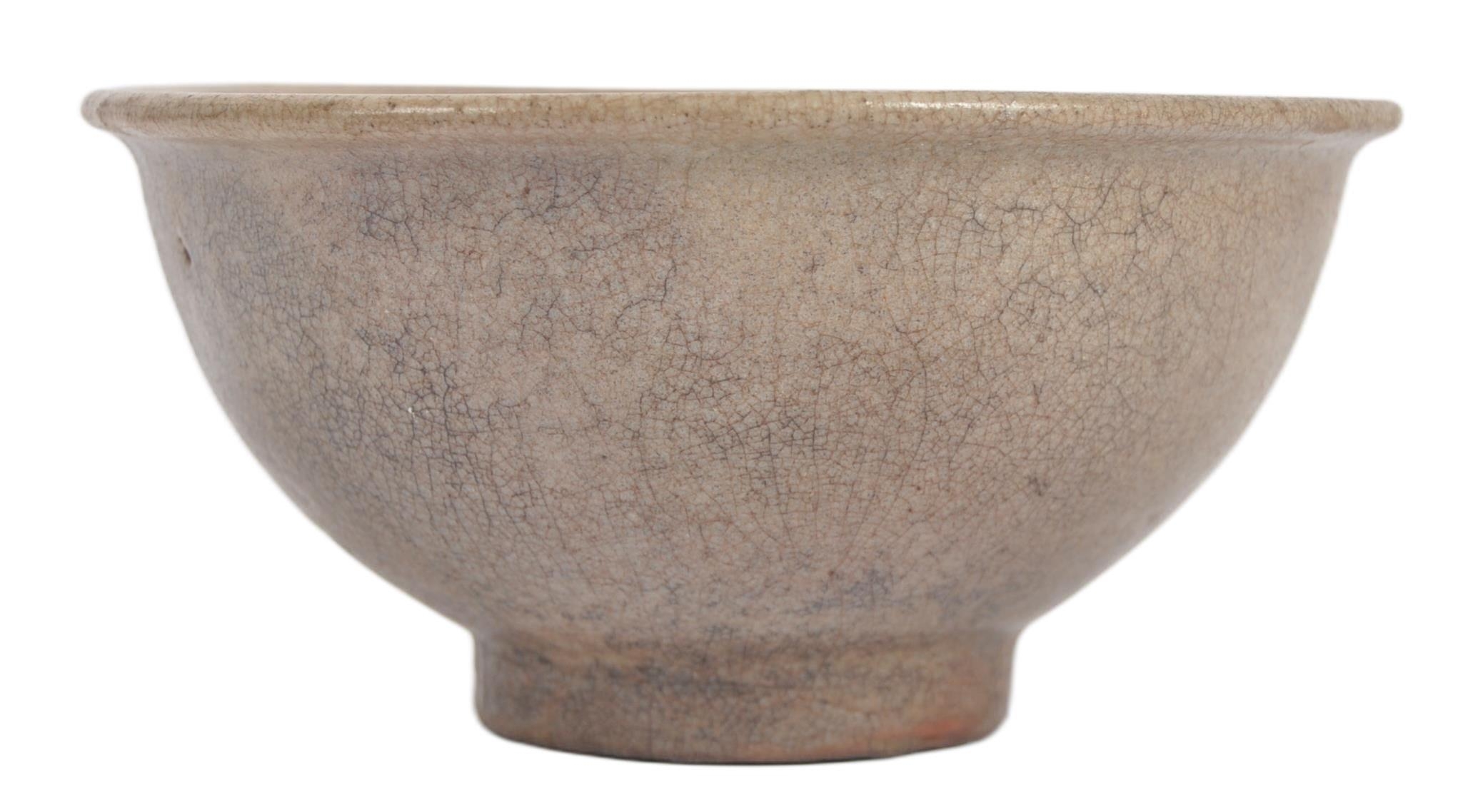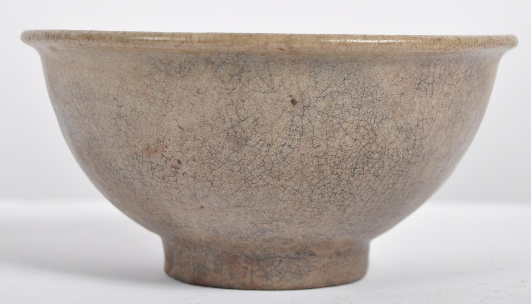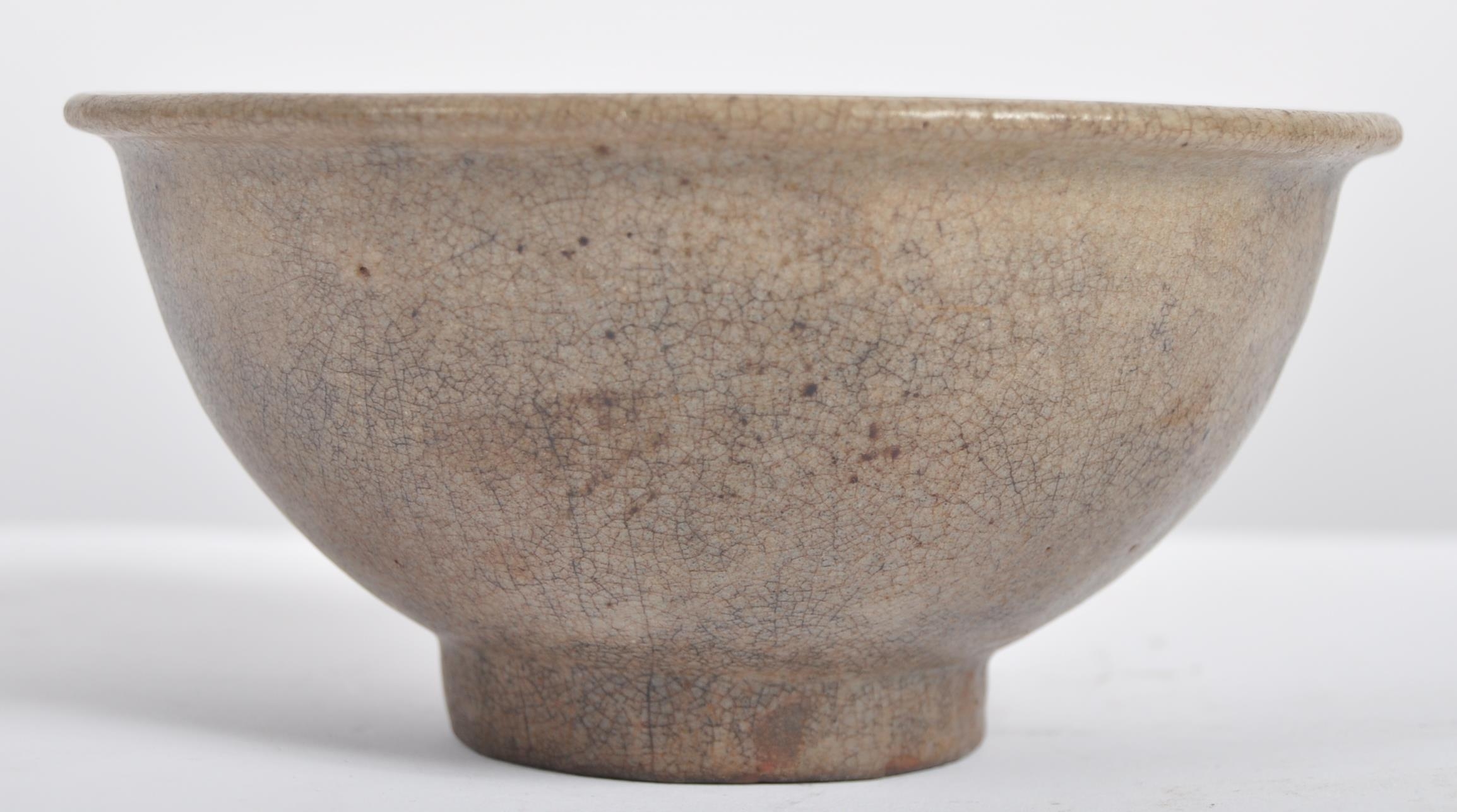 A 15th century Chinese Ming Dynasty celadon bowl. With raised lips on a circular foot, with crackled glaze. Approximately 16cnm diameter.