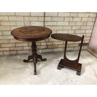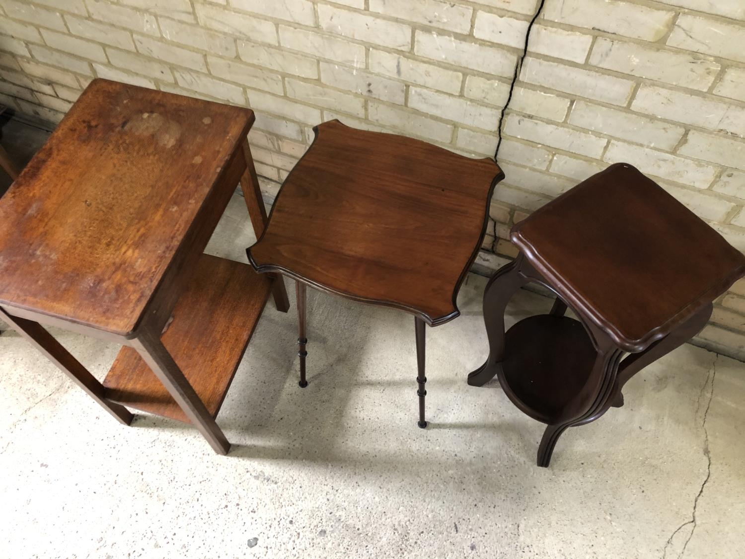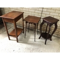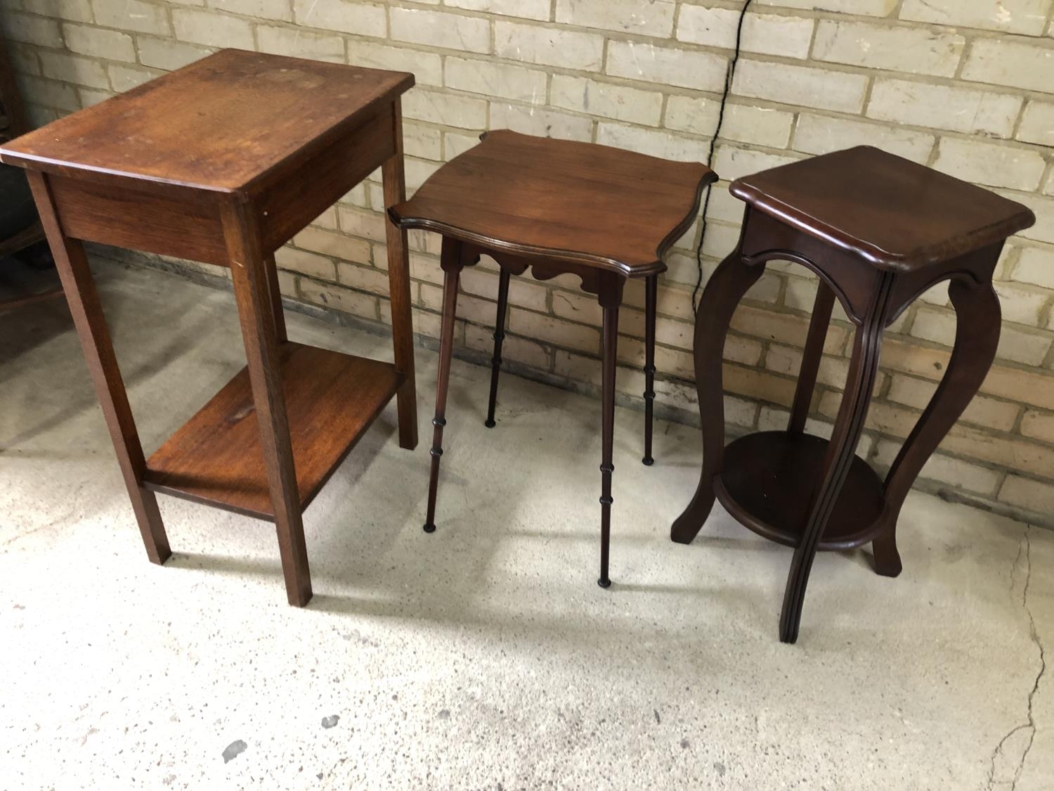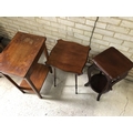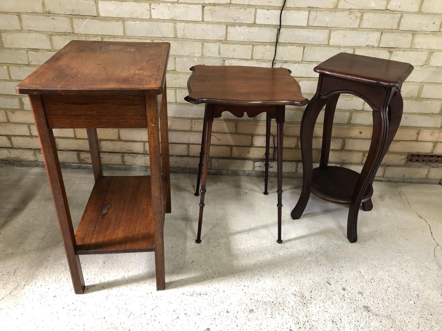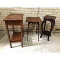 A oak single drawer side table together with two mahogany occasional tables