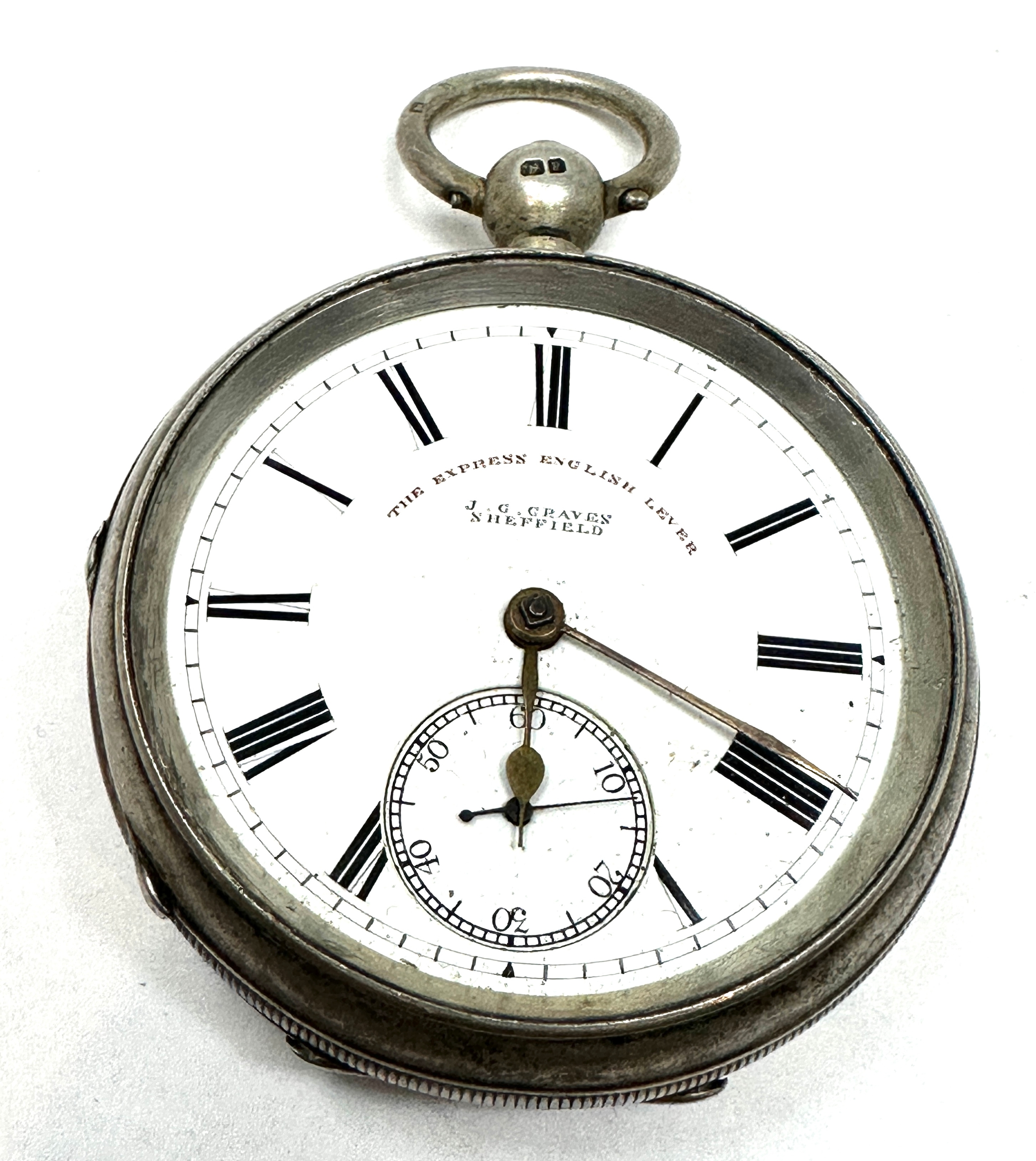 Antique silver open face pocket watch J.g.graves sheffield the watch is ticking no glass weight 120g