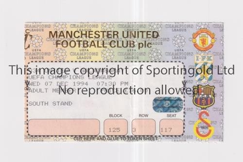 MANCHESTER UNITED Ticket for the home Champions League match v Galatasaray 7/12/1994, very slightly creased. David Beckham's Champions League debut and first goal. Generally good