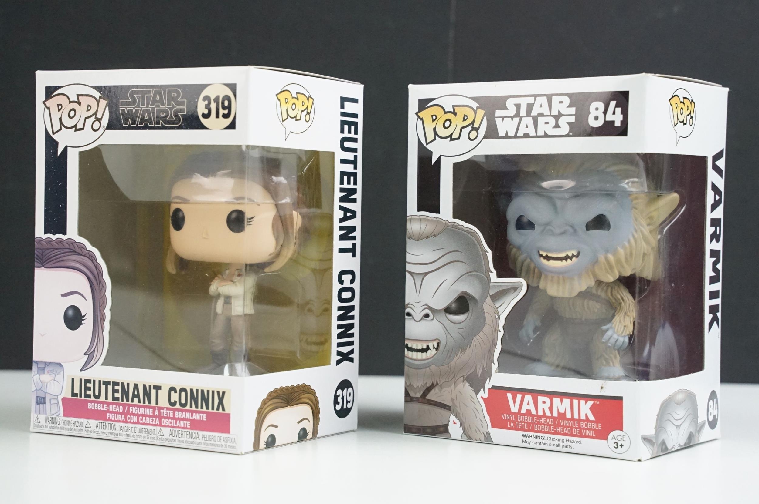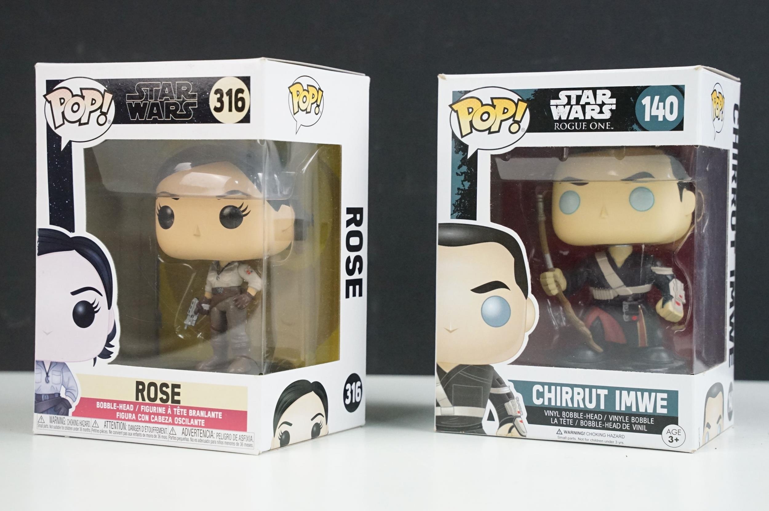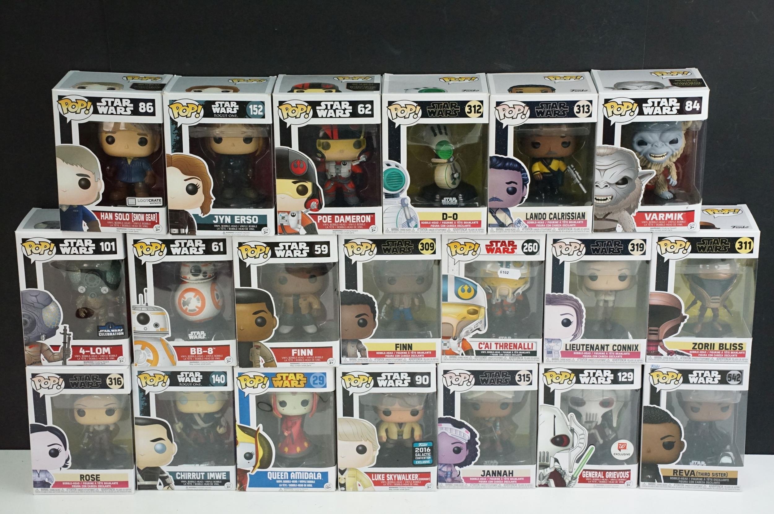 Star Wars - 20 Boxed Star Wars Funko Pop! figures featuring Rogue One 152 Jyn Erso, 542 Third Sister Riva, 2016 Galactic Convention Luke Skywalker (Ceremony), 313 Lando Calrissian, 315 Jannah, 309 Finn, 84 Vermik, 62 Poe Dameron, etc, vg overall