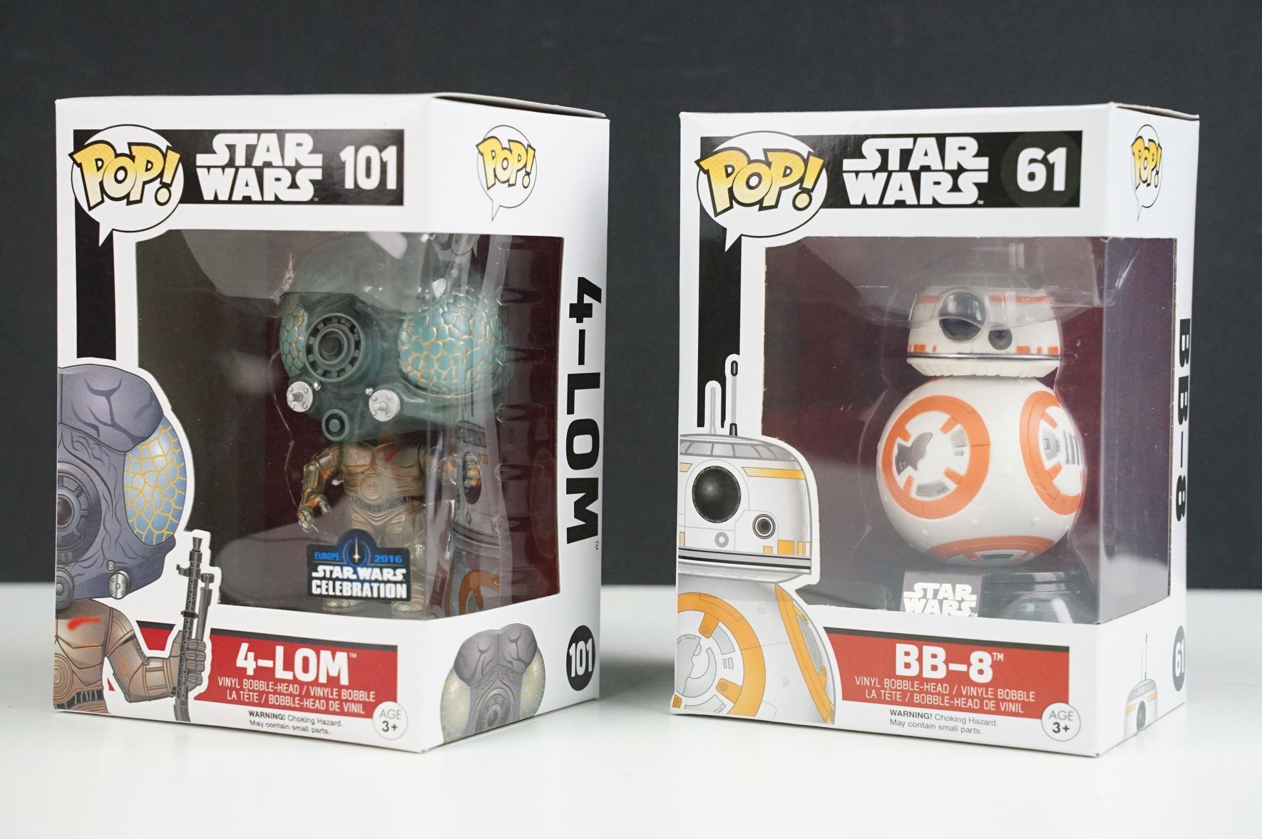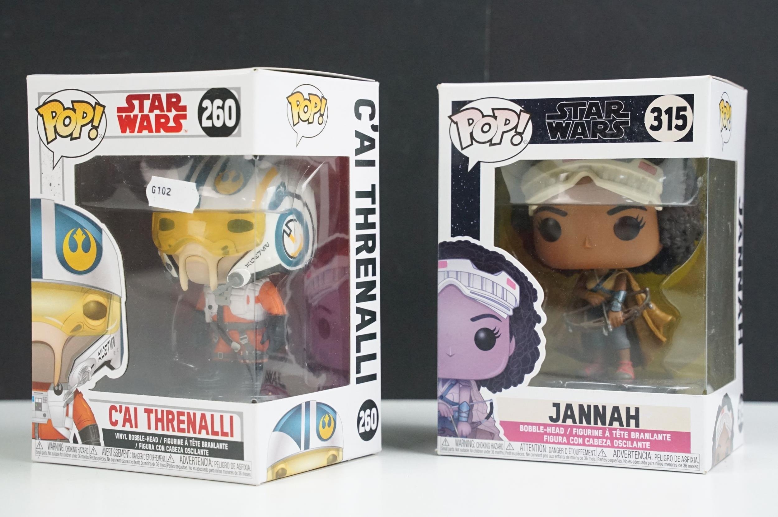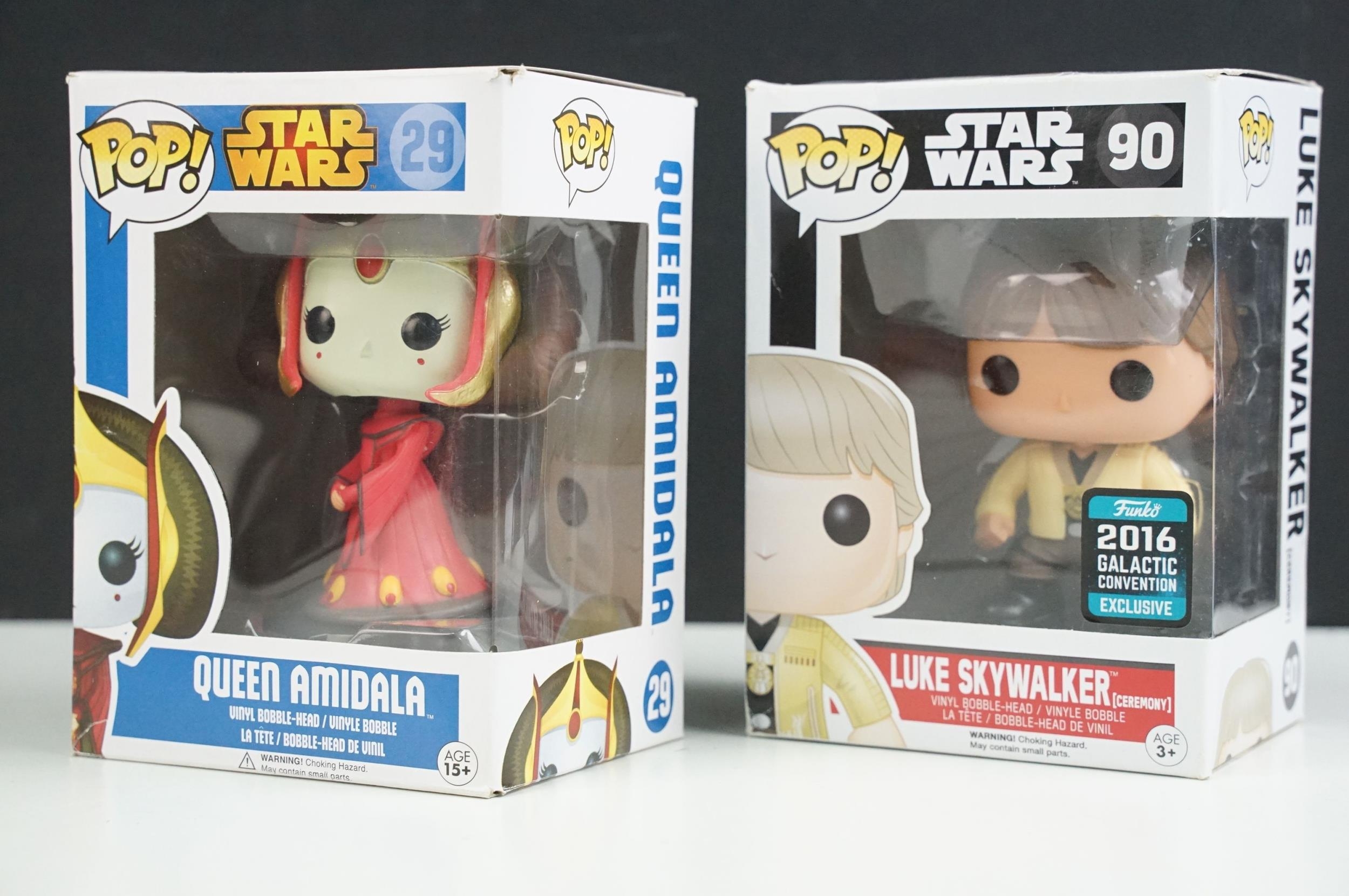 Star Wars - 20 Boxed Star Wars Funko Pop! figures featuring Rogue One 152 Jyn Erso, 542 Third Sister Riva, 2016 Galactic Convention Luke Skywalker (Ceremony), 313 Lando Calrissian, 315 Jannah, 309 Finn, 84 Vermik, 62 Poe Dameron, etc, vg overall