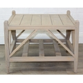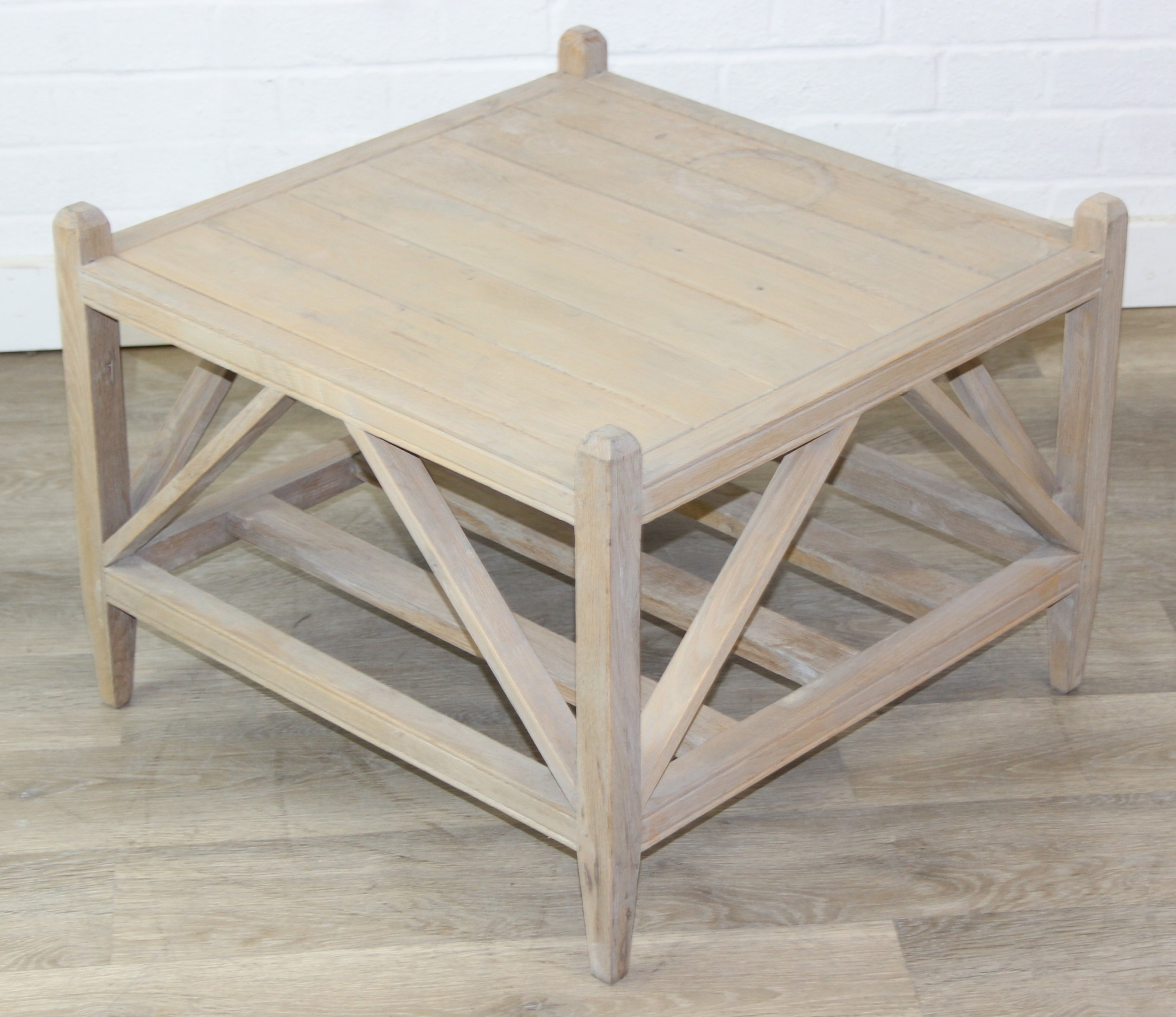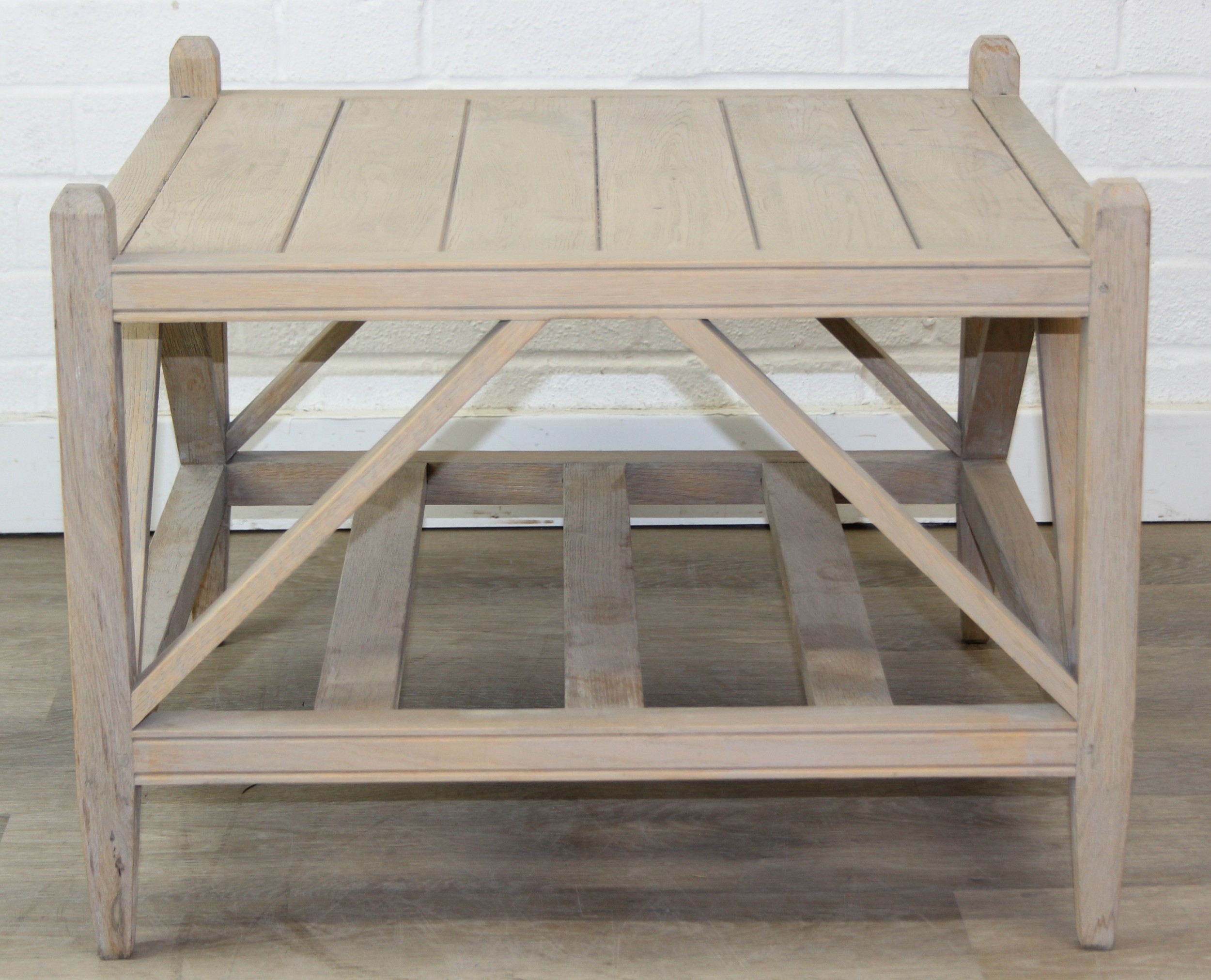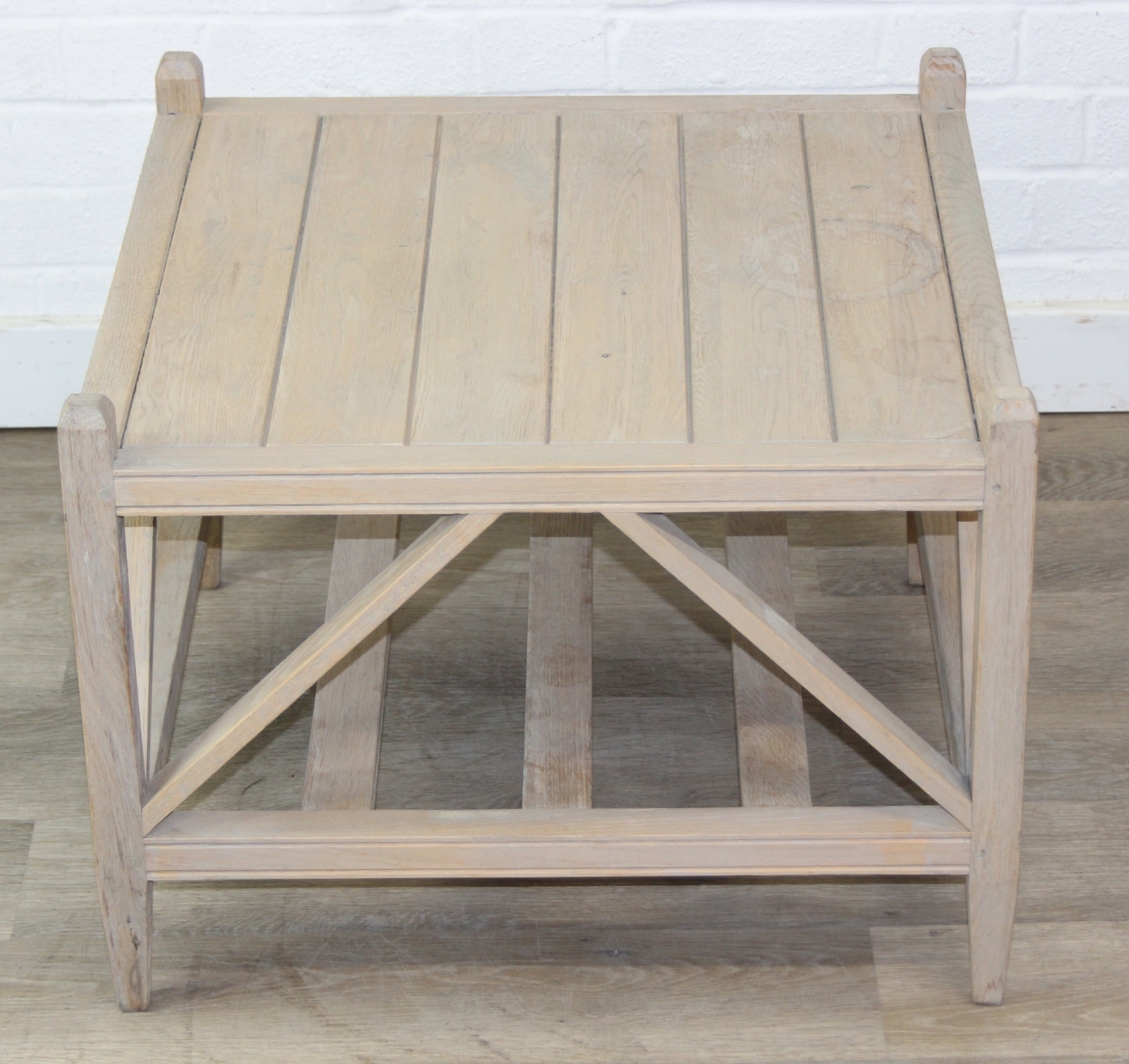A unusual oak light-wood coffee table with slatted base, 60cm x 60cm x 45cm