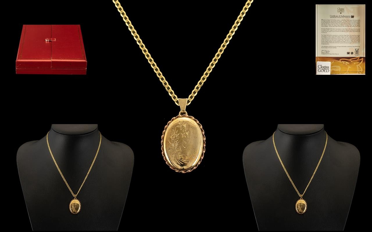 Clogau 9ct Welsh Gold Attractive Pendant Locket with Attached 9ct Gold Chain, both fully hallmarked for Clogau 9ct gold, also with Certificate of Authenticity stating that this piece of jewellery is made of Clogau Welsh gold - please confirm with photo; 9 grams, 20 inches (50cms) long; as new condition