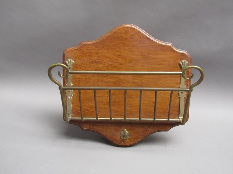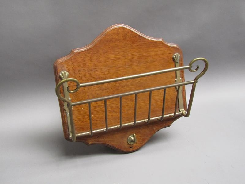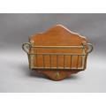A late 19c/early 20c wall hanging letter rack with brass fittings on an oak panel back, 34cm w, 34cm h. This item was removed from The Grove, Cambridge, home of Charles Darwin at the time the house was sold to the Fitzwilliam College.
