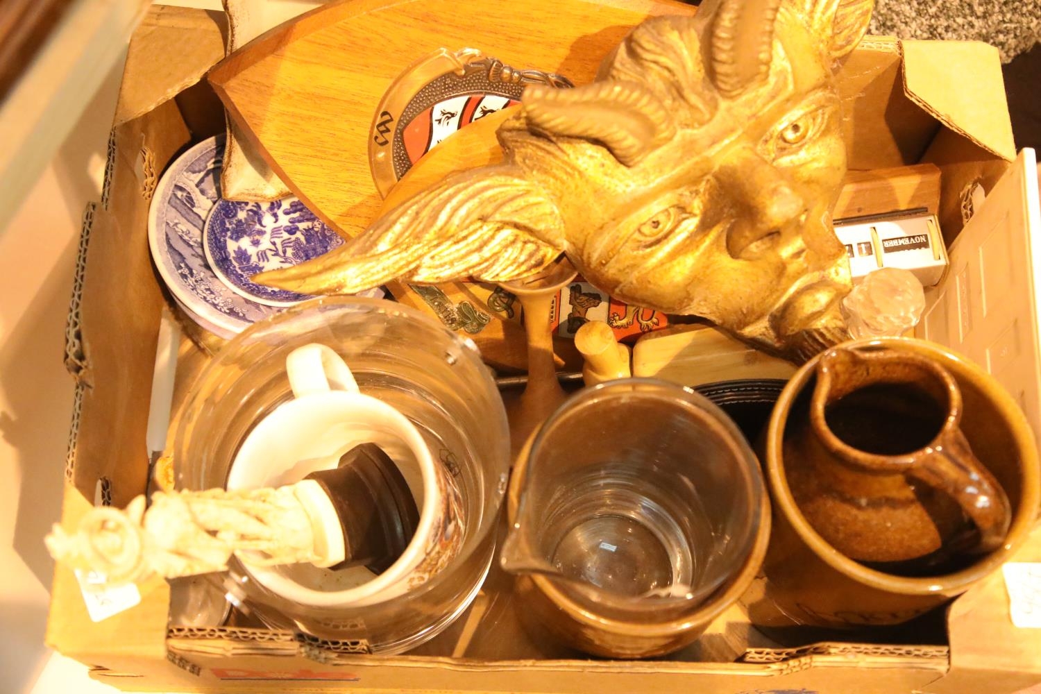 Box of mixed items mainly ceramics. Not available for in-house P&P.