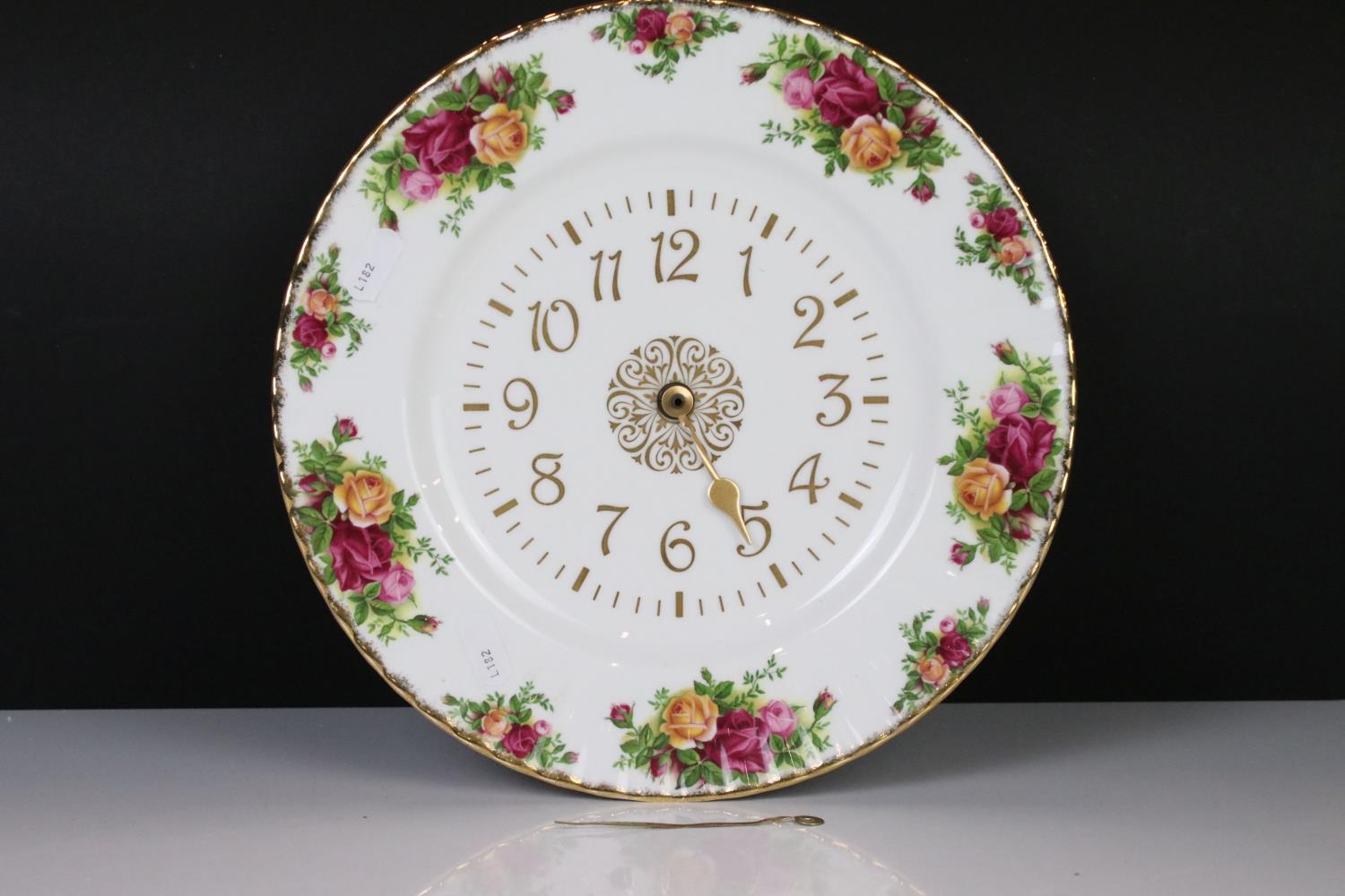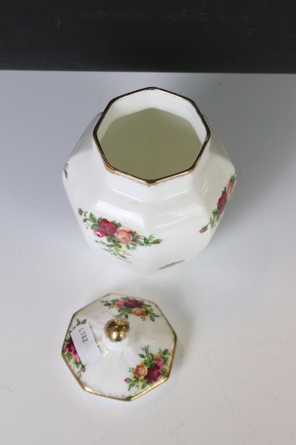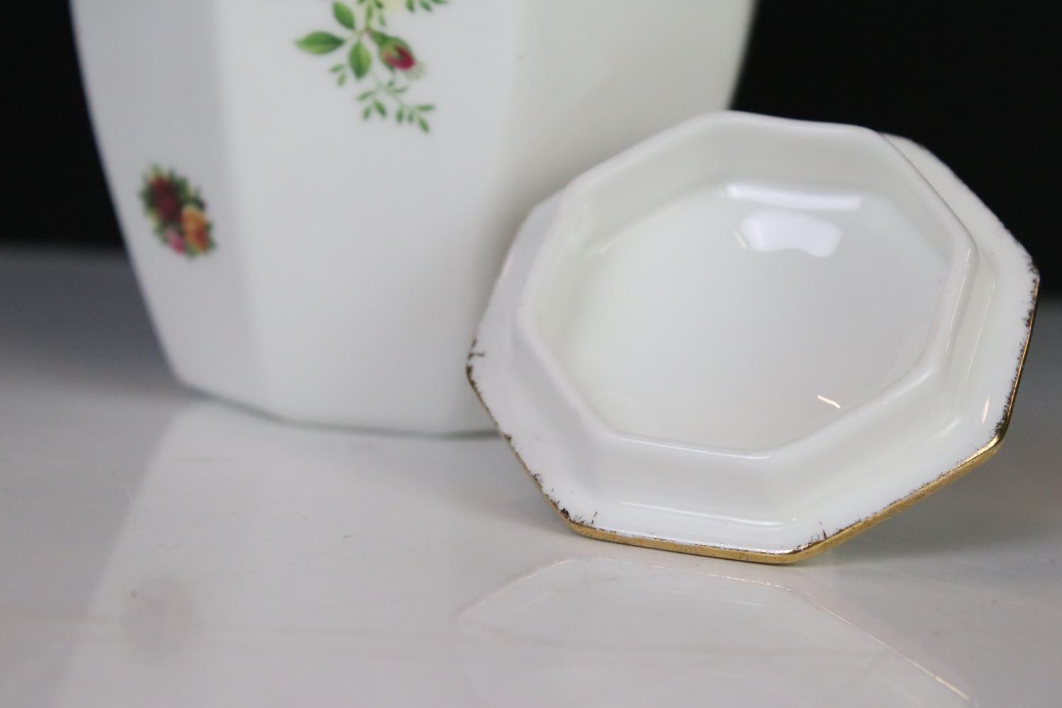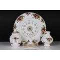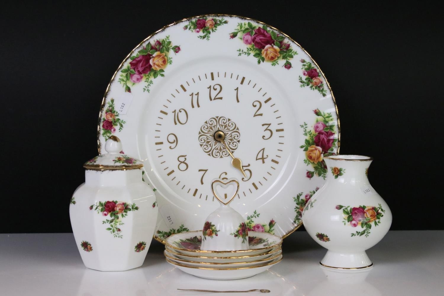 Royal Albert ' Old Country Roses ' including Wall Clock, Lidded Jar, Vase, small Bell and four Pin Dishes