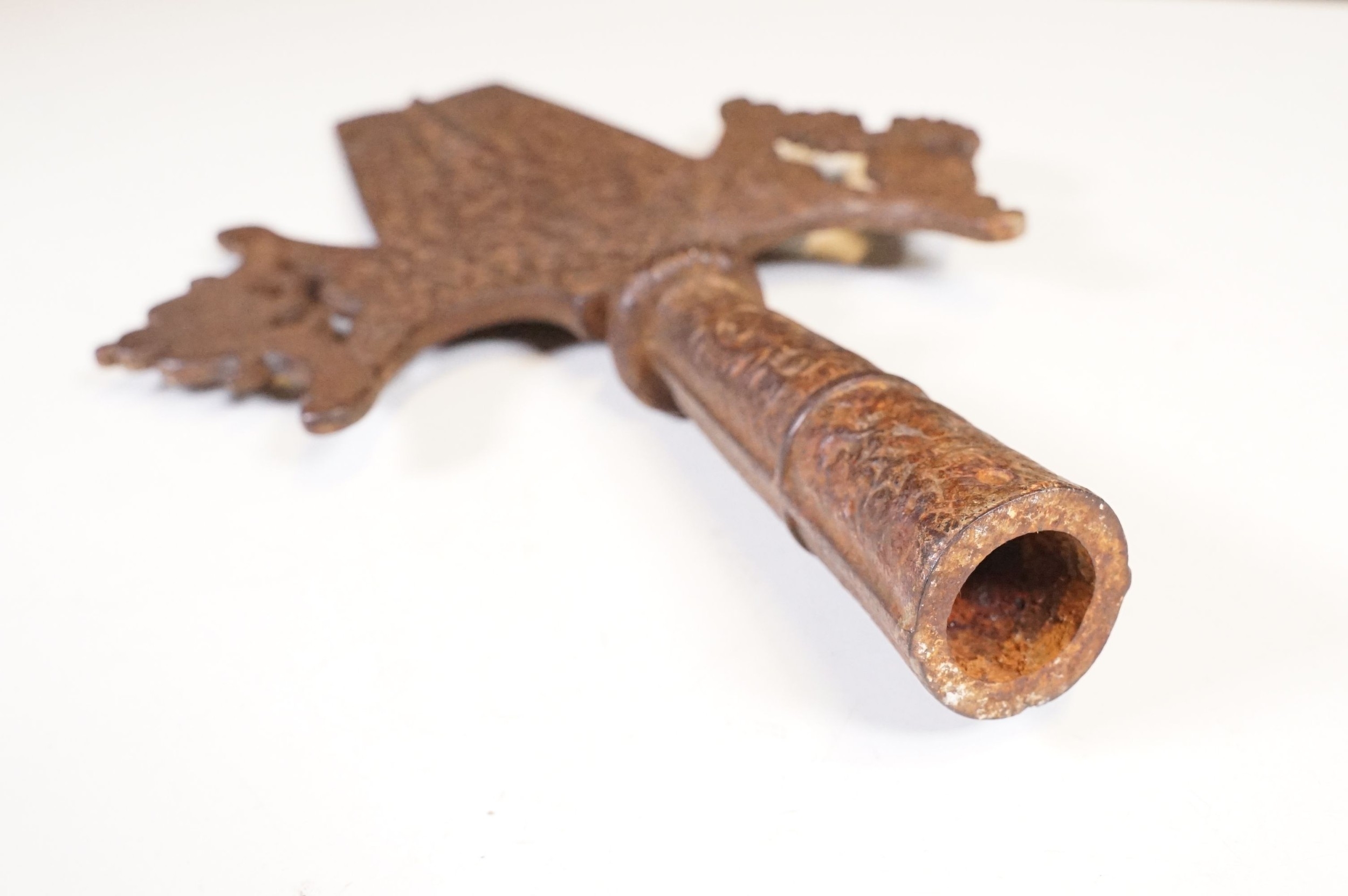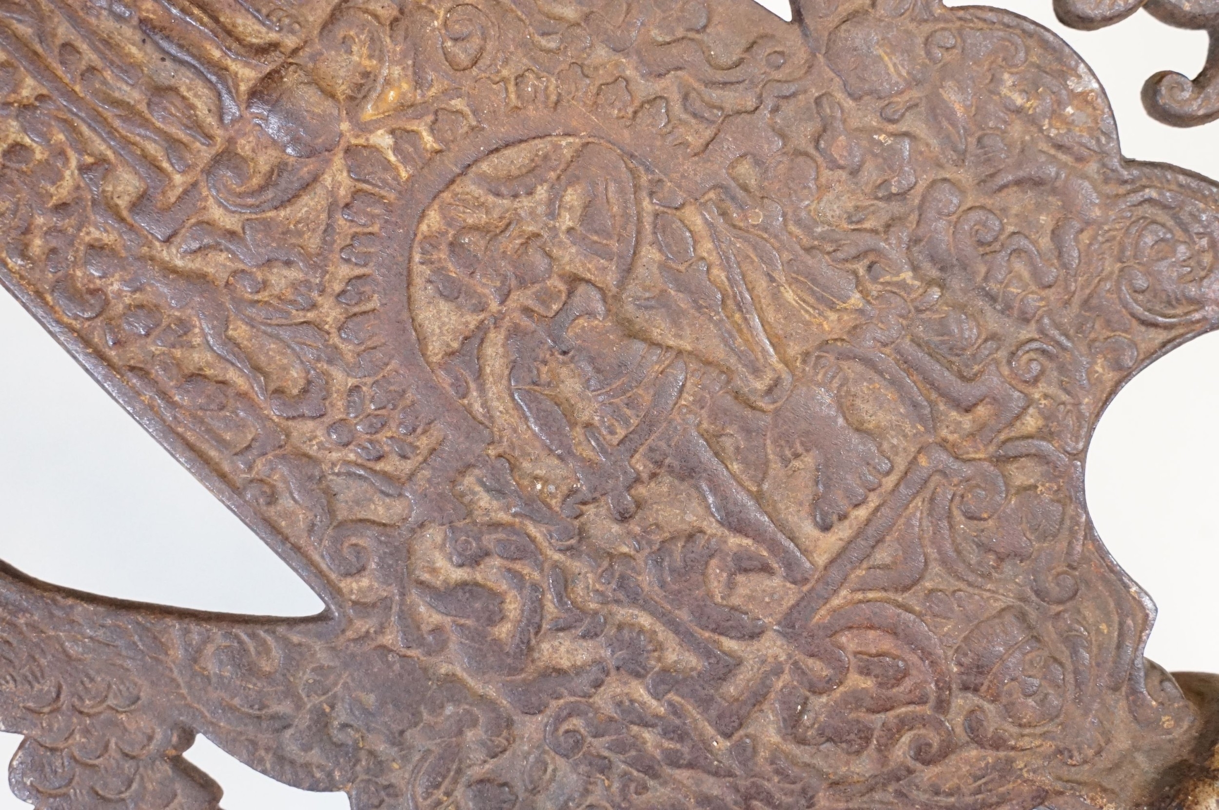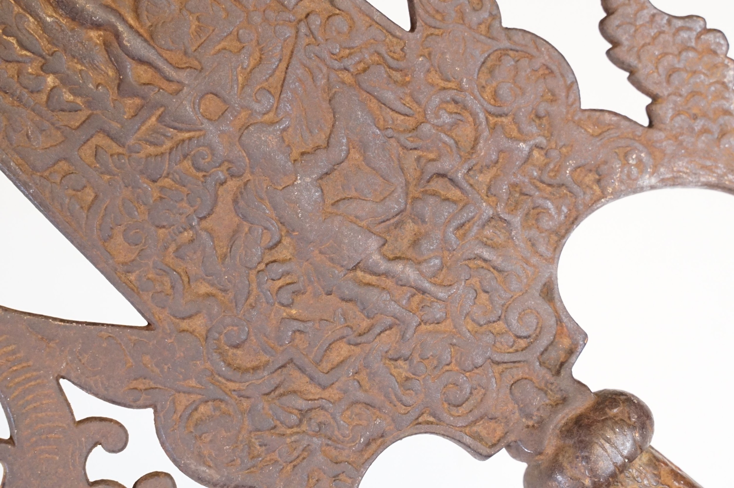 Polearm head with intricate relief work and decorative side lugs, H 35.5cm, W 23cm