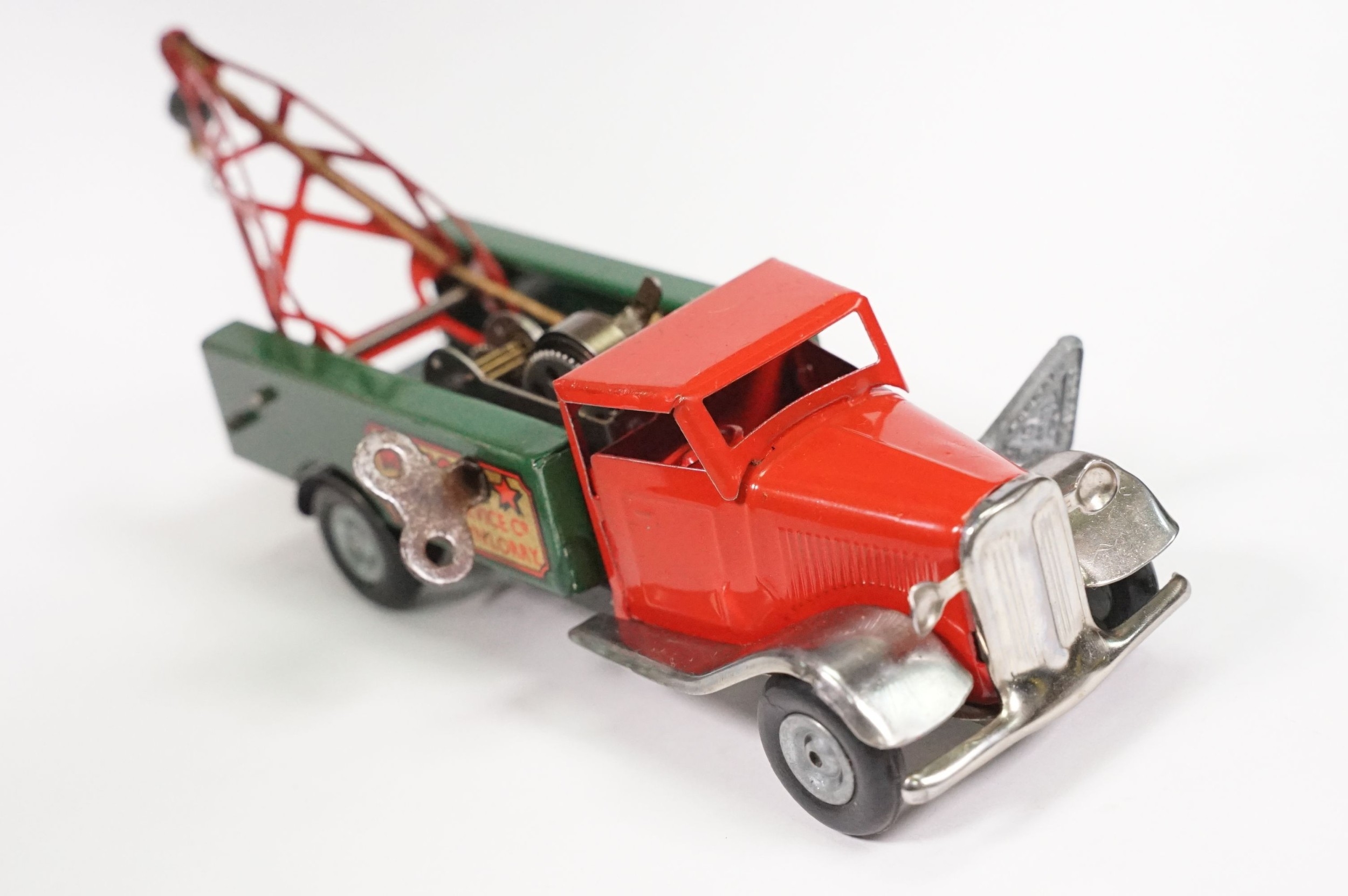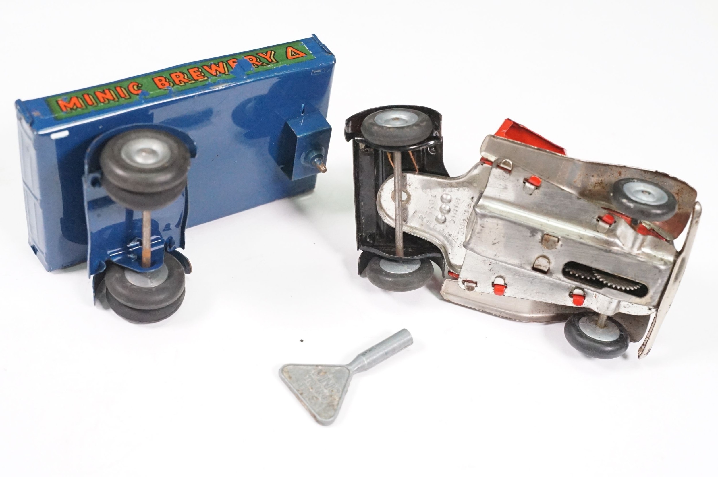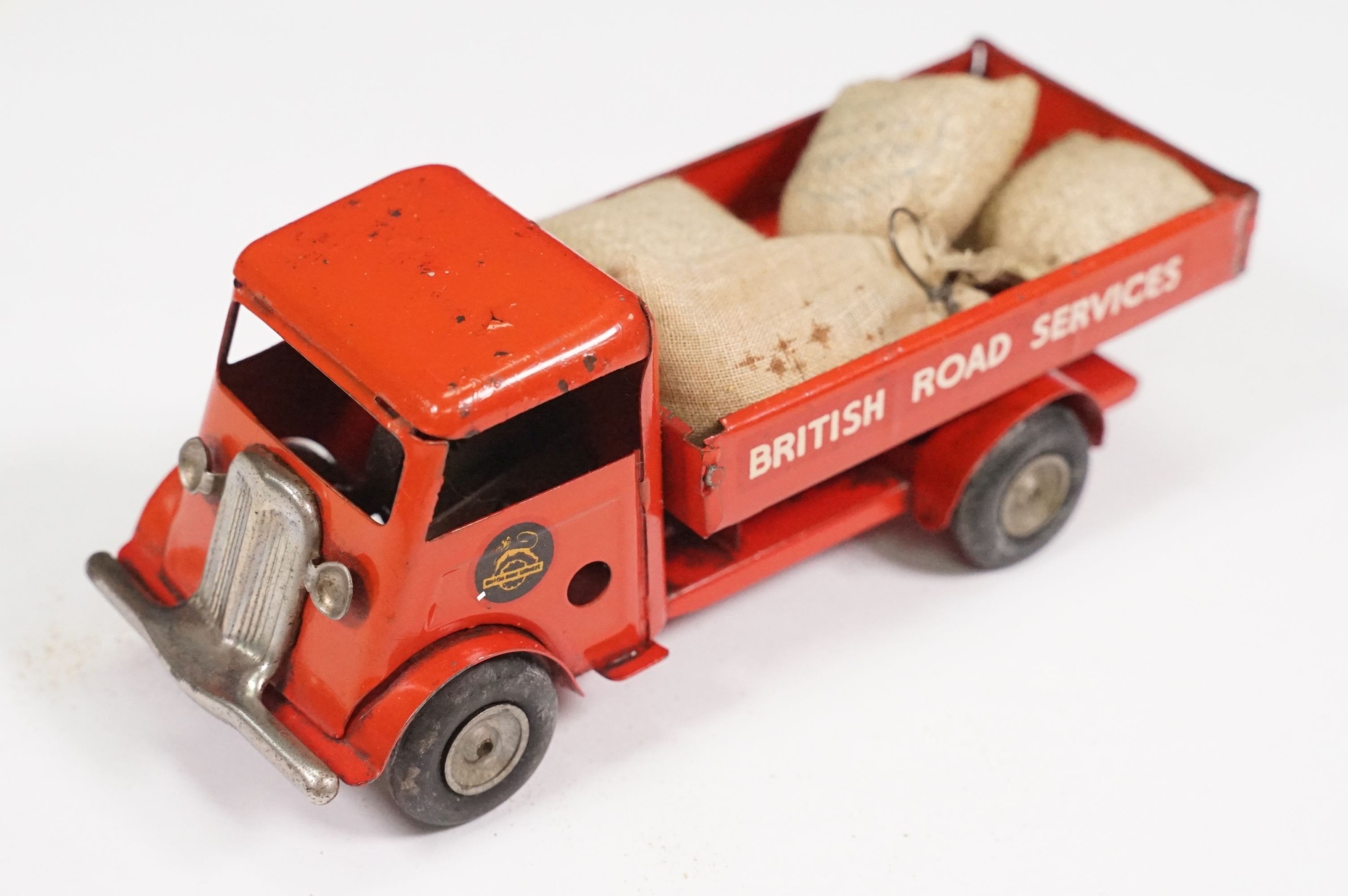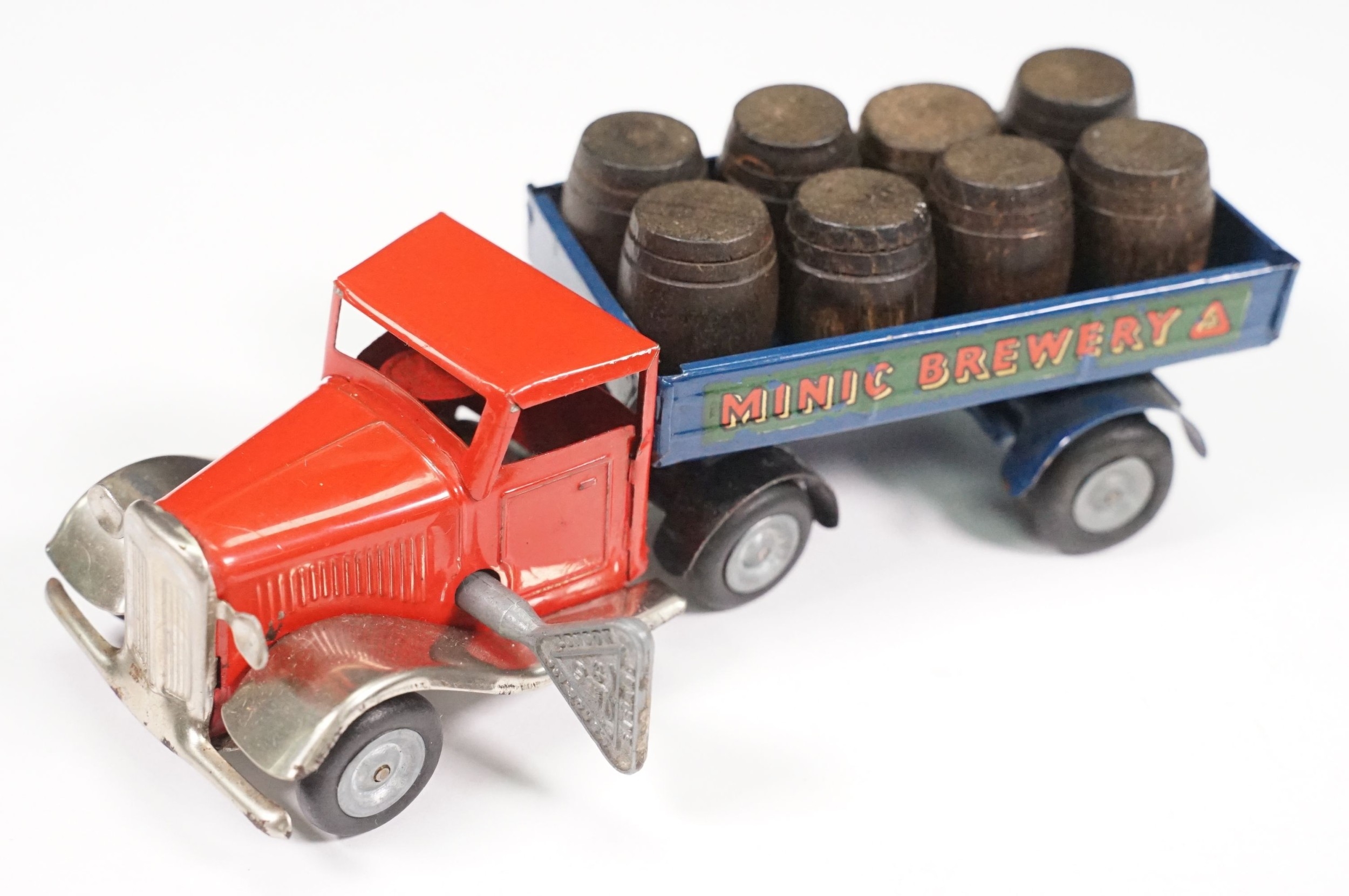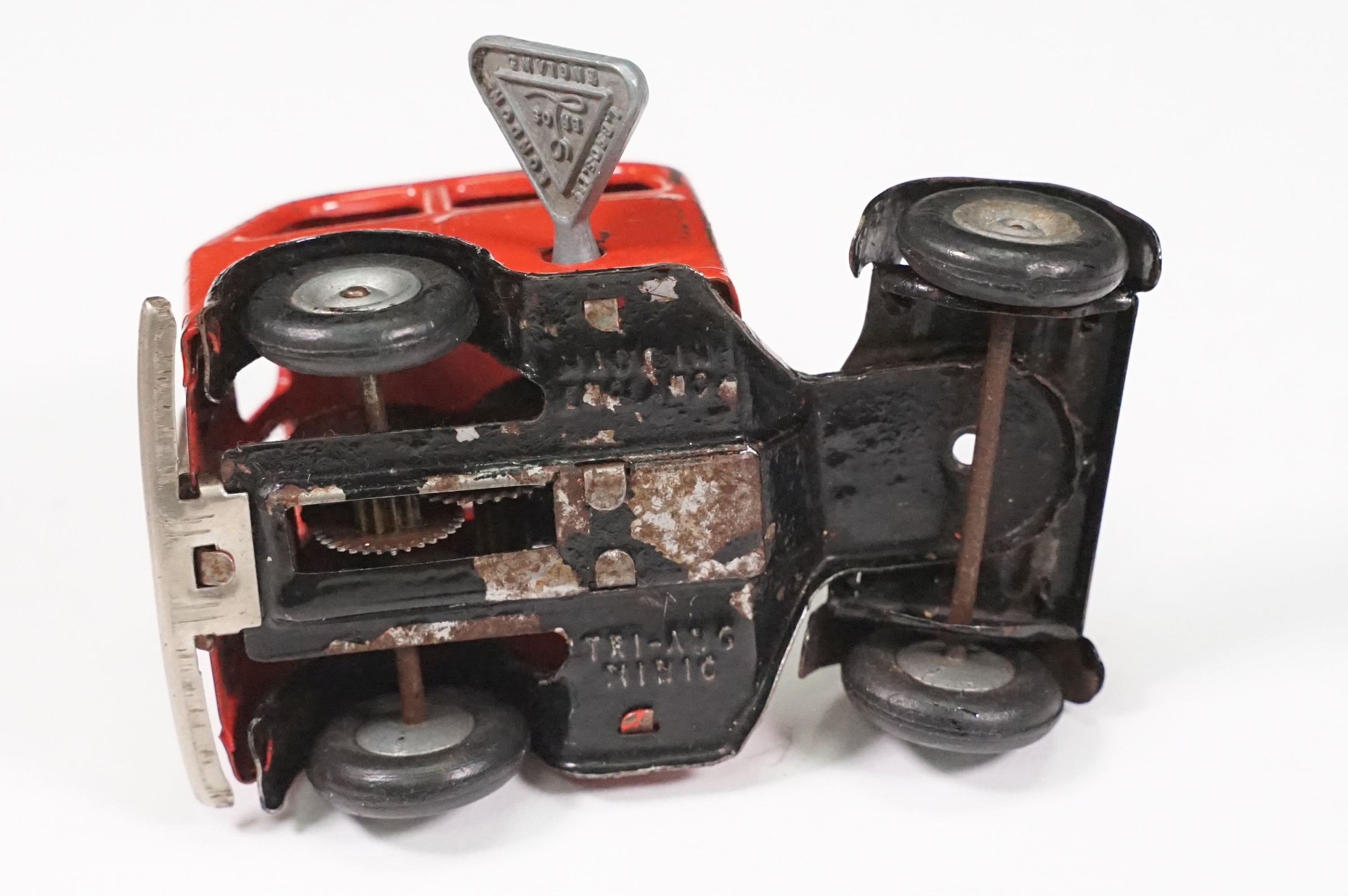 Ten Triang Minic Post-War tinplate and clockwork commercial models to include Carter Paterson Van 22M, Dust Cart 32M, Breakdown Lorry 48M with red cab and green body, Brewery Lorry 72M, British Road Services Open Back Lorry, etc, all complete with original Triang Minic clockwork keys, all models in gd-vg condition overall with some signs of wear in places