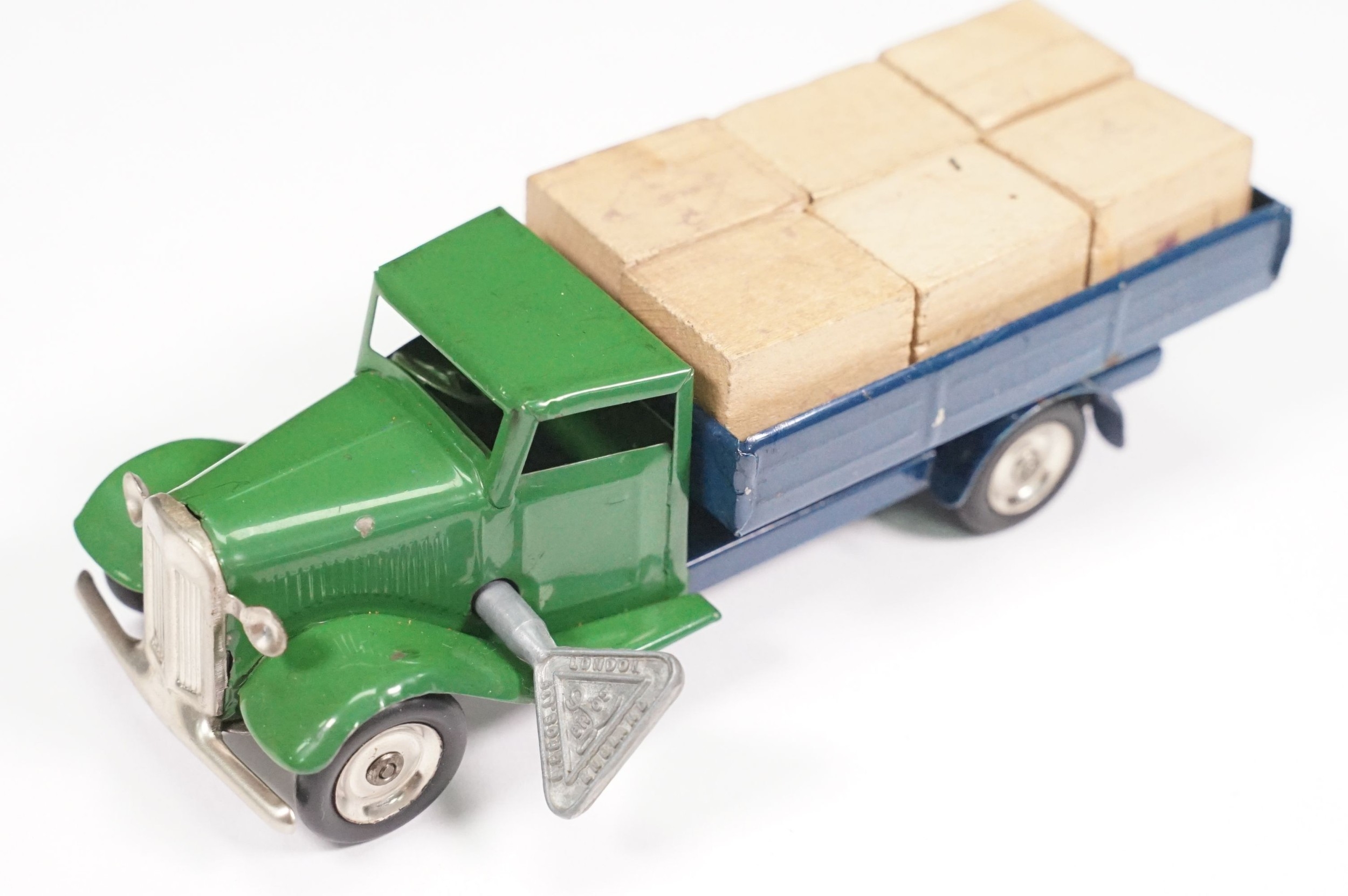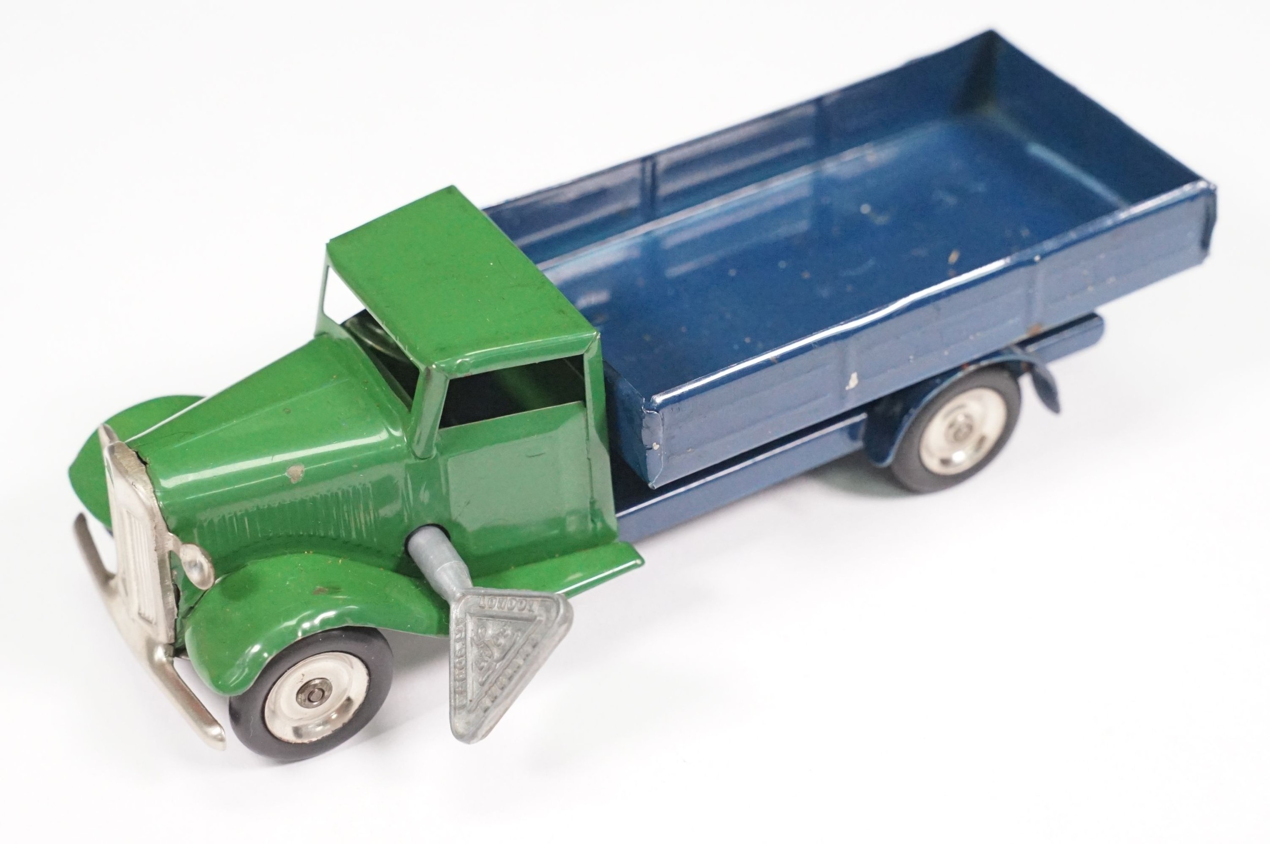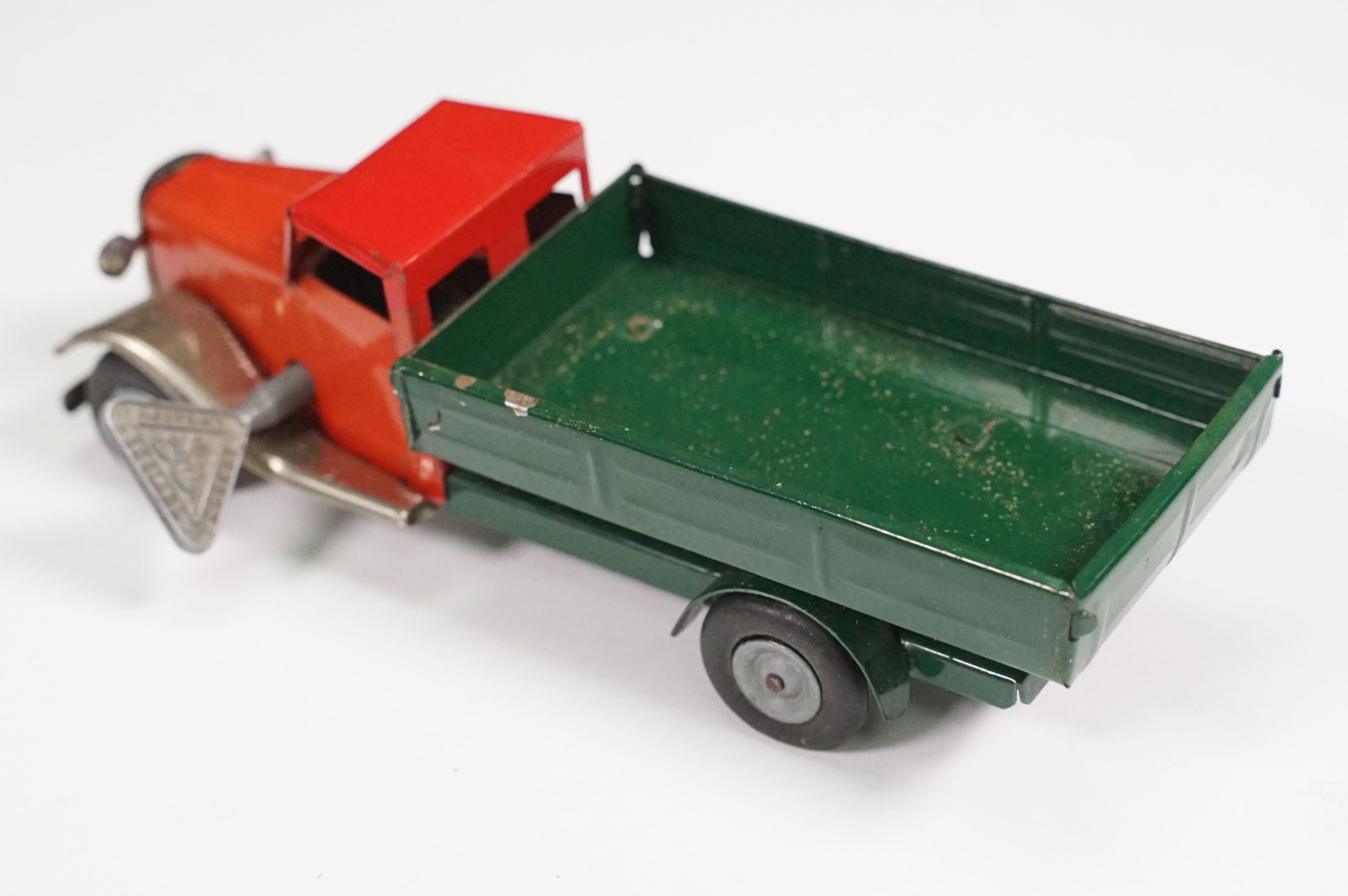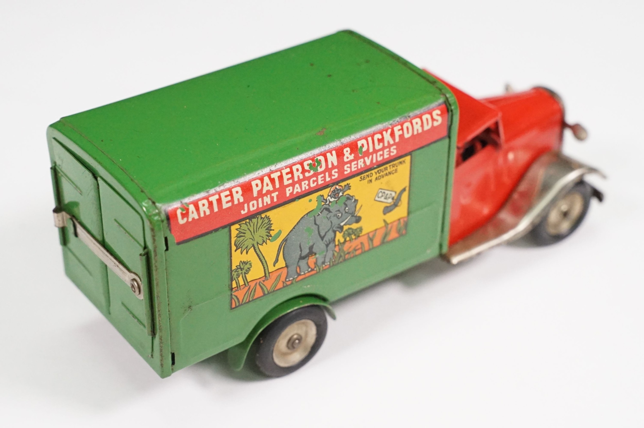 Ten Triang Minic Post-War tinplate and clockwork commercial models to include Carter Paterson Van 22M, Dust Cart 32M, Breakdown Lorry 48M with red cab and green body, Brewery Lorry 72M, British Road Services Open Back Lorry, etc, all complete with original Triang Minic clockwork keys, all models in gd-vg condition overall with some signs of wear in places