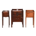 A George III mahogany tray top commode and two mahogany pot cupboards, various sizes