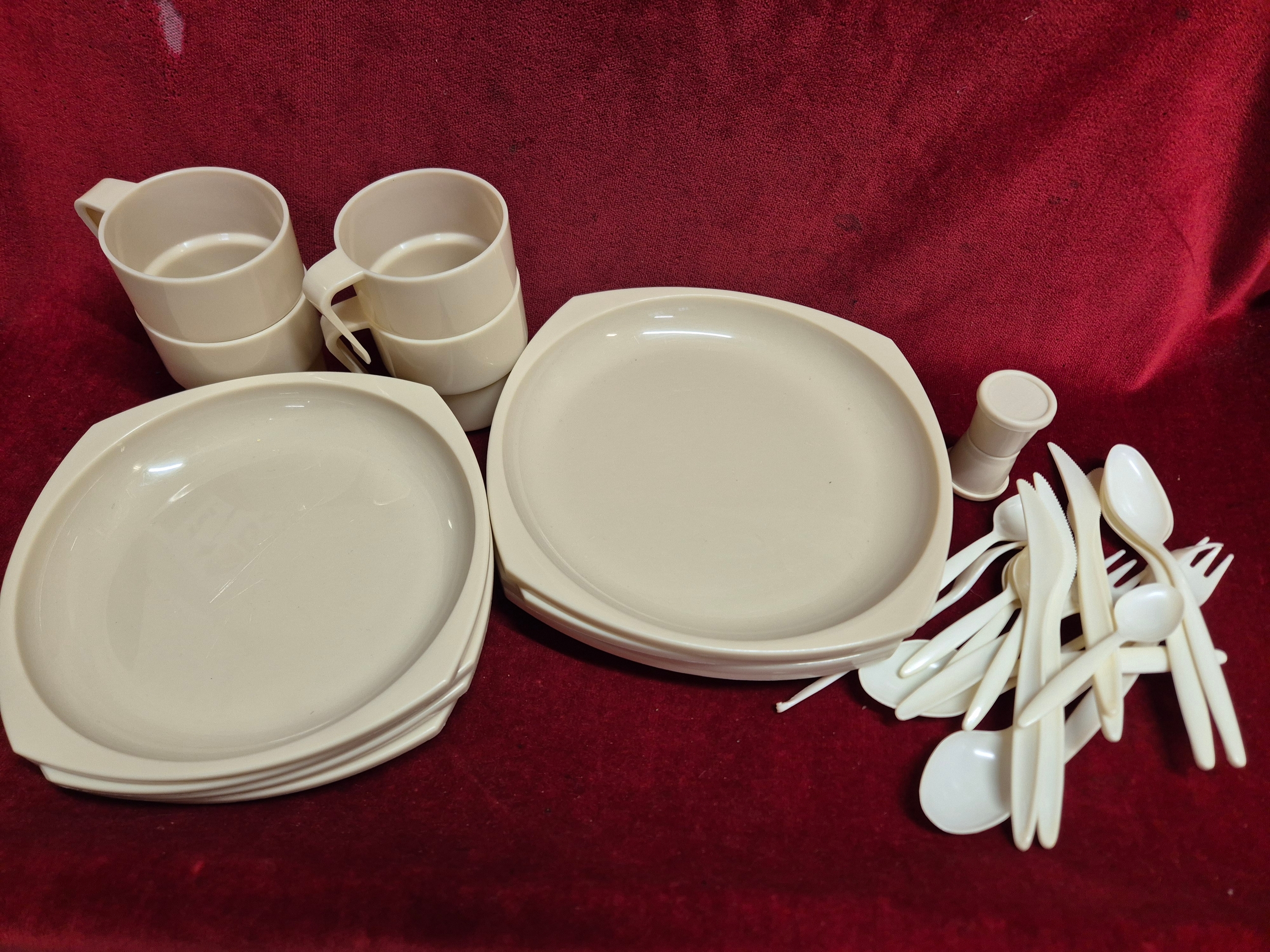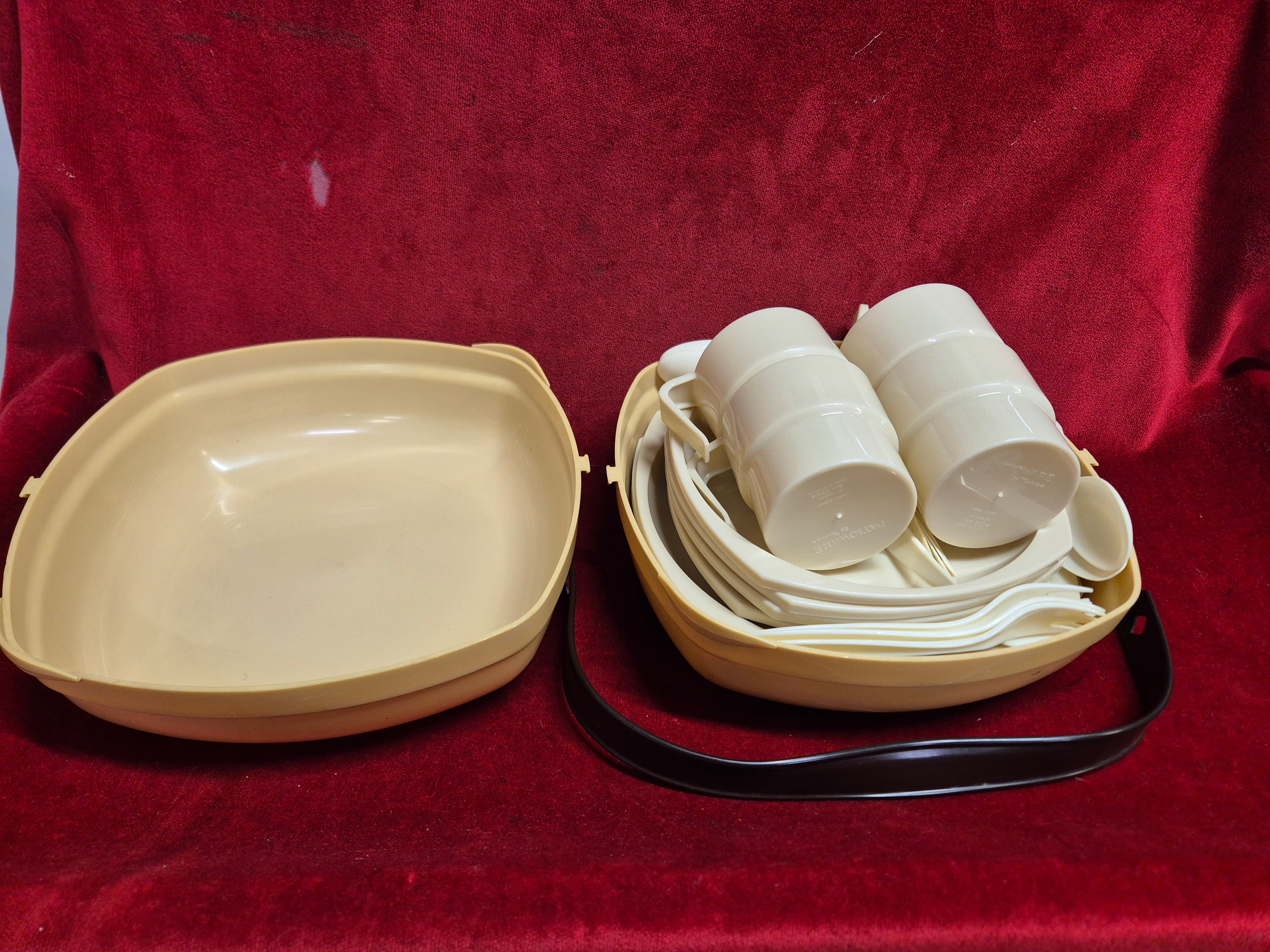 Retro melamine picnic set 'Patioware by Twinco' in carry case with cups, plates, cutlery and cruet set
