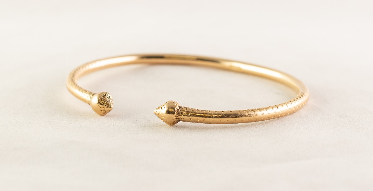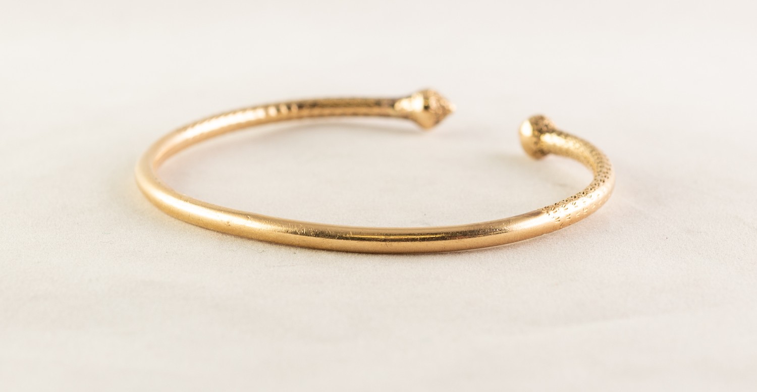 ANTIQUE 18ct GOLD HEAVY TORQUE BANGLE, partly chased, 2 3/4in (7cm) wide, 27.8 gms