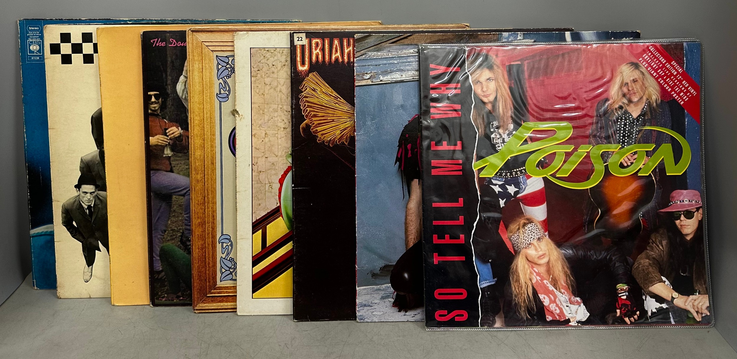 Nine vinyl LPs including, Twisted Sister, Uriah Heep, Black Sabbath and a 12" red vinyl by Poison