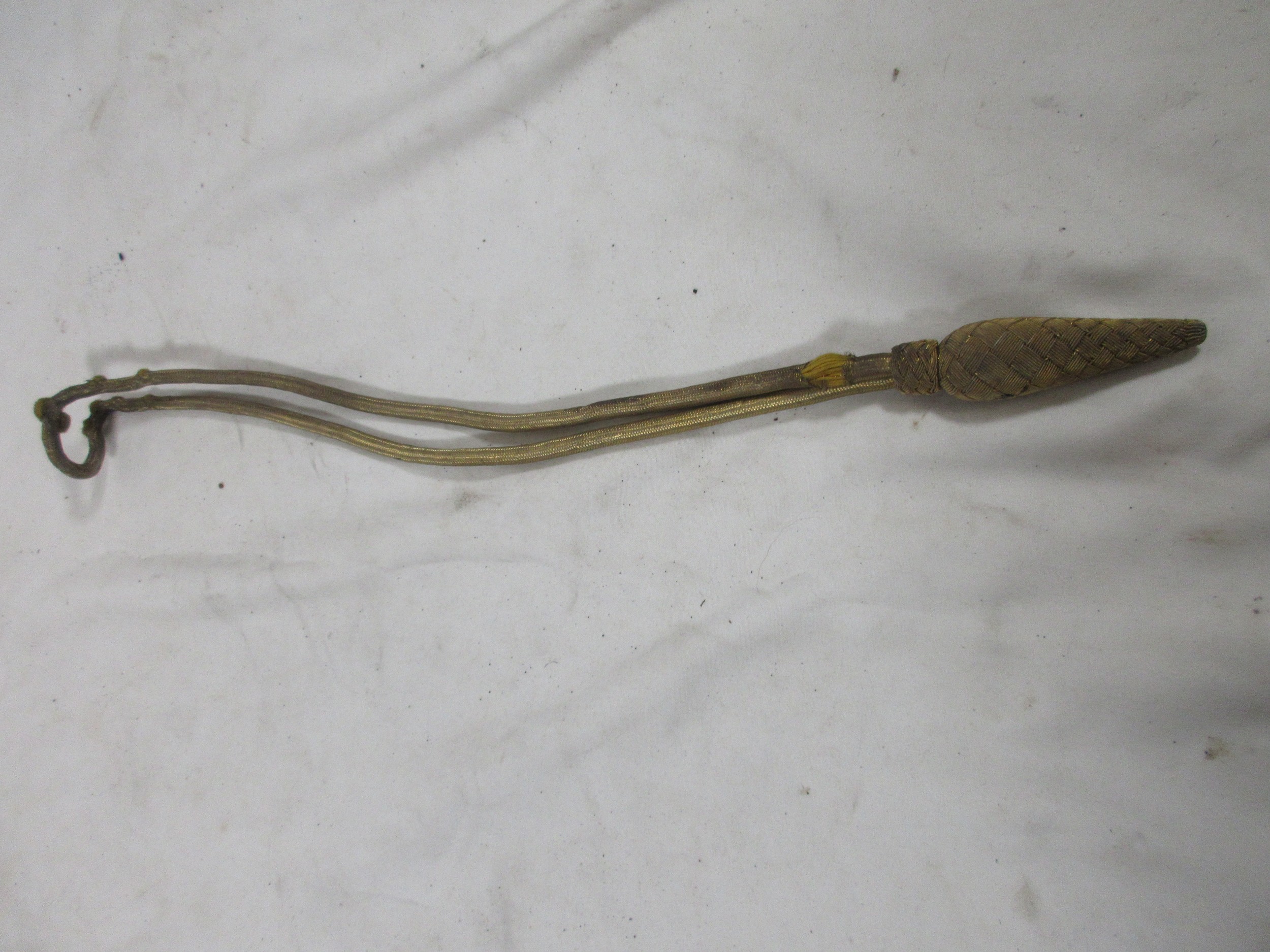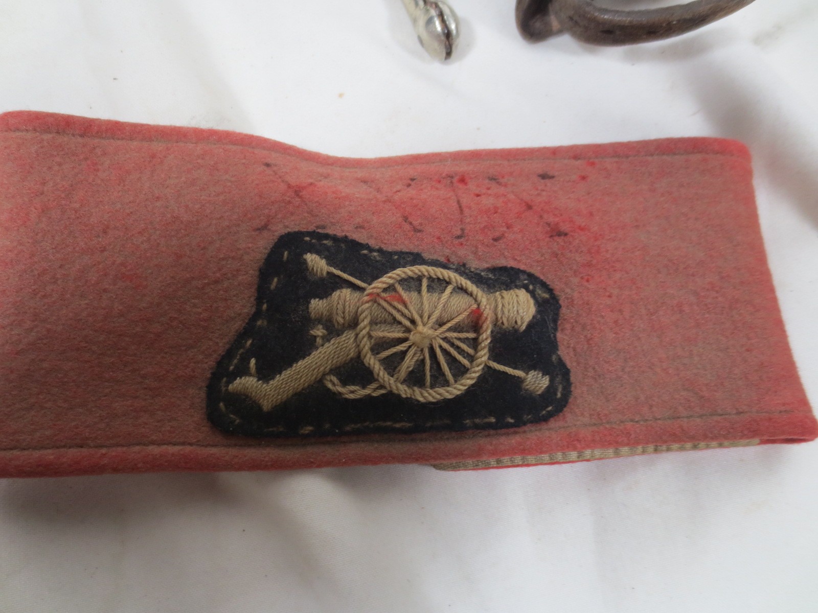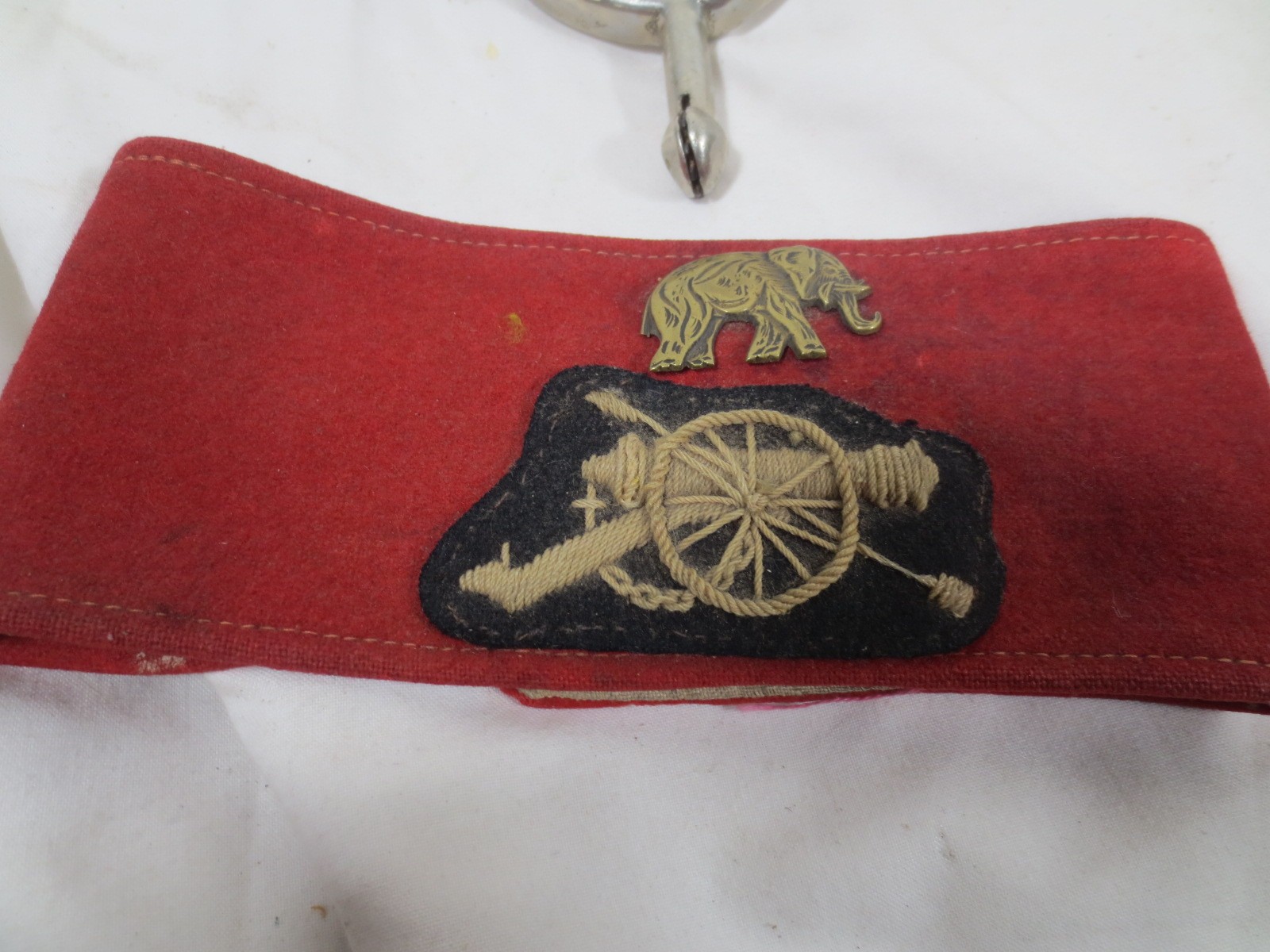 A pair of Royal Artillery armbands and a pair of officer's spurs, one armband with the elephant divisional insignia, the other with XXIX for the 29th Division which Brigadier Stockdale commanded the divisional artillery for. Also included is a bullion sword knot. Originally belonged to Brigadier General H E Stockdale CB CMG DSO.