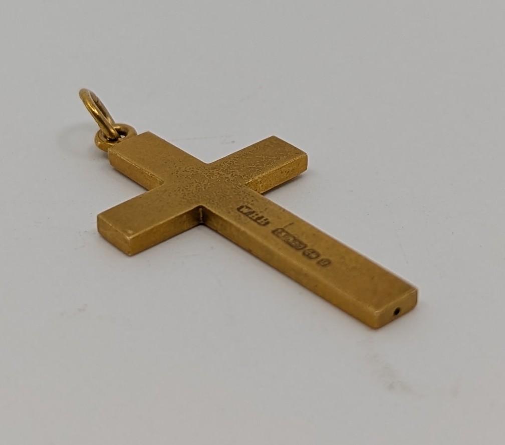 hallmarked "15 625"for 15ct gold, measuring approx. 3.7cm's high including bale and 1.8cm's max width, approx. 1.8g, boxed