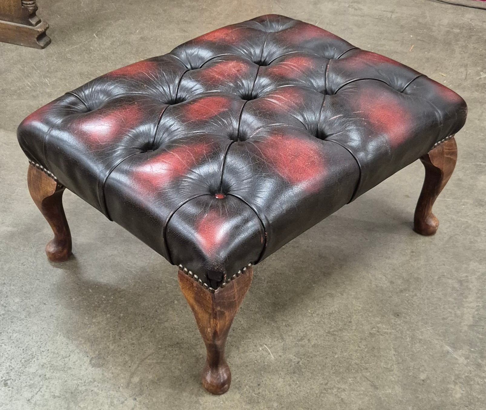 An oxblood red leather Chesterfield footstool