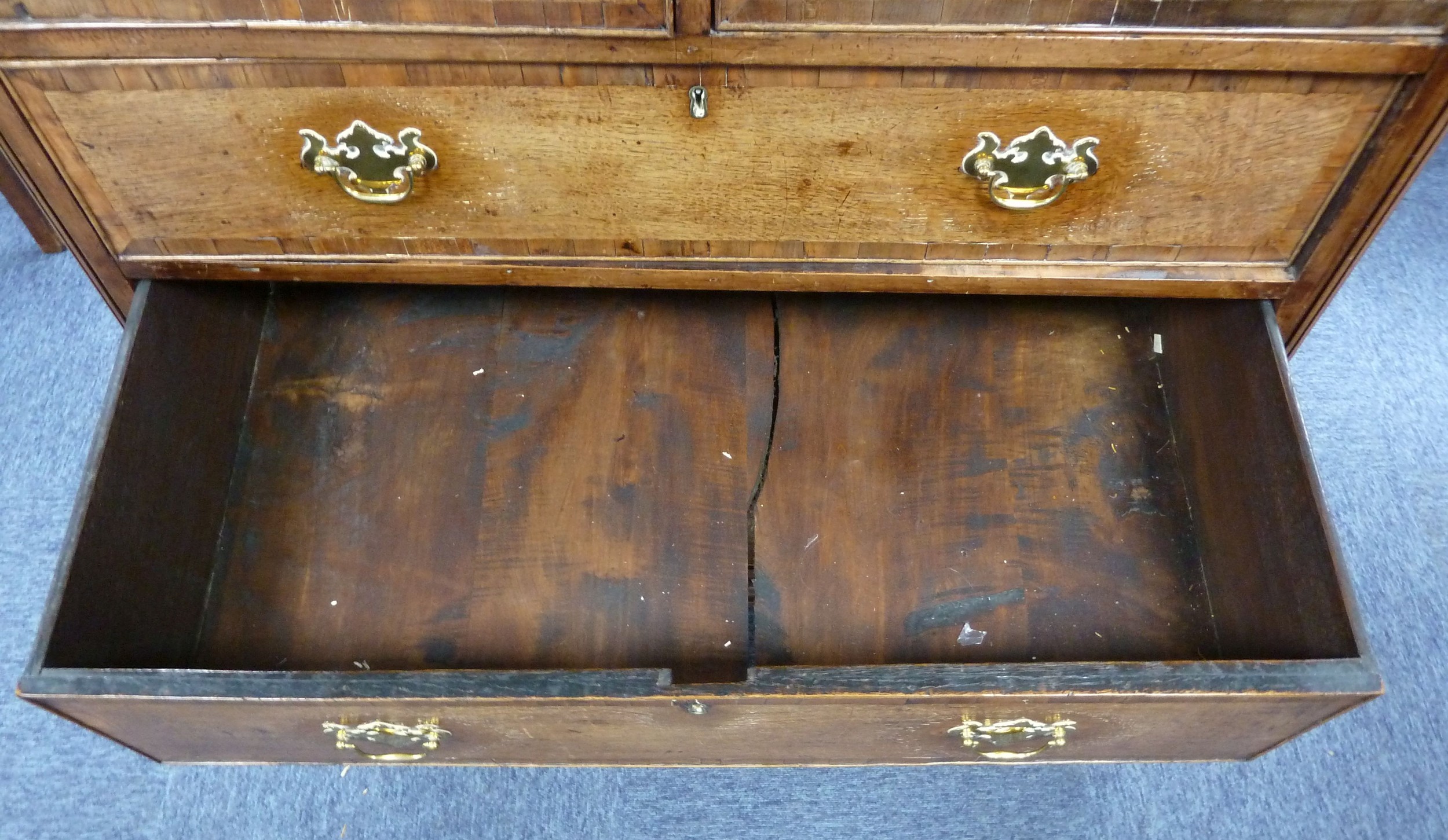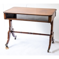Front- faded, drawer stops either worn or missing and usual losses to the crossbanding, splits and minor losses to the upper section of the right split column
