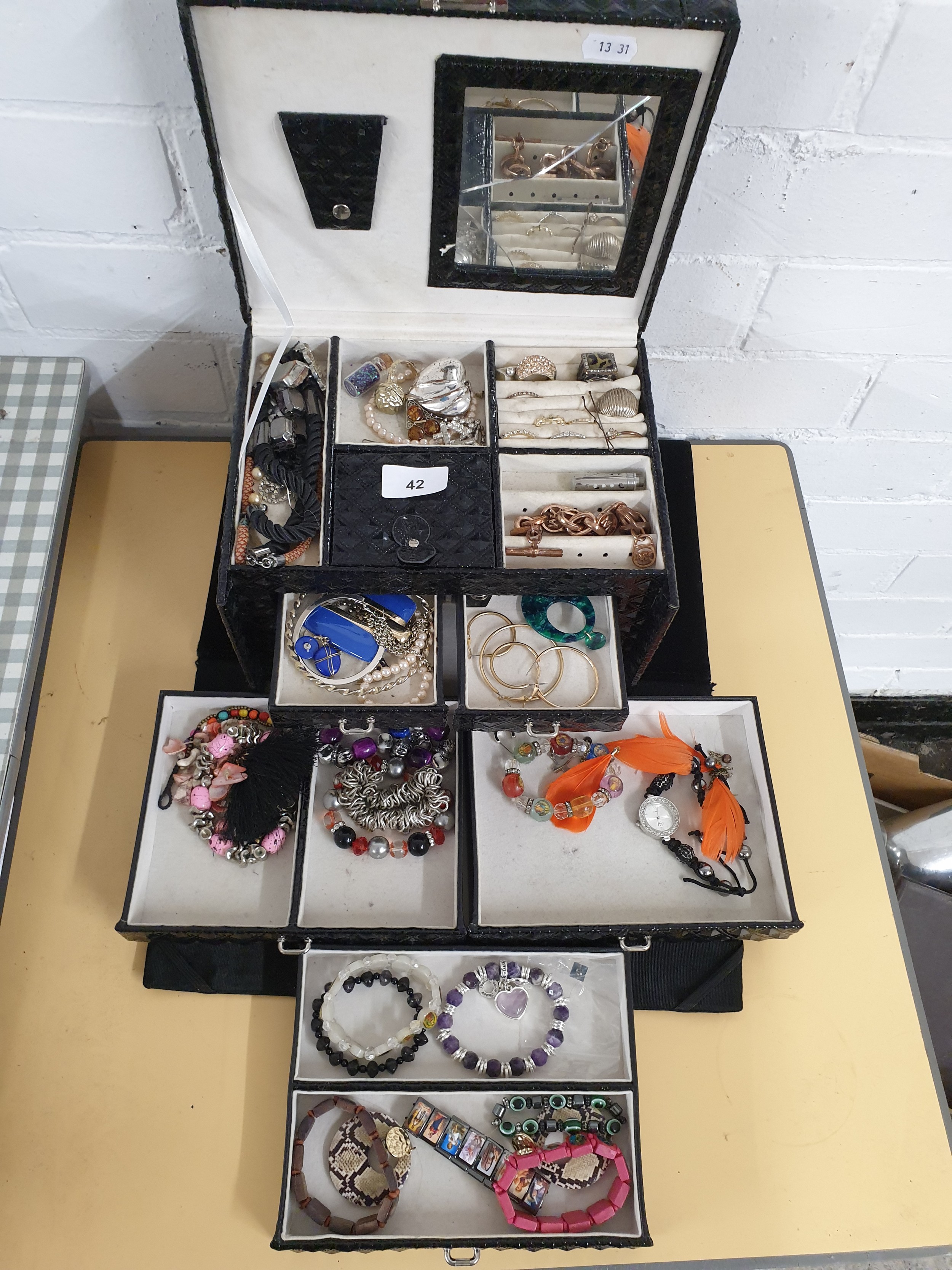 Large Multi Drawer Ladies Jewellery Box Full Of Costume Jewelley
