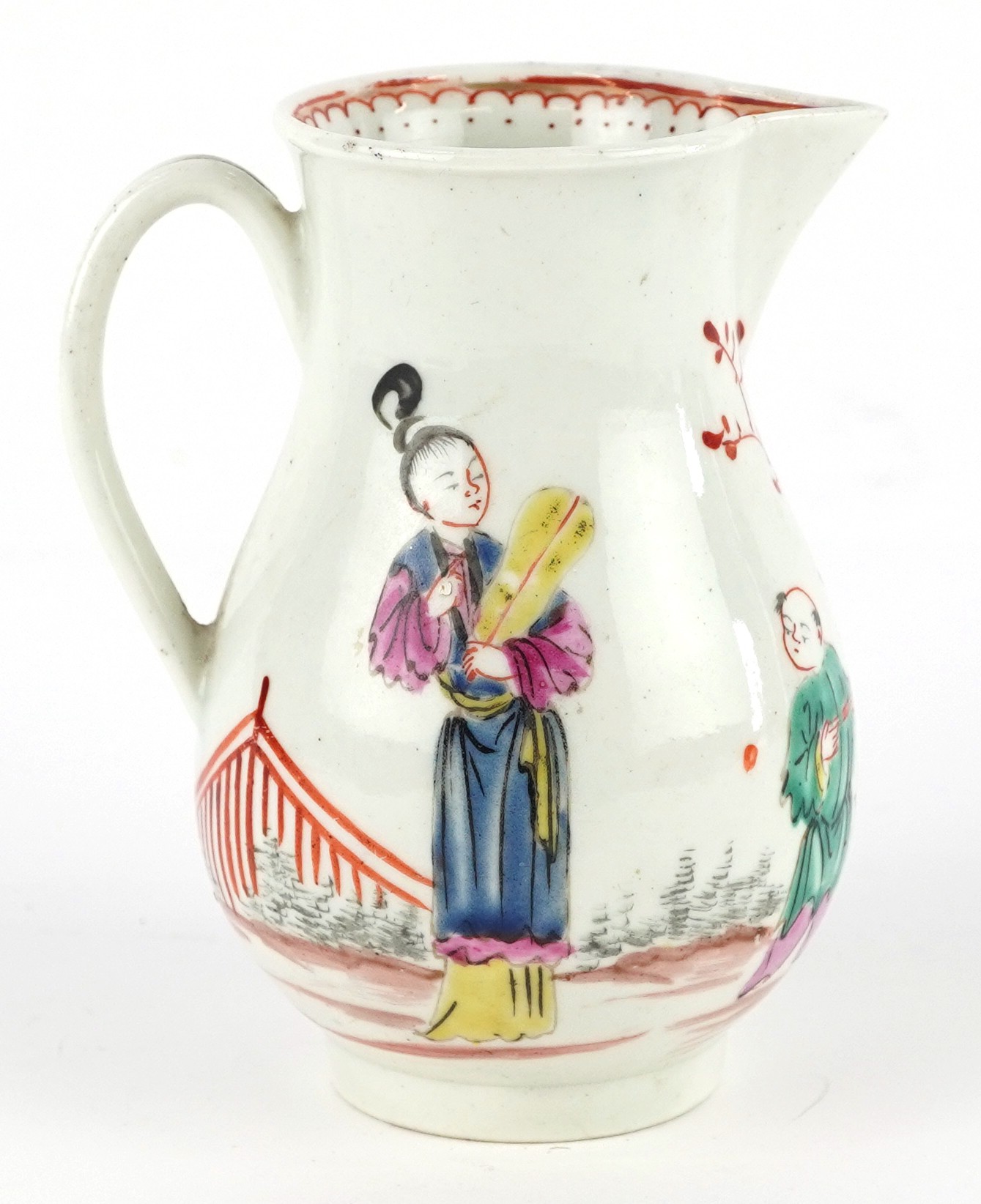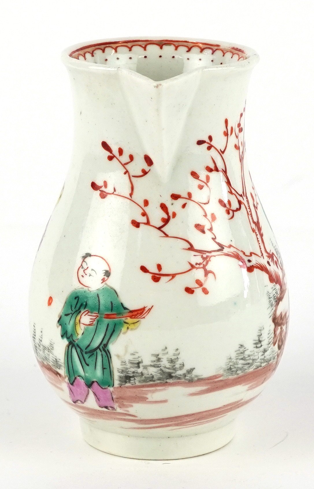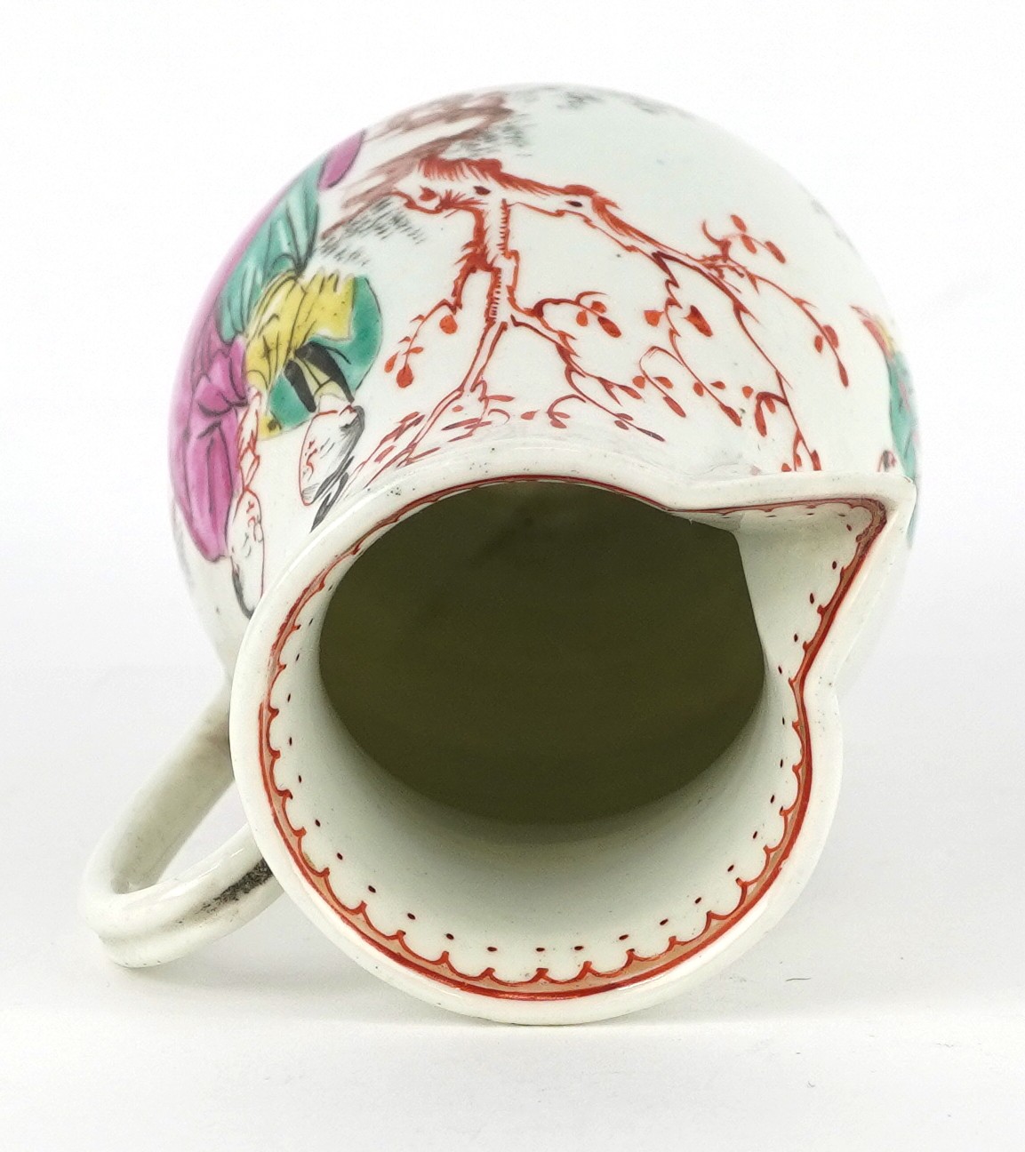 An 18th century Worcester porcelain sparrow beak cream jug hand painted with chinoiserie decoration, 10cm high.
