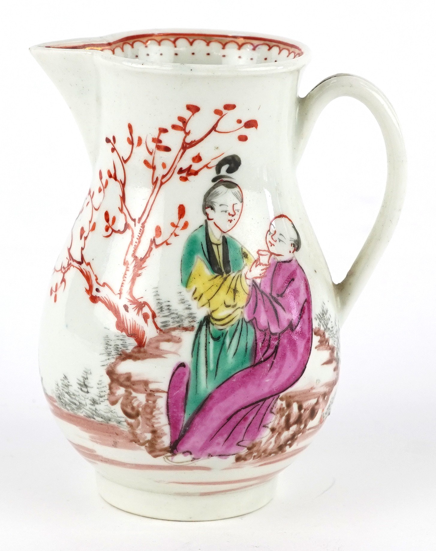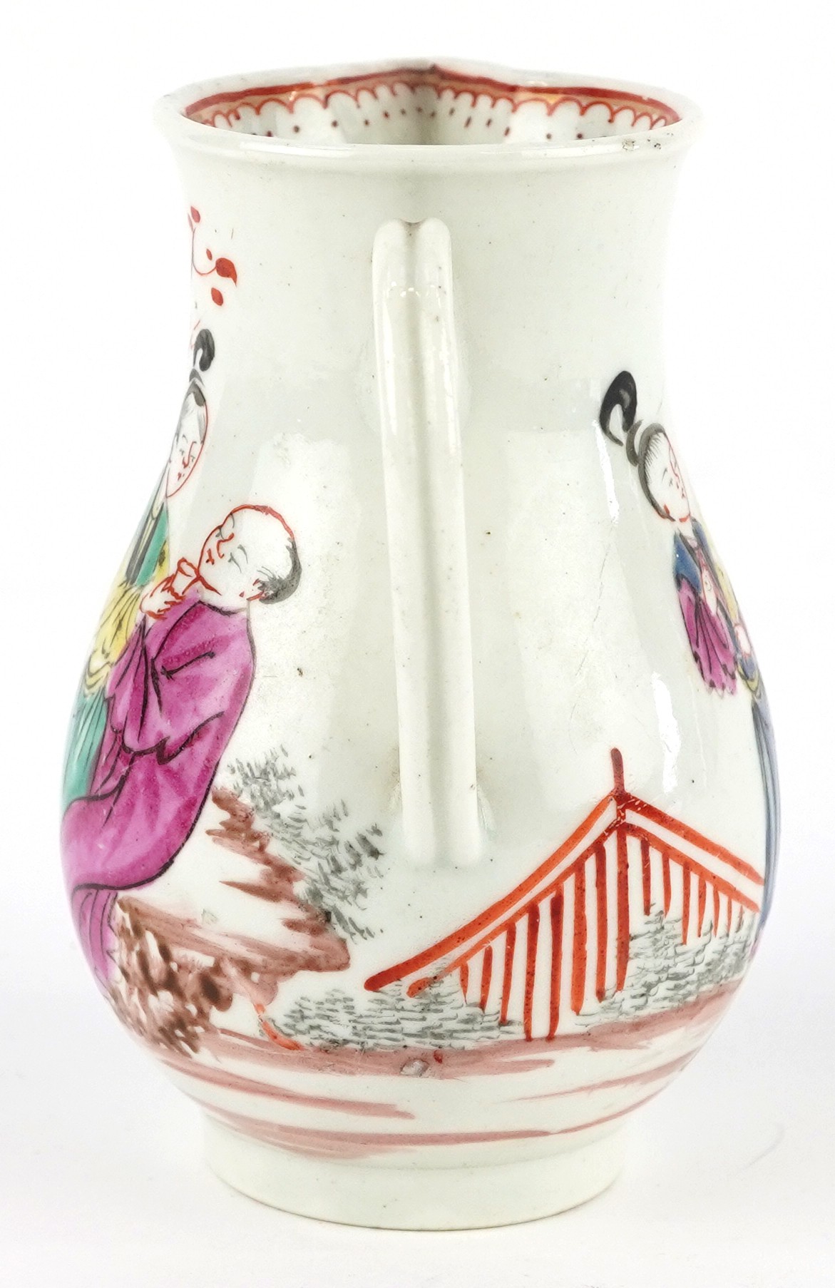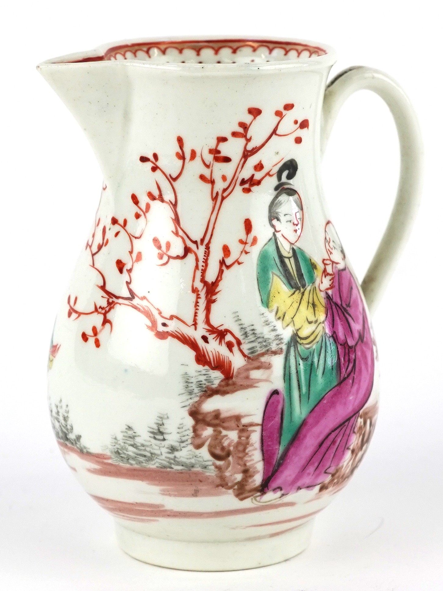 An 18th century Worcester porcelain sparrow beak cream jug hand painted with chinoiserie decoration, 10cm high.