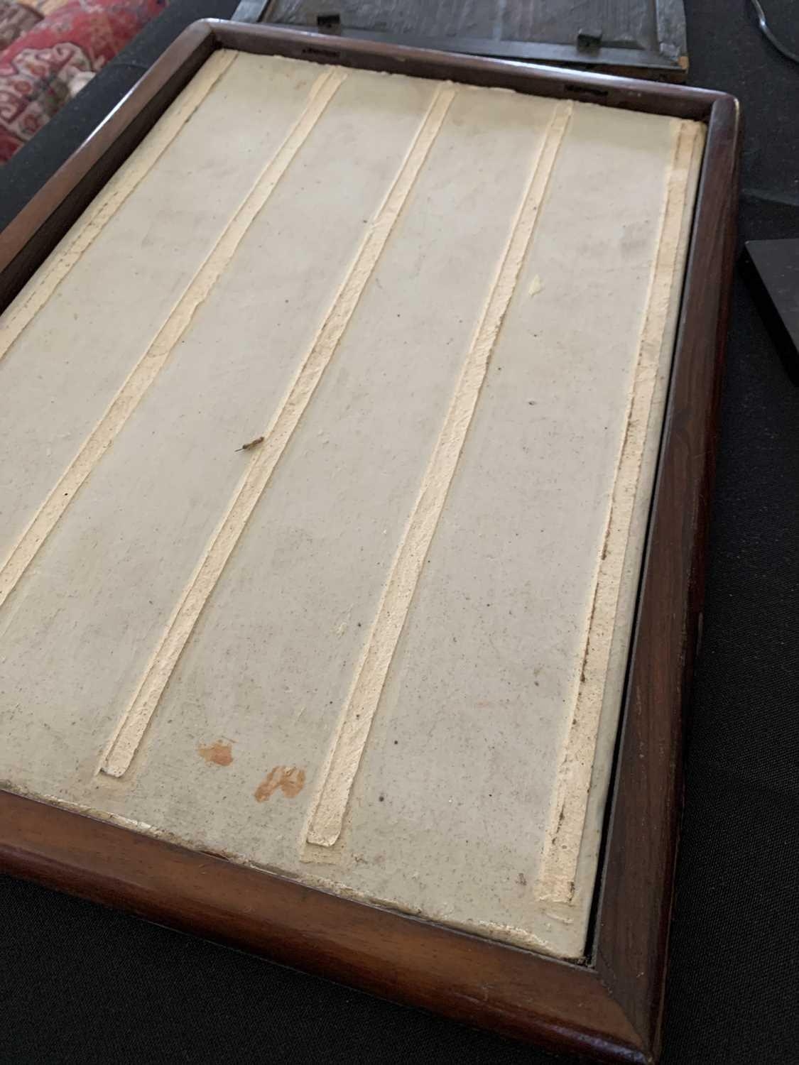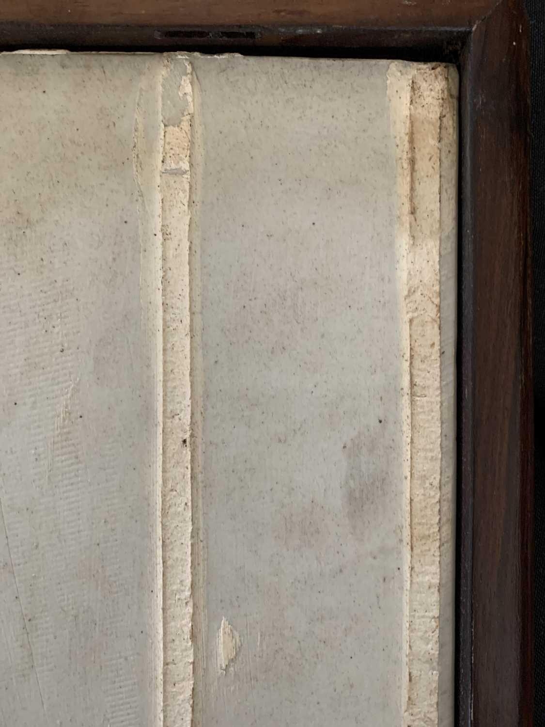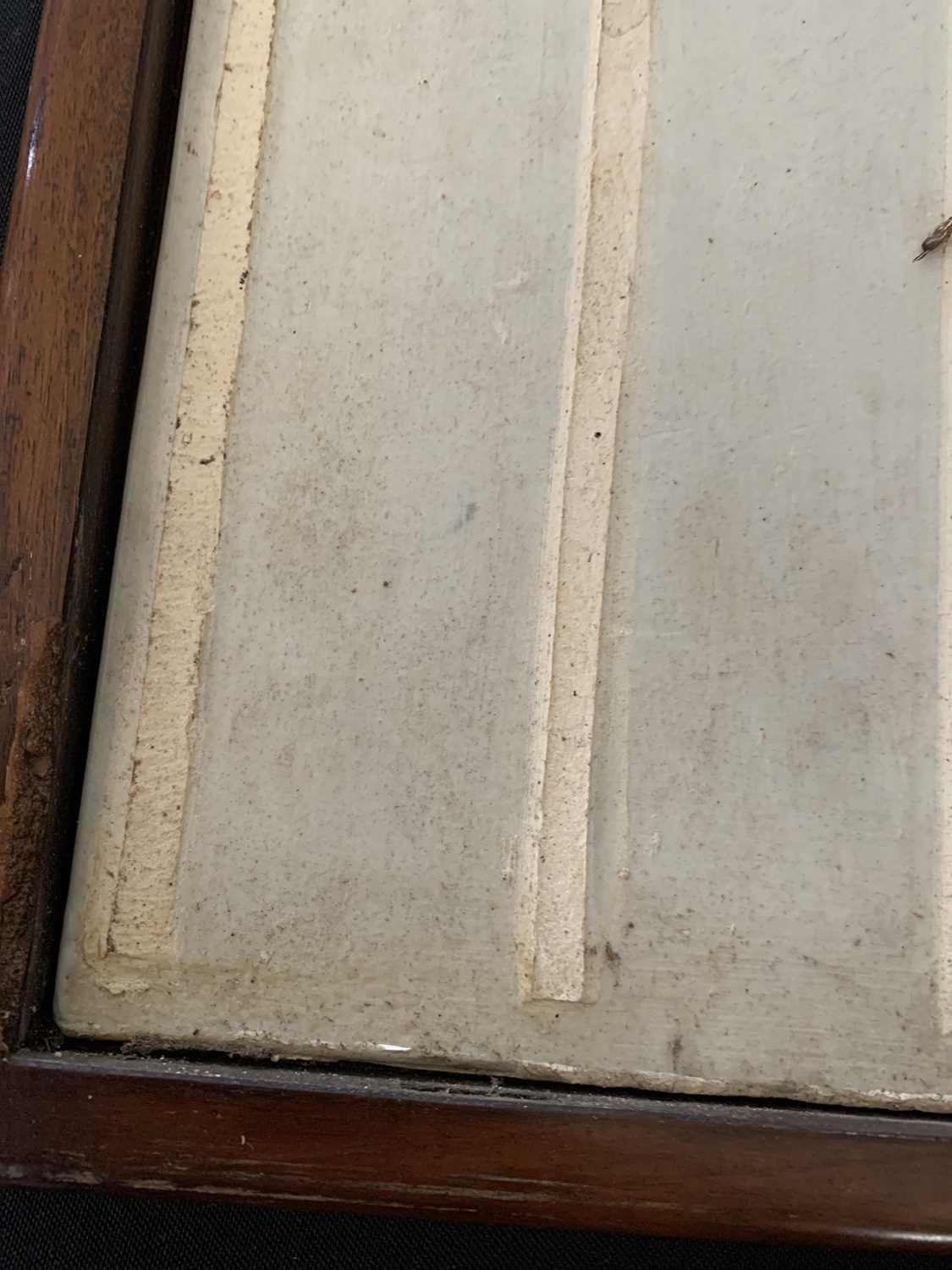 One foot requires regluing. Some signs of previous treated worm to the frame. Lower right hand-side showing frailty where the screen matches with the base, but still standing firm. Some natural pitting to the porcelain.