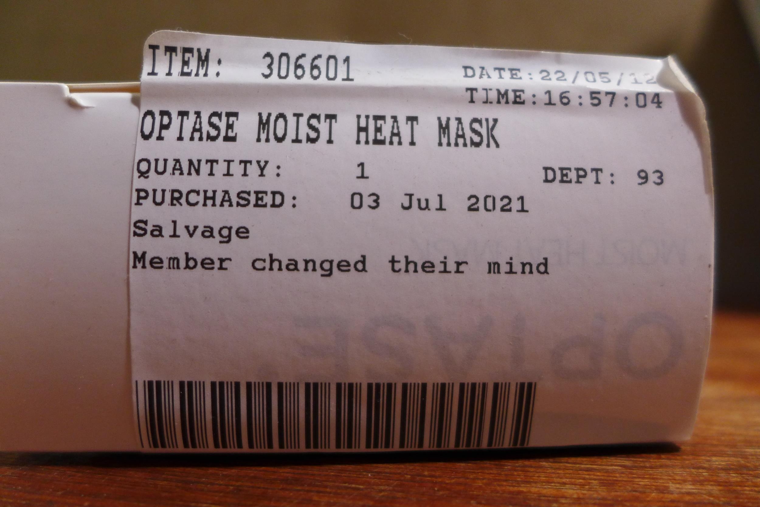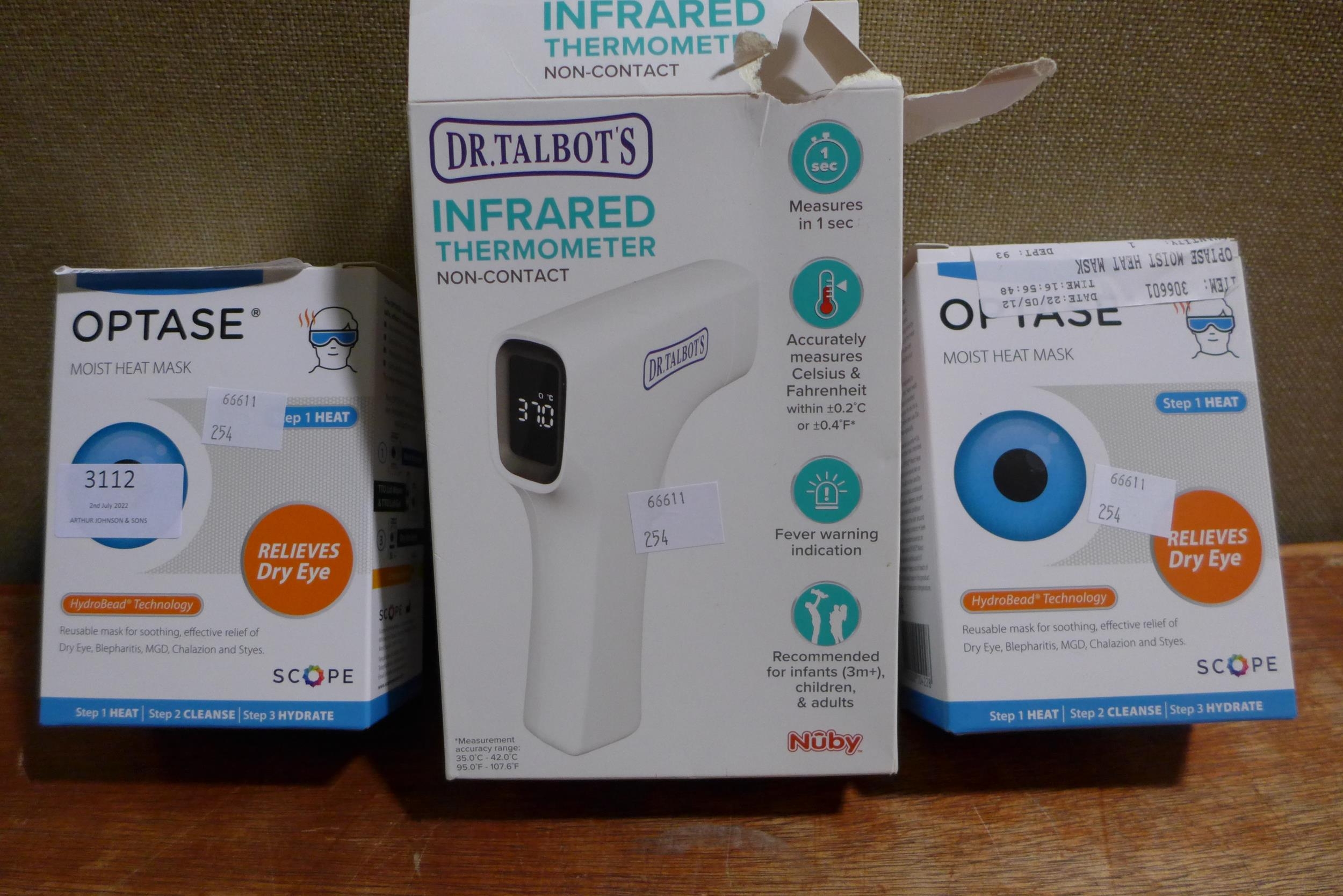 2x Optase Moist Heat Mask and Dr. Talbot'S Non-Contact Thermometer (254-604.625) * This lot is subject to vat