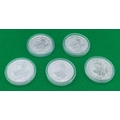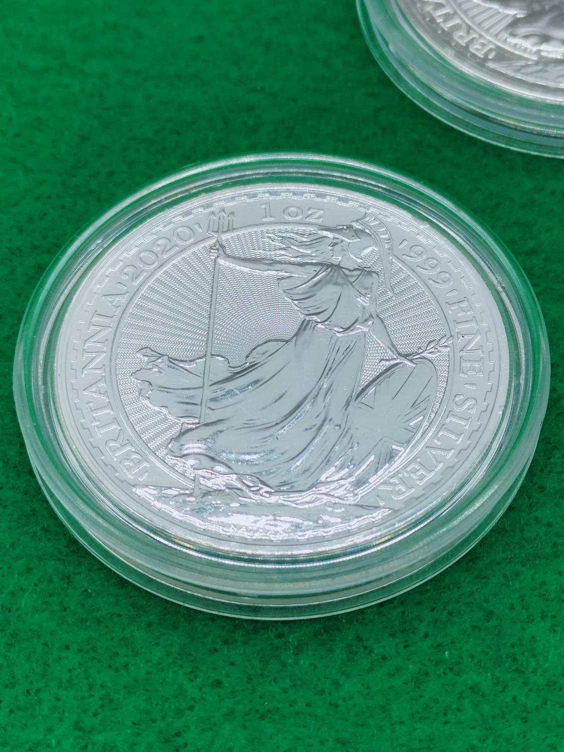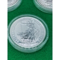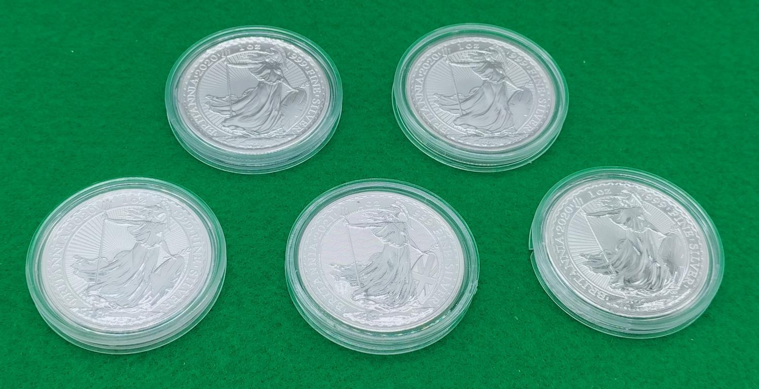 5 x 999 Fine Silver 1 Ounce Silver Britannia Coins (4 x 2020 and 1 x 2021)