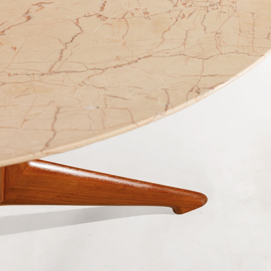 Tavolo. Legno, marmo. Produzione Fratelli Rizzi anni '50.